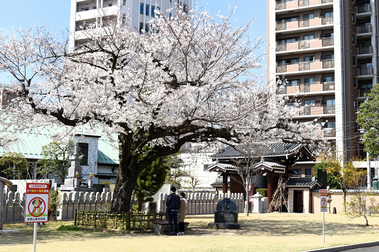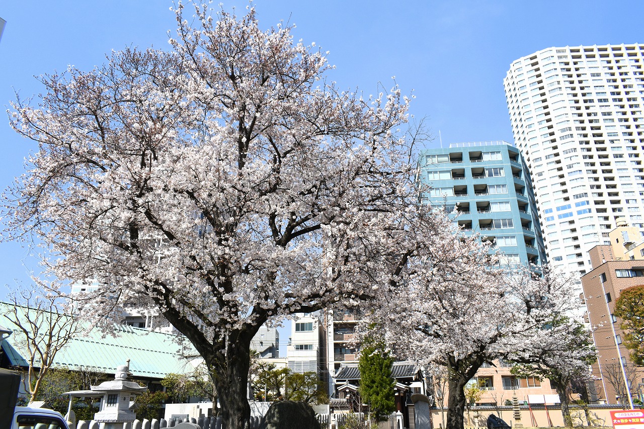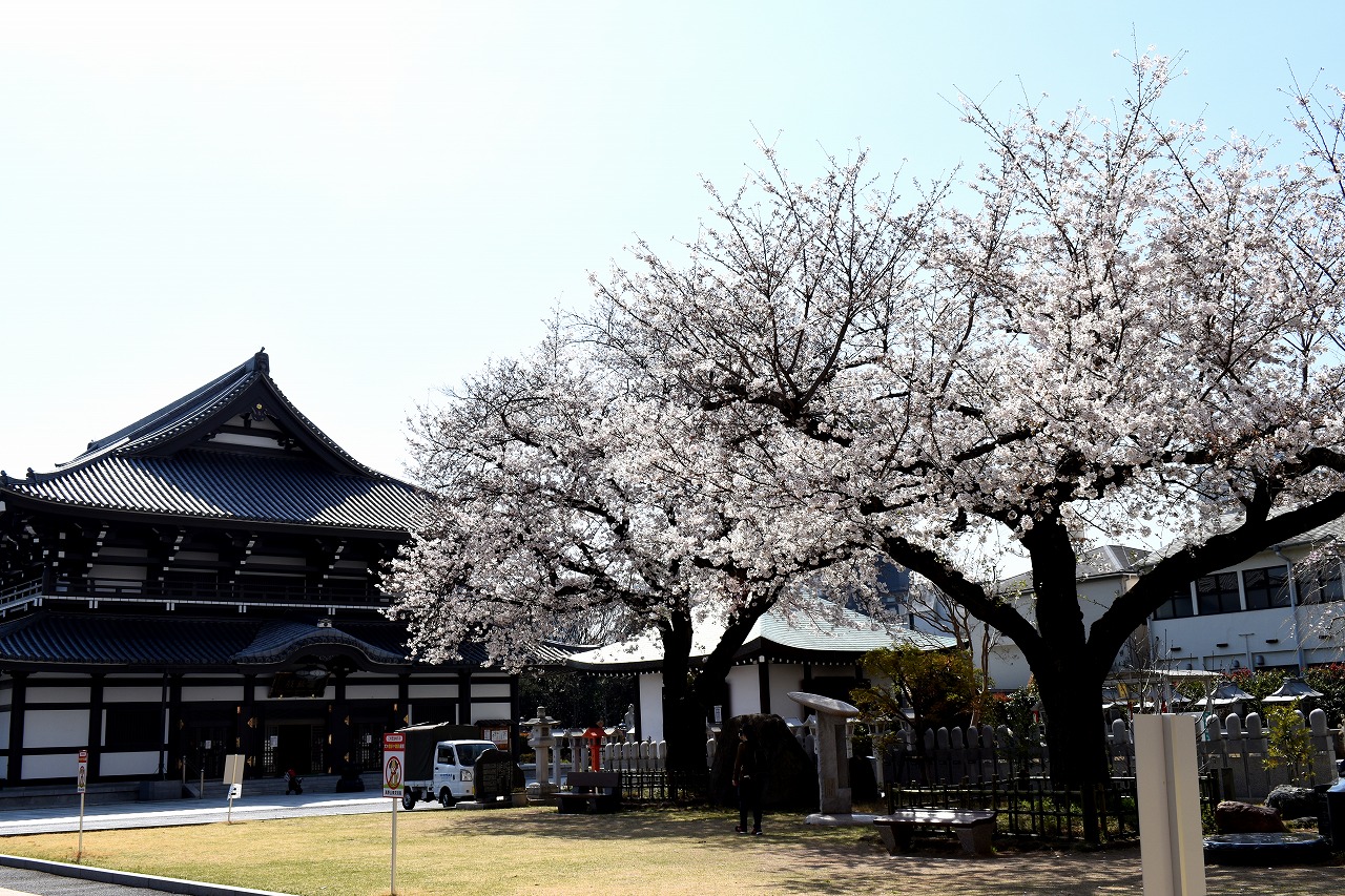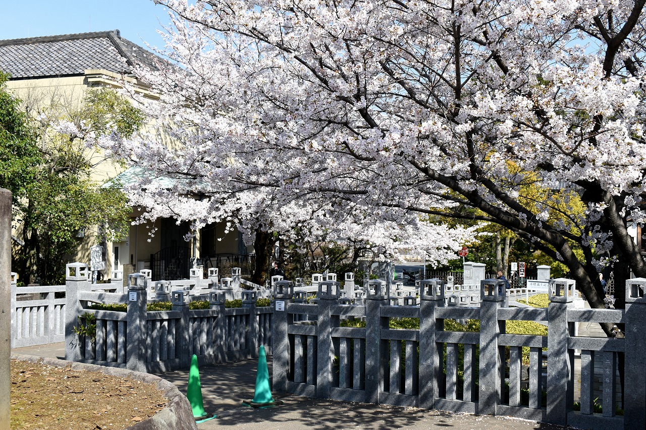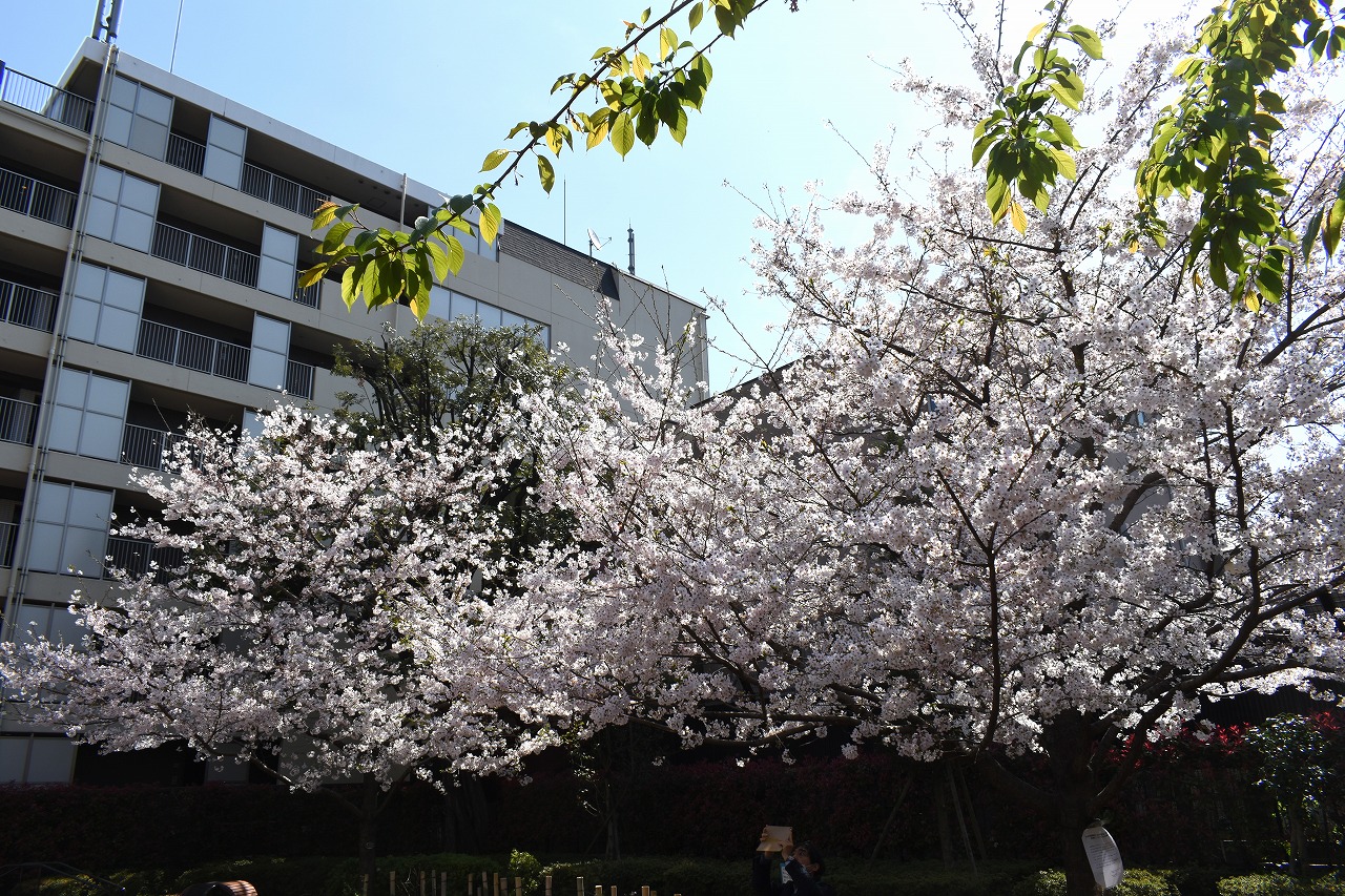 「一言」亀塚公園の大きな桜の木々が見頃になりました。魚籃坂下にはサクラソウが咲き出しました。高野山東京別院の桜も見頃です。
