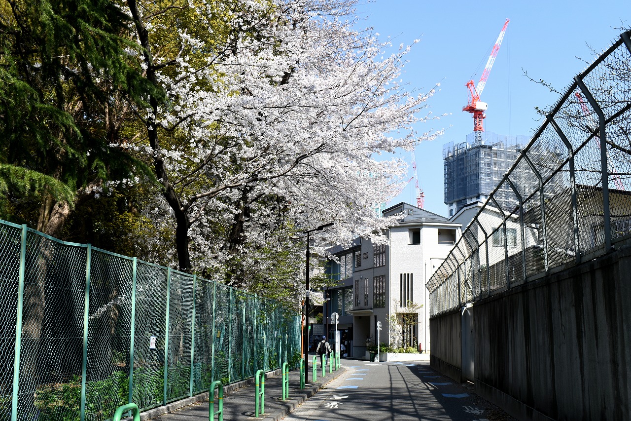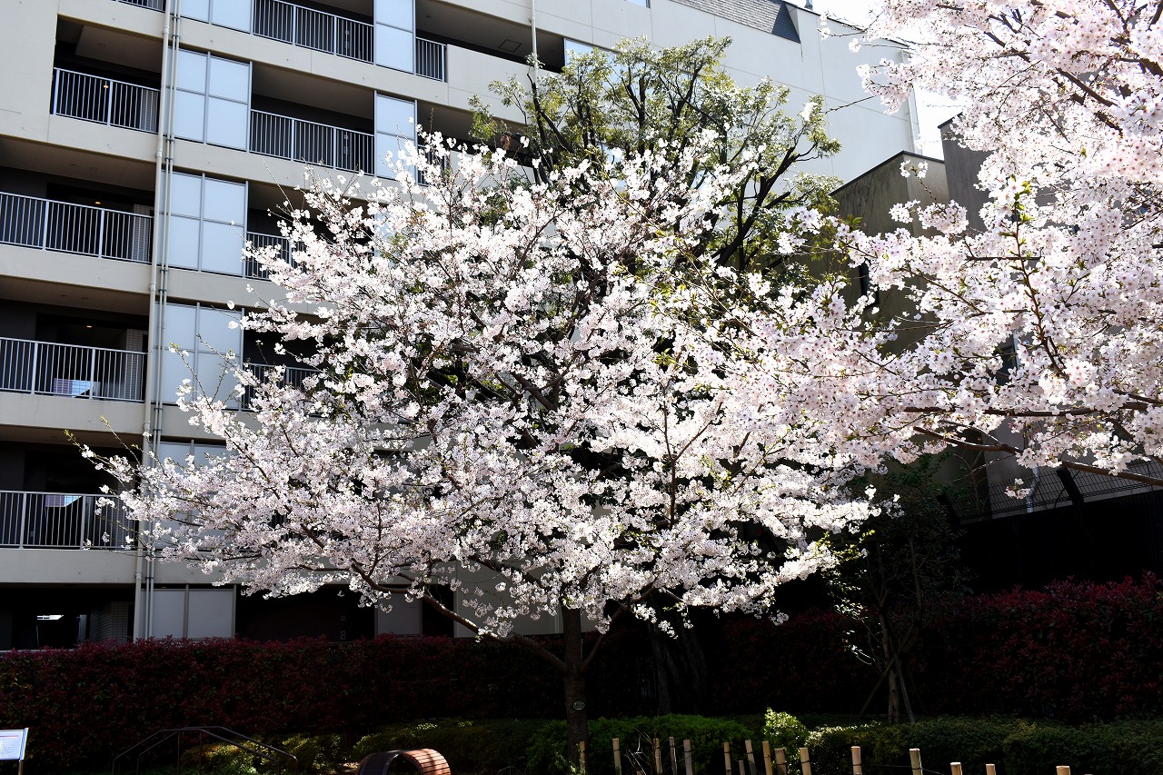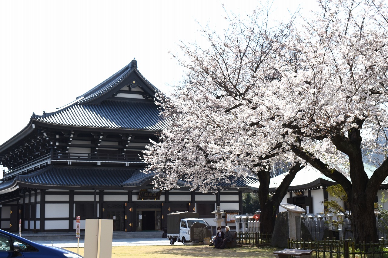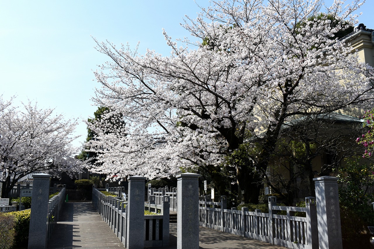 「一言」亀塚公園の大きな桜の木々が見頃になりました。魚籃坂下にはサクラソウが咲き出しました。高野山東京別院の桜も見頃です。