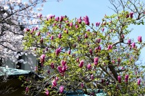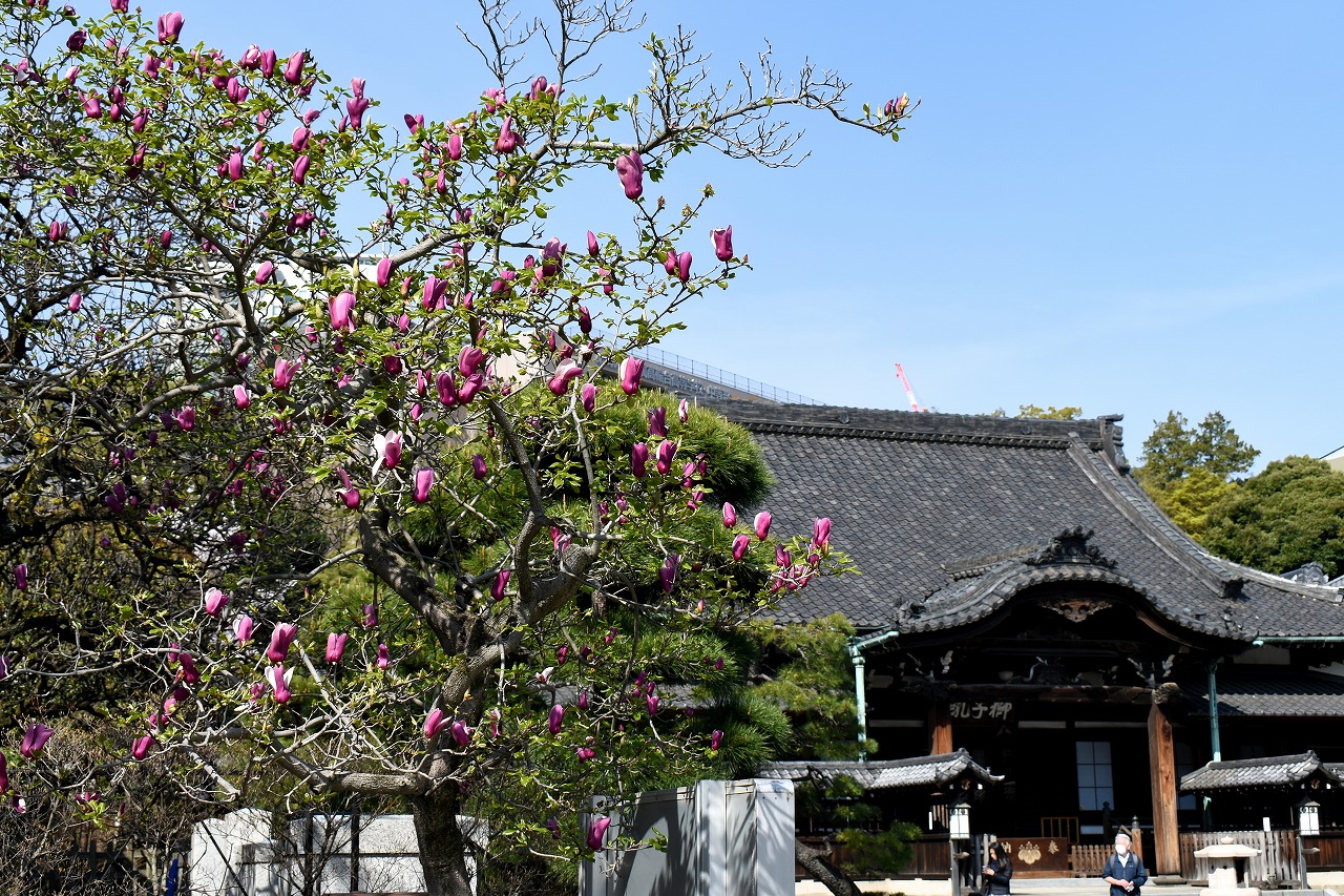 紫モクレンが咲き出しています。三田寺町にはしだれ桜や花海棠、ツツジ、シャクナゲ、ハナモモなど色々な花が咲いています。