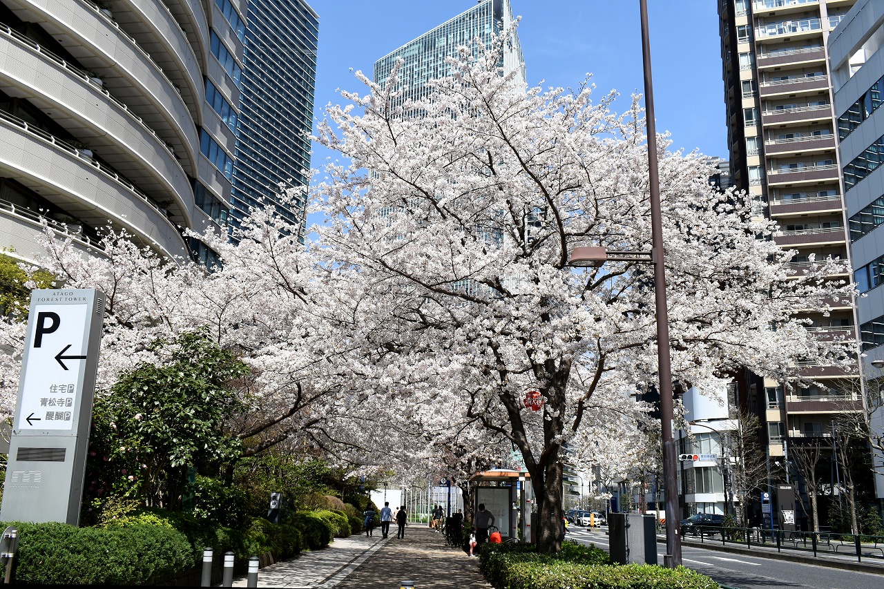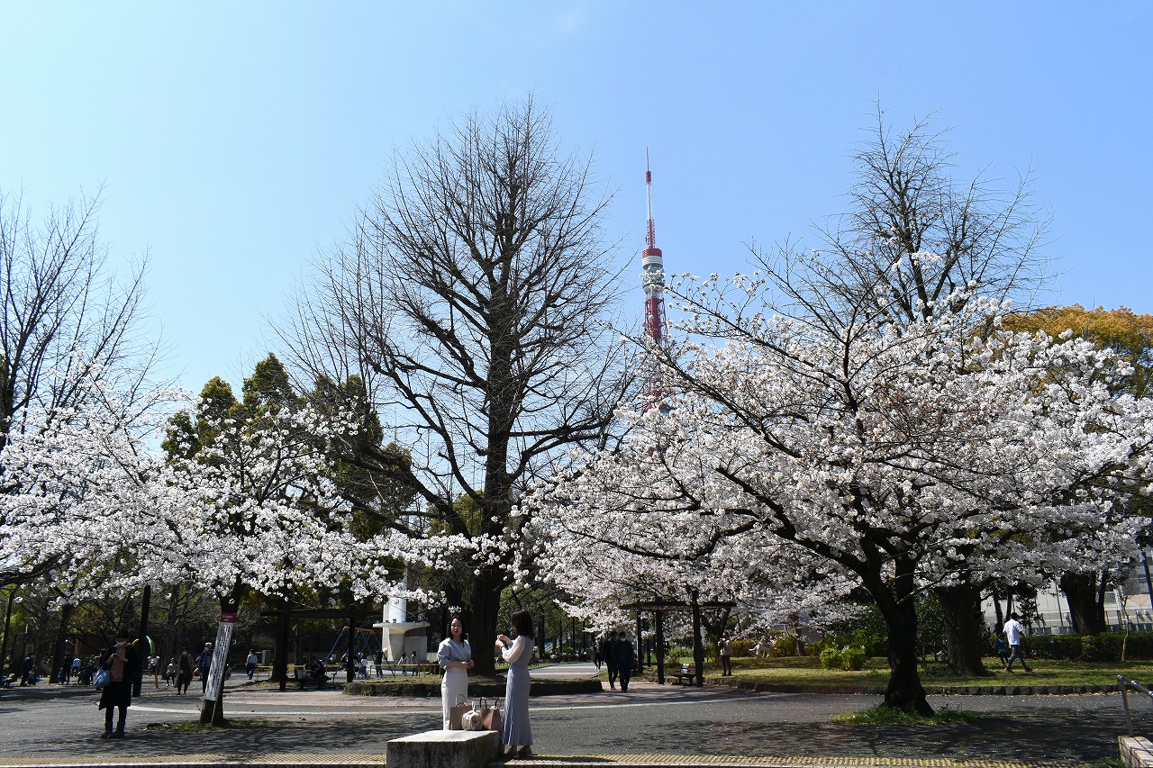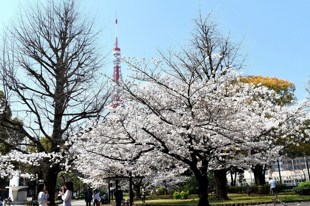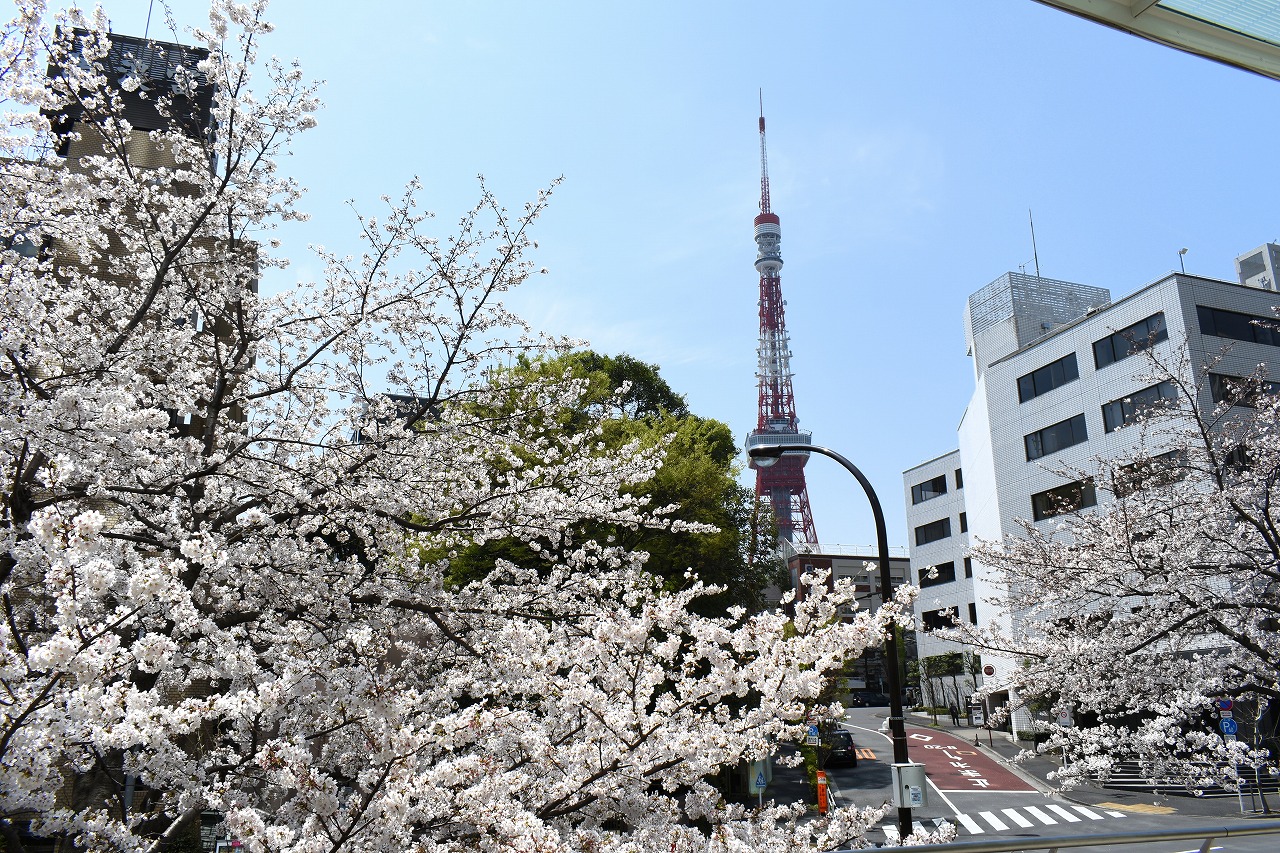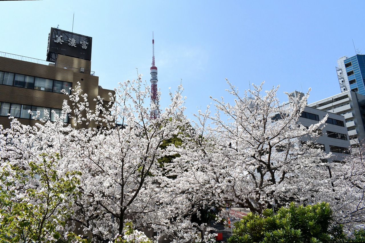「一言」芝公園の桜が満開になりました。東京タワーを背景にした風景は良い感じです。愛宕下通リの桜も見頃になり華やかです。