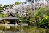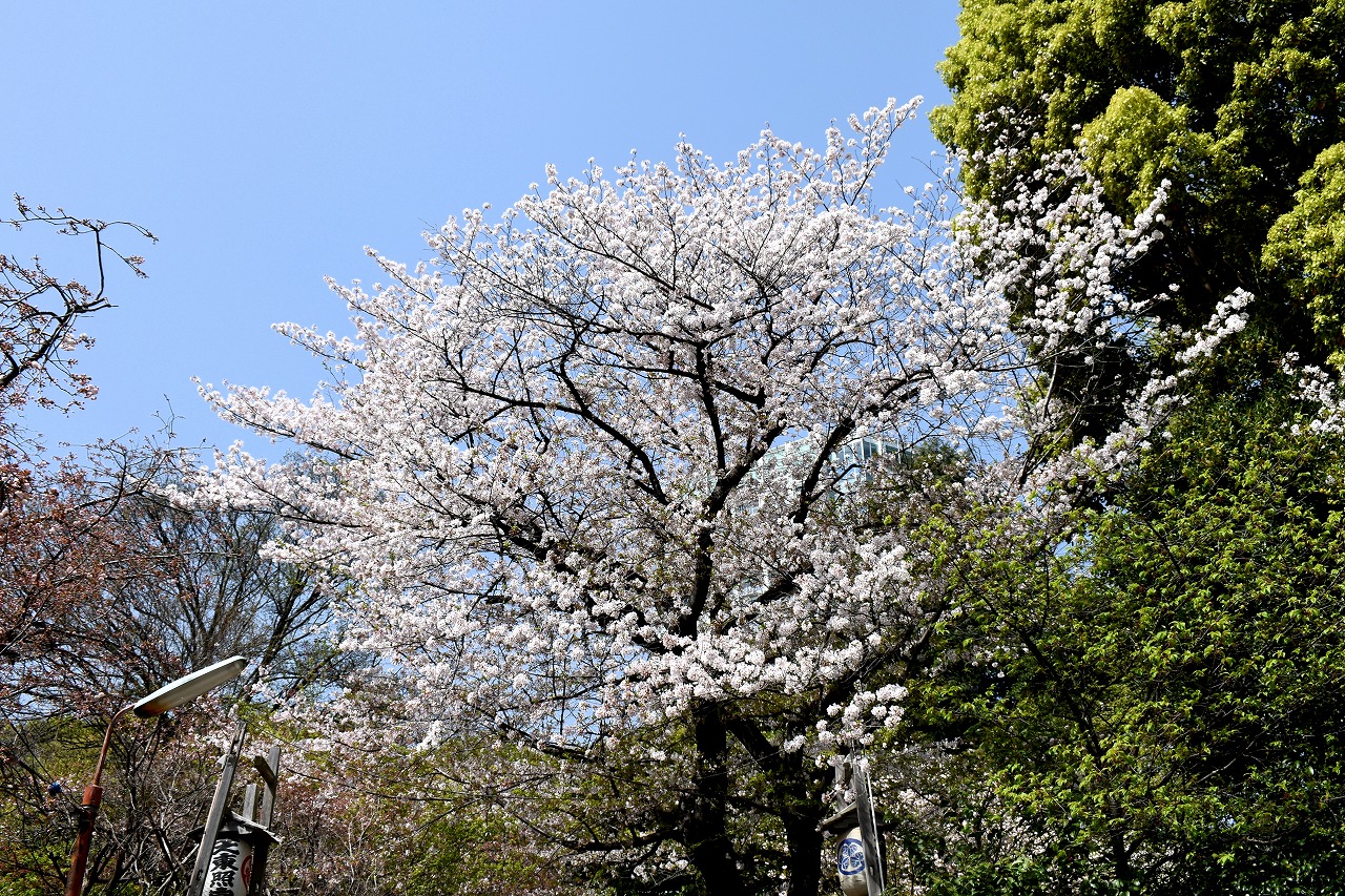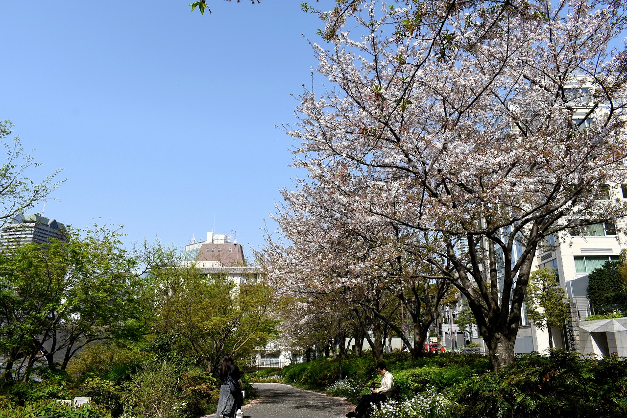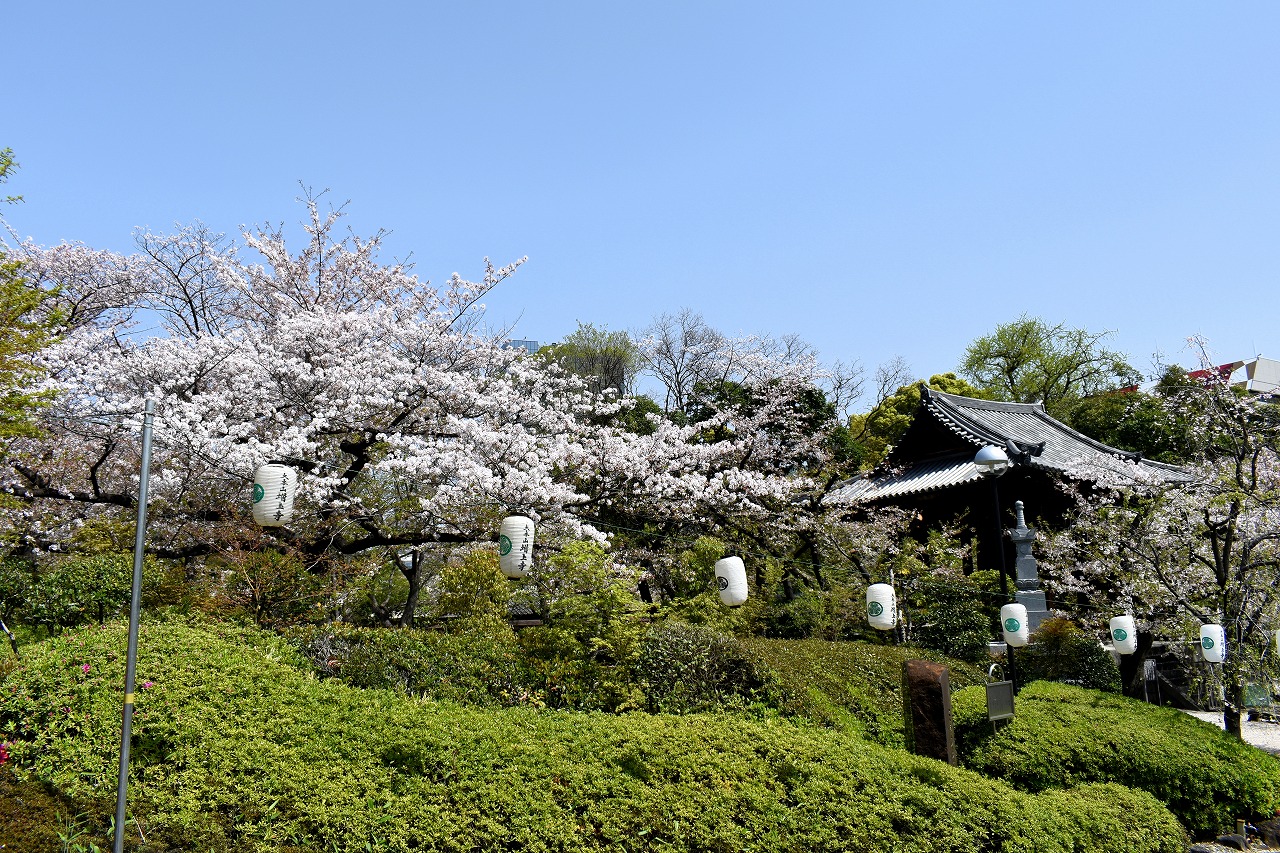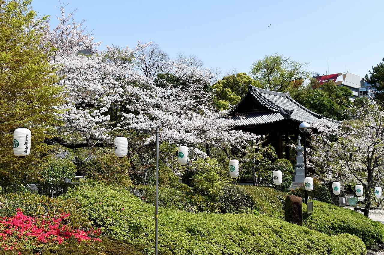 増上寺にも大きな桜の木が満開です。本堂裏のしだれ桜も見頃になっており風情があります。芝公園にはシャクナゲやアイリス、