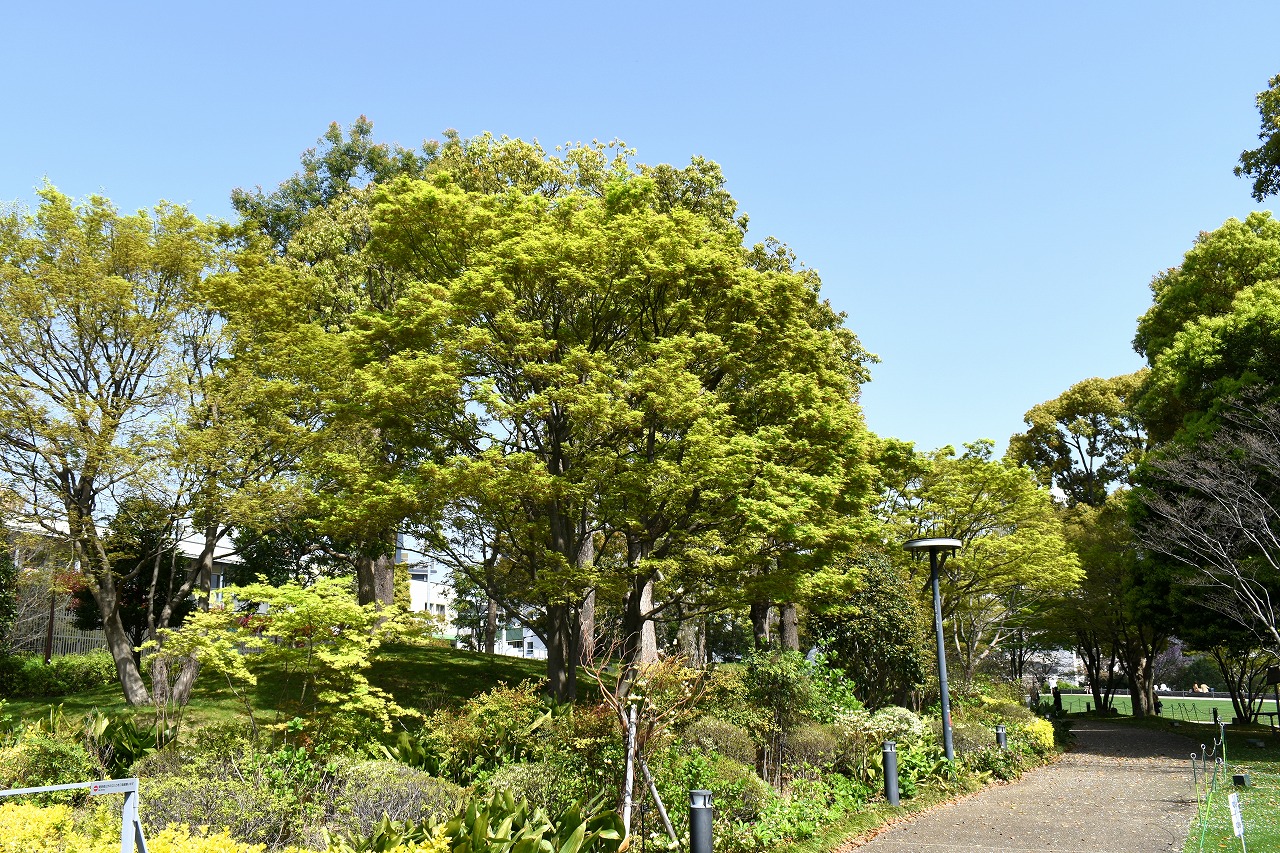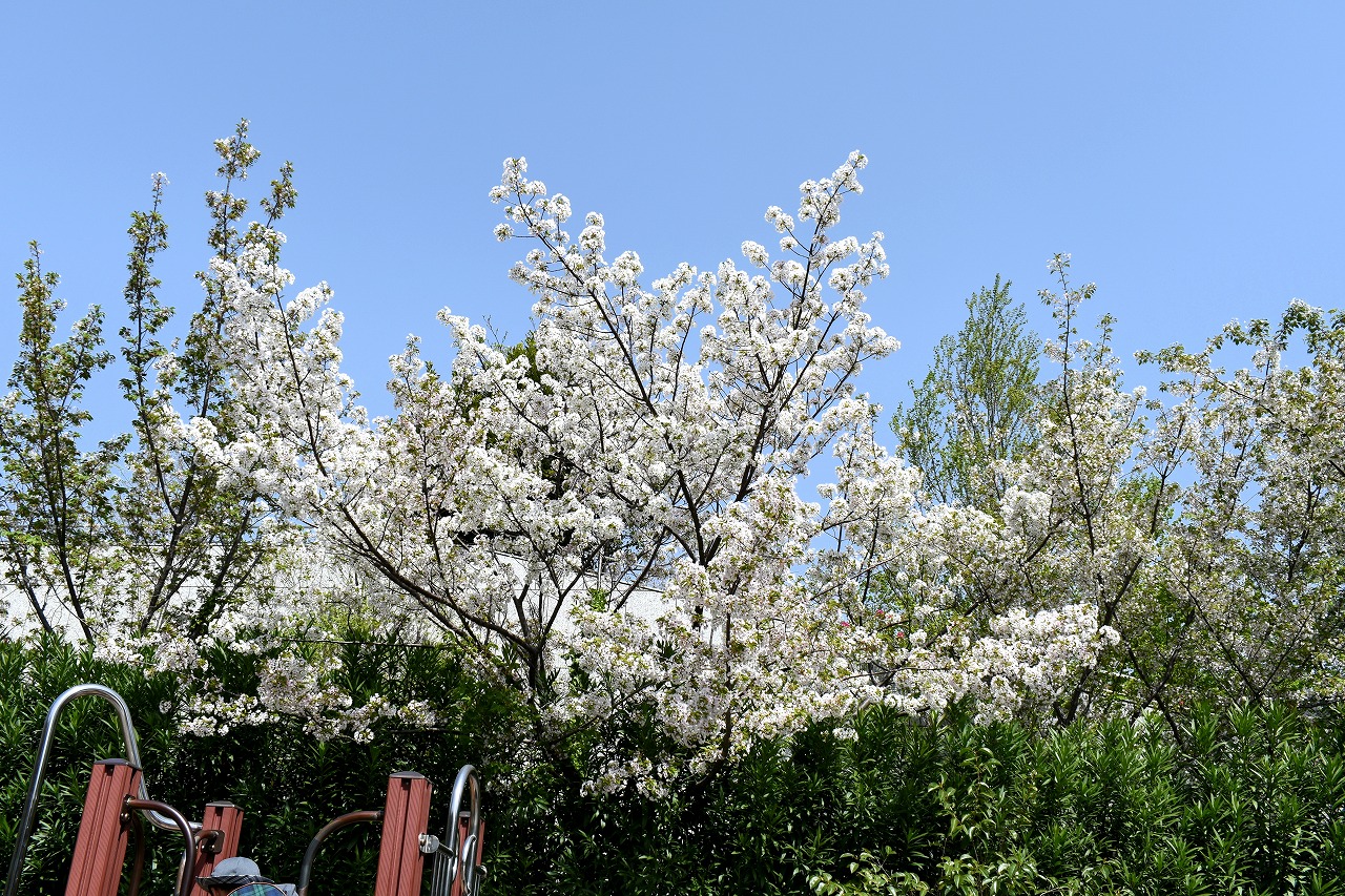 花が咲き綺麗です。大きな木の新緑も良い色をしています。
