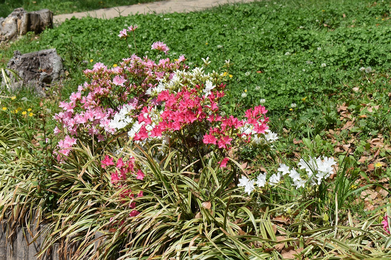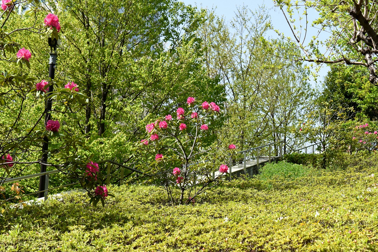 ツツジなど色々な花が咲いています。東京ミッドタウンのグリーンガーデンの桜は峠を越えましたが、ツツジやあやめなど色々な