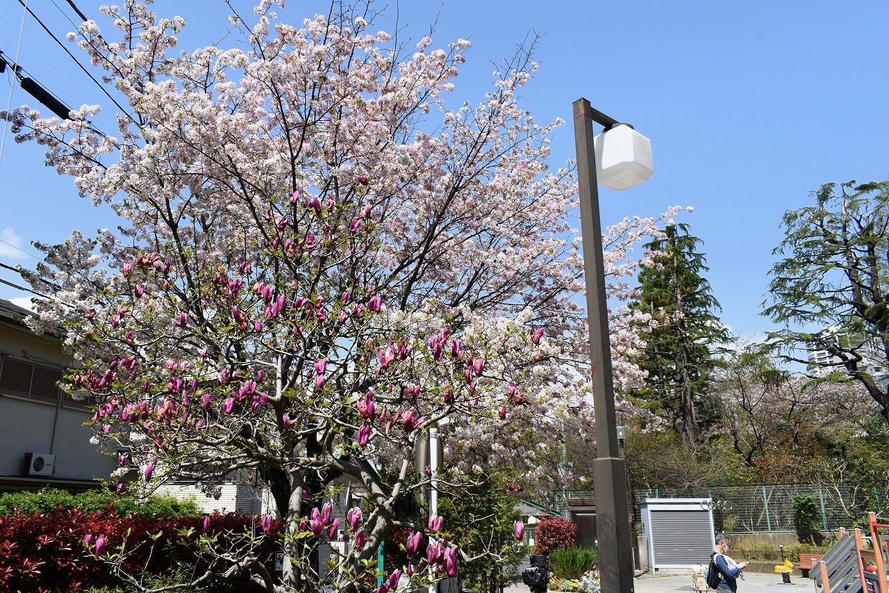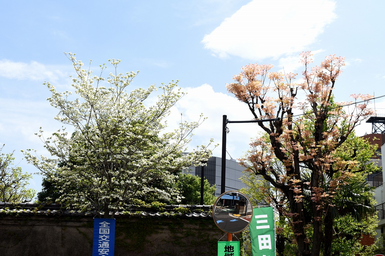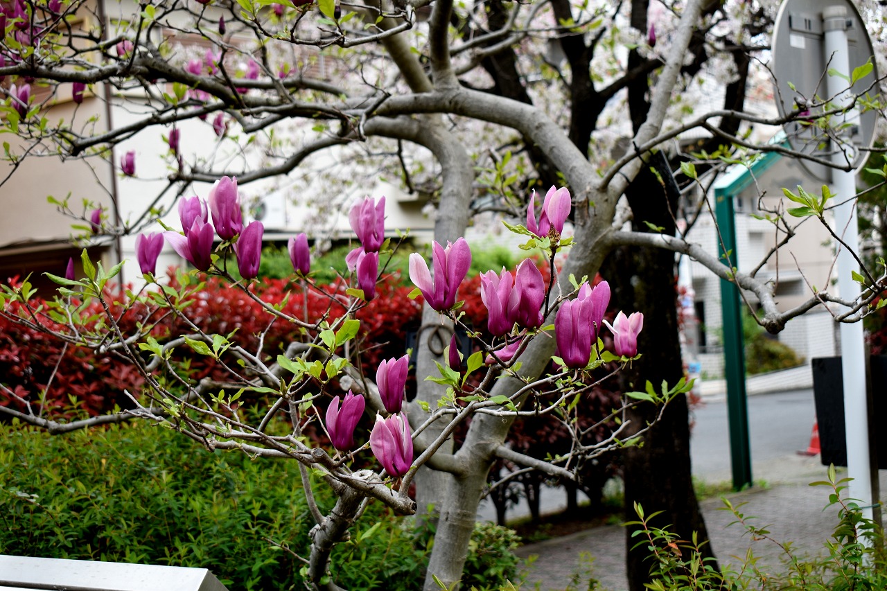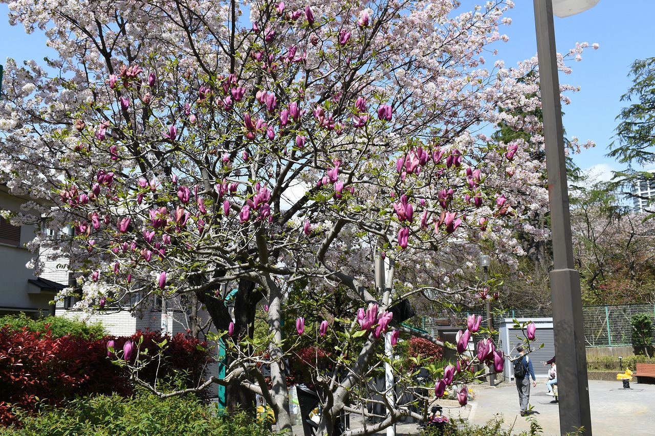 ハナミズキが咲き出しました。高松遊園には桜の前に紫モクレンの花がたくさん咲いています。玉鳳寺の八重桜も咲き出しました。日に日に