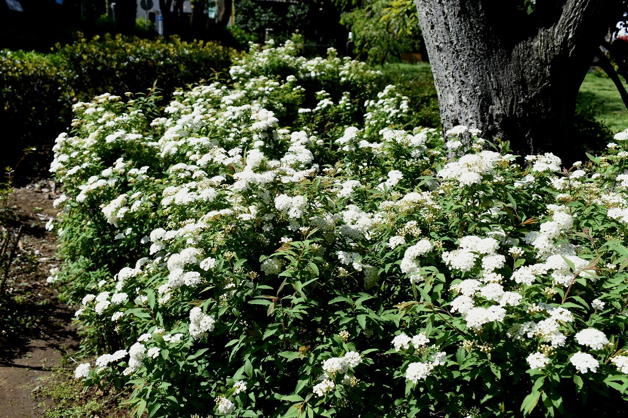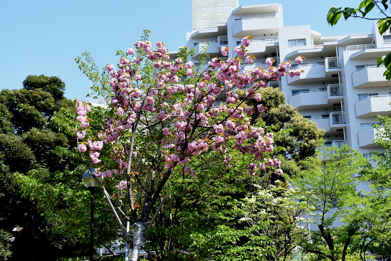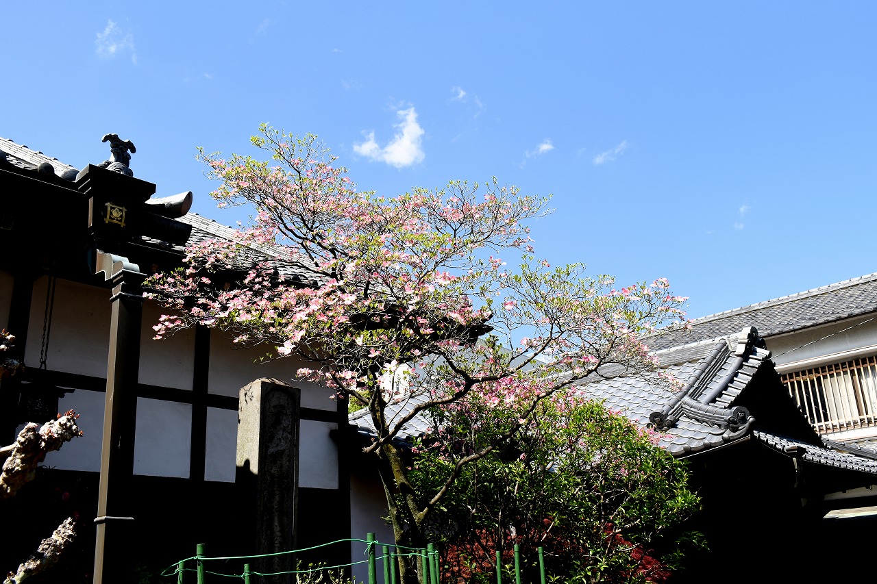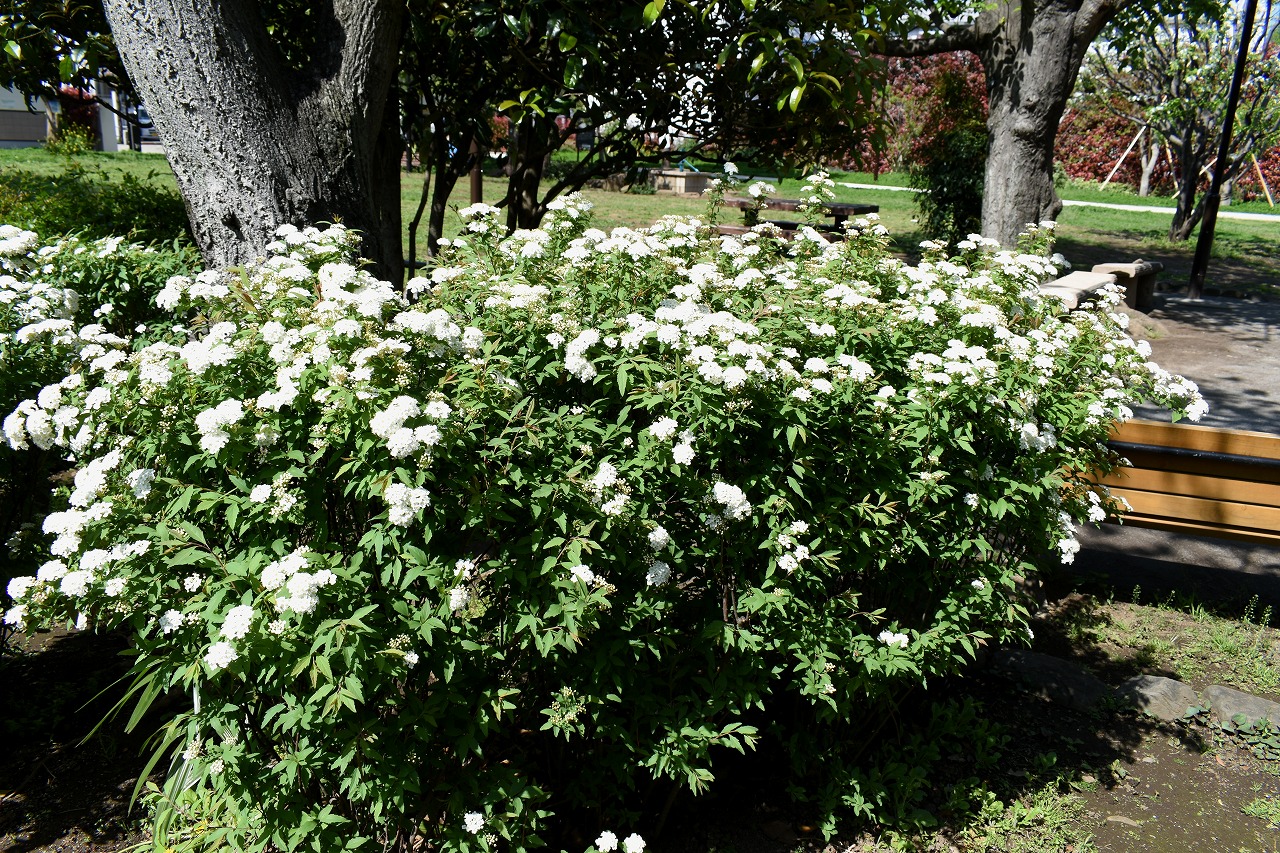 三田台児童遊園にはヒメリンゴやハナミズキ、コデマリの花が咲いています。證誠寺や玉鳳寺の八重桜も見頃です。