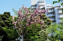 イチョウの新緑がさわやかです。どんぐり遊園には八重桜が咲き、花壇にはチューリップなど色々な花が咲いています。