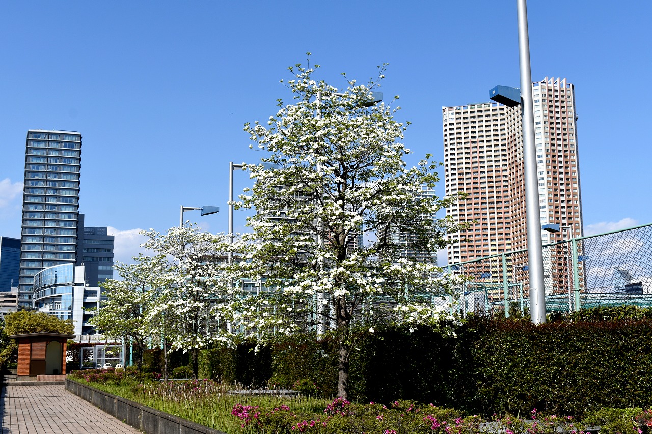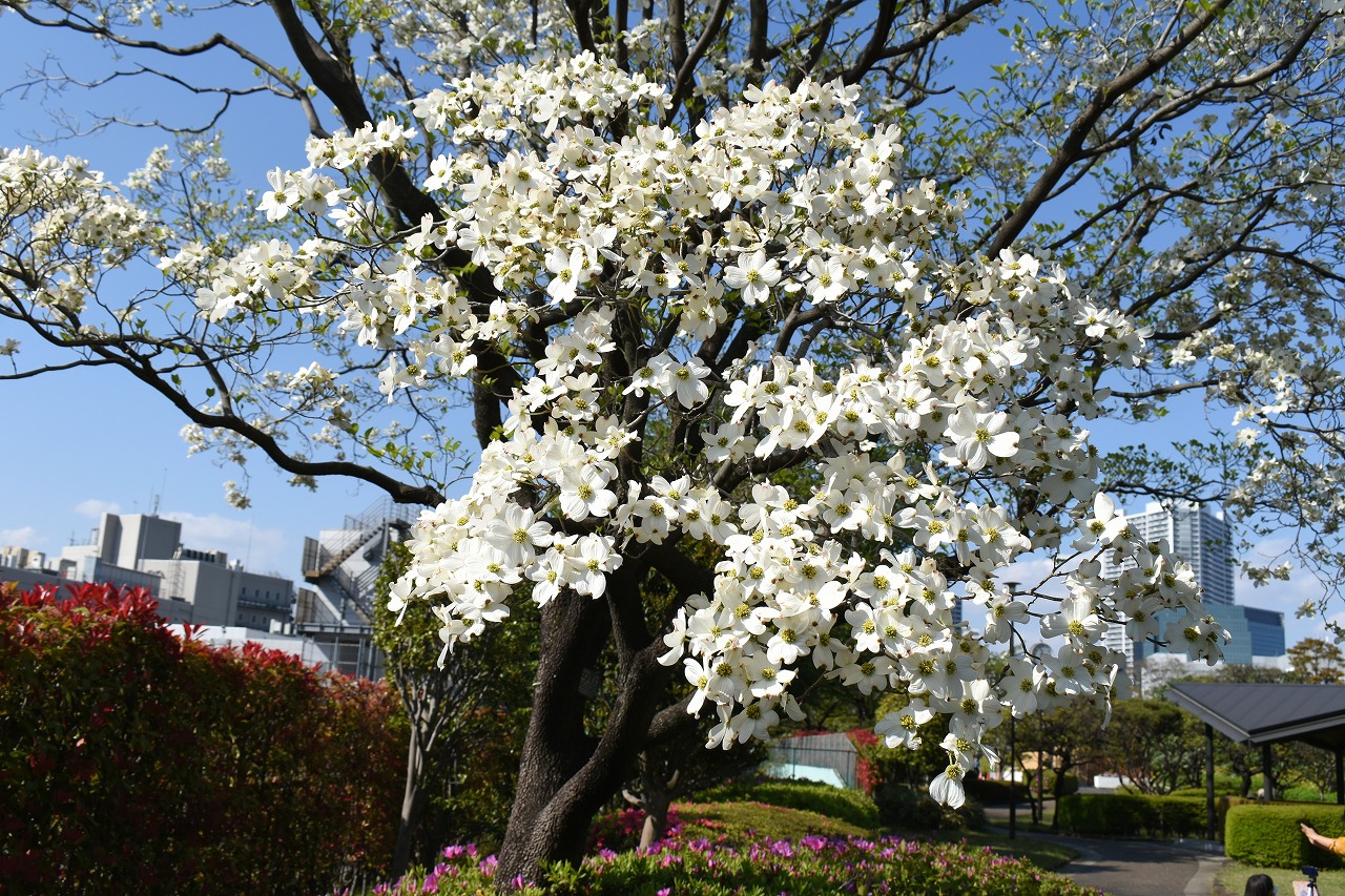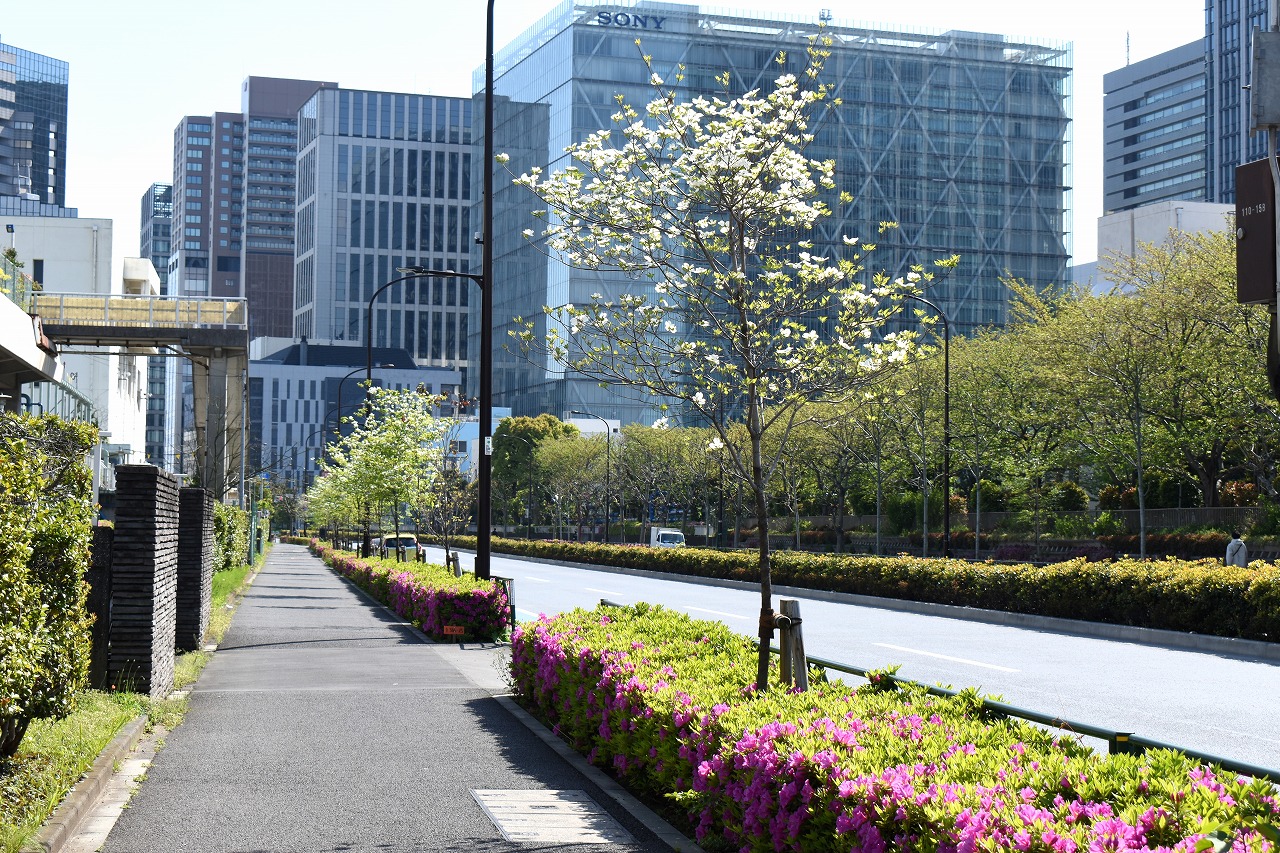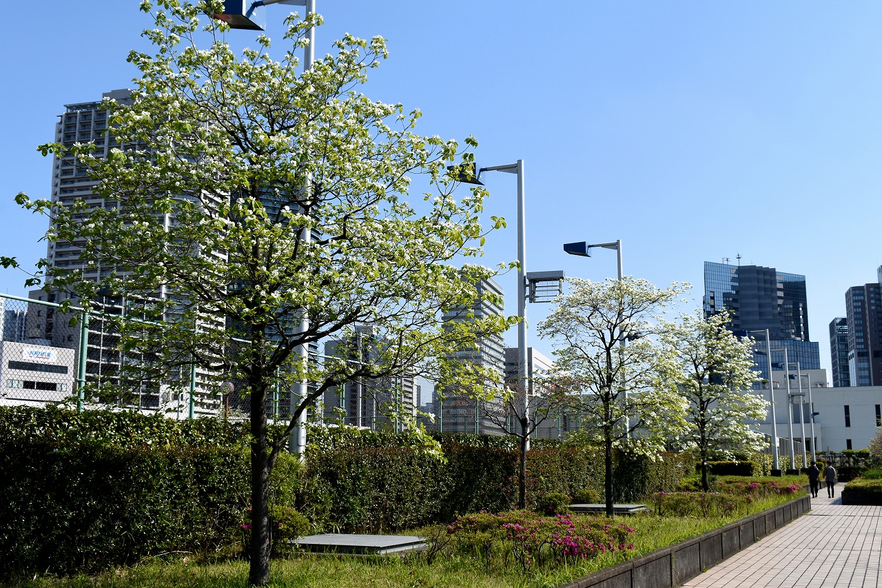 「一言」芝浦中央公園にはハナミズキや萩の花が咲いています。バラの花も咲き出しています。芝浦運動場もバラの 花も咲き出しています。キリシマツツジがたくさん咲いていて華やかです。ハナミズキも咲いています。 南麻布の光林寺には八重桜が満開です。八重桜の横にシマトネリコも咲いています。シランも咲いています。 天現寺には萩の花やボタンの花が咲いています。有栖川公園にはツツジやハルモミジが綺麗です。