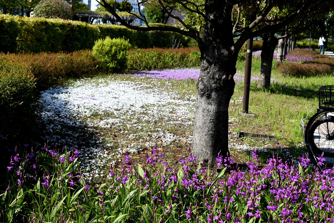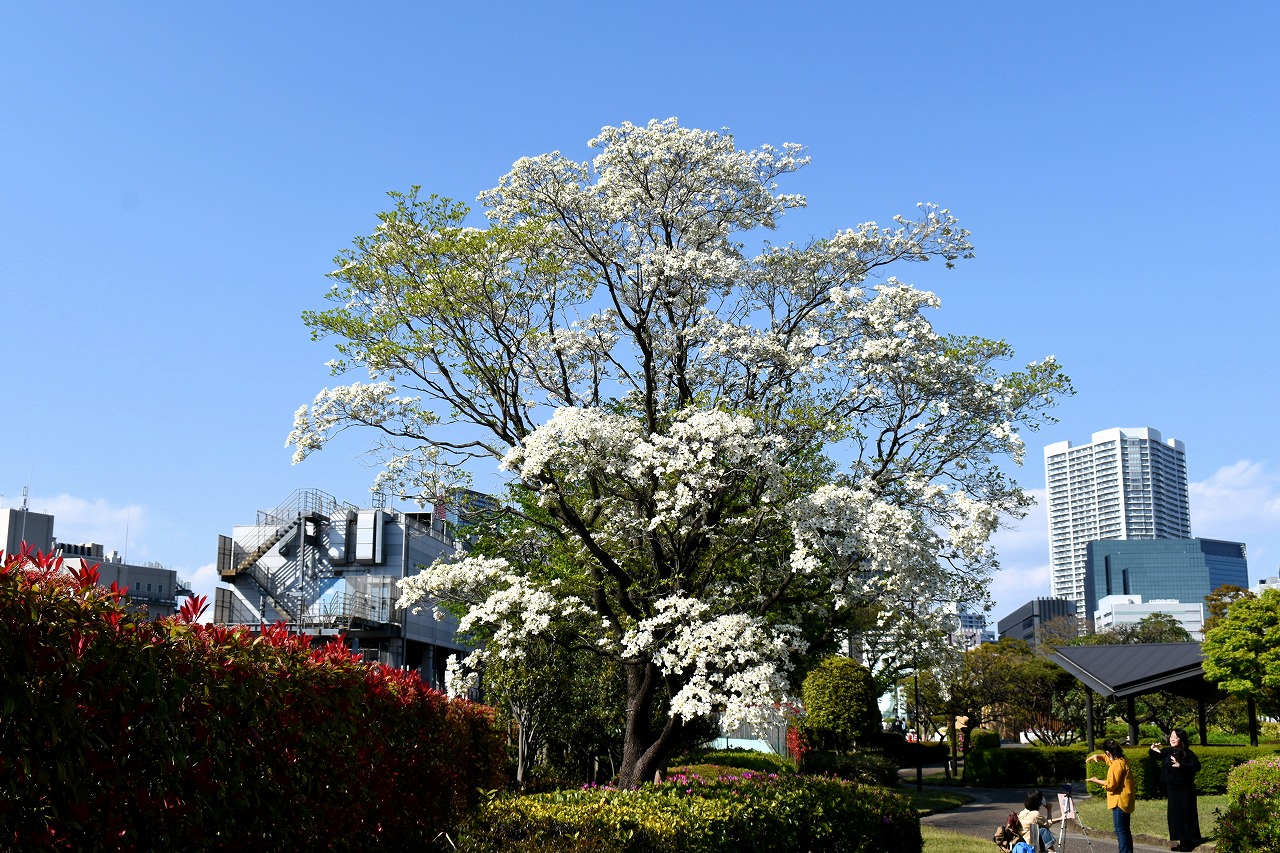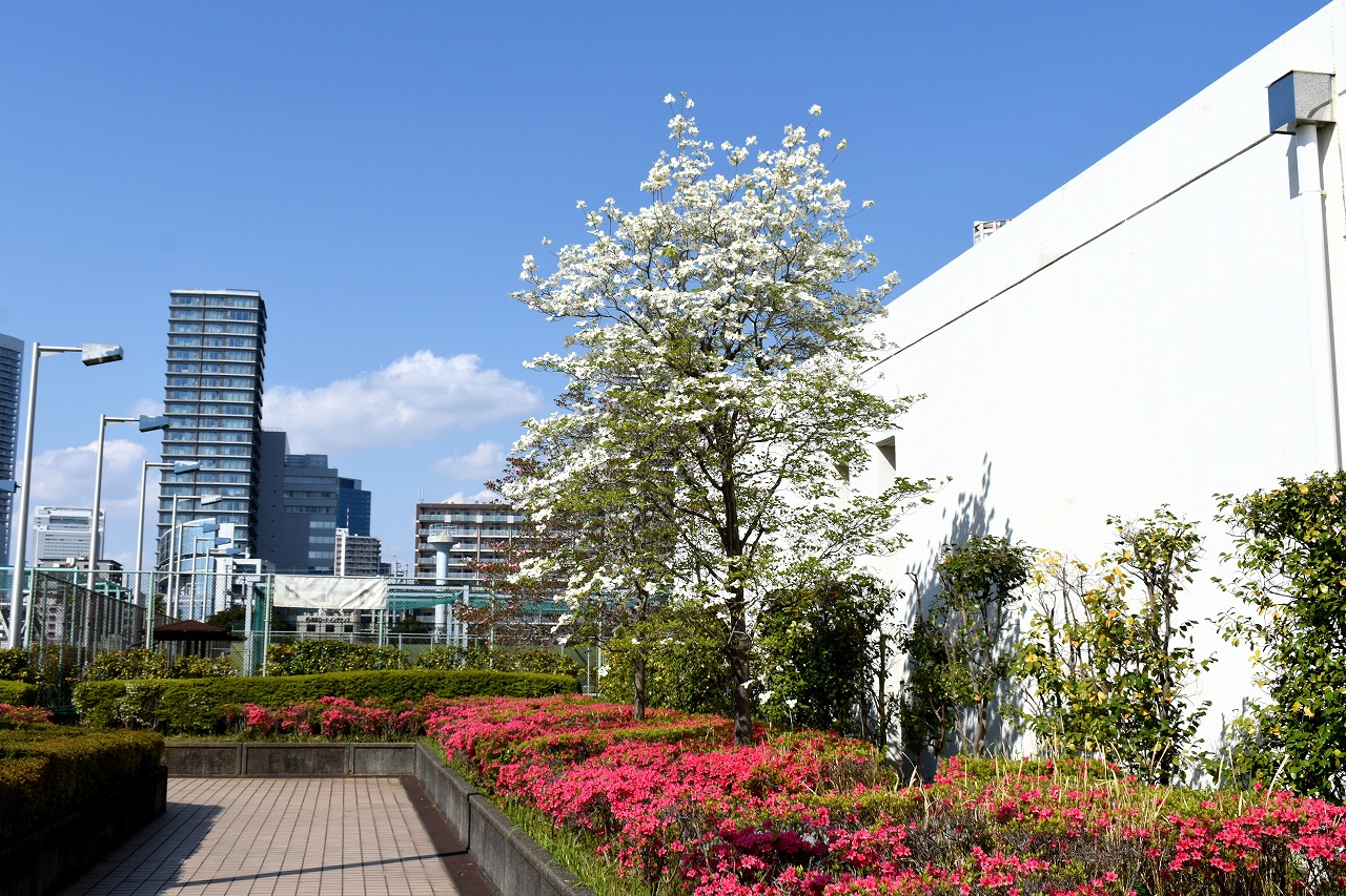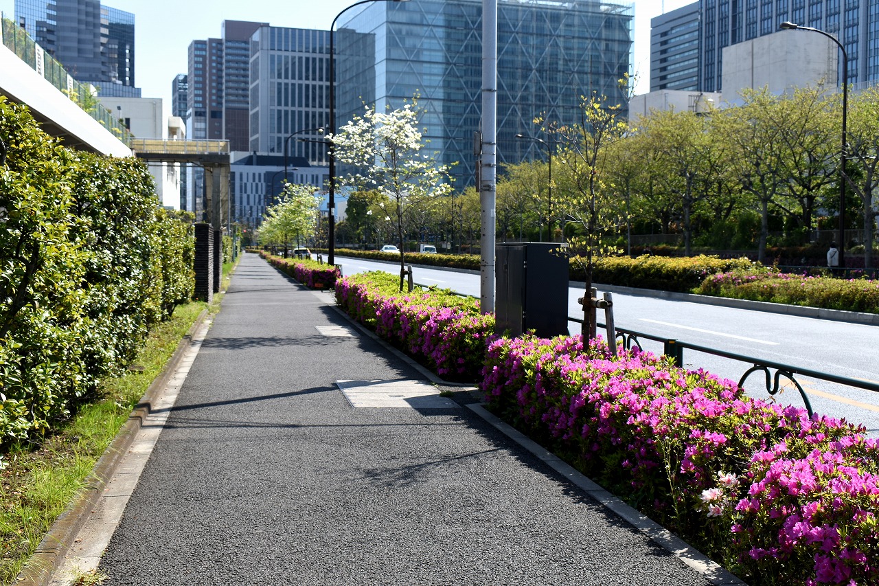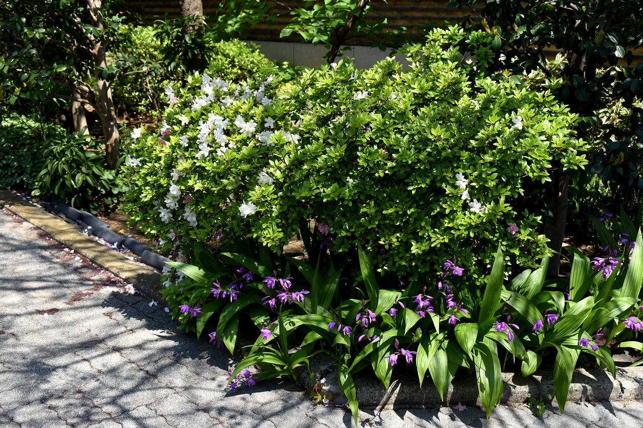「一言」芝浦中央公園にはハナミズキや萩の花が咲いています。バラの花も咲き出しています。芝浦運動場もバラの 花も咲き出しています。キリシマツツジがたくさん咲いていて華やかです。ハナミズキも咲いています。 南麻布の光林寺には八重桜が満開です。八重桜の横にシマトネリコも咲いています。シランも咲いています。 天現寺には萩の花やボタンの花が咲いています。有栖川公園にはツツジやハルモミジが綺麗です。