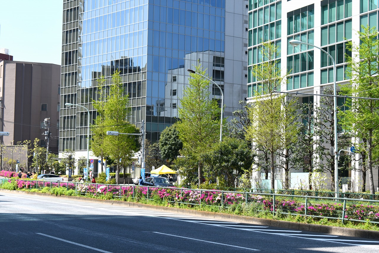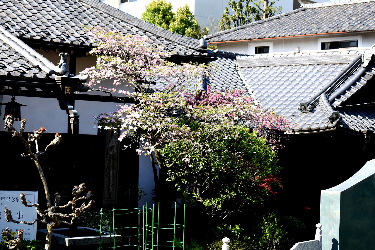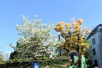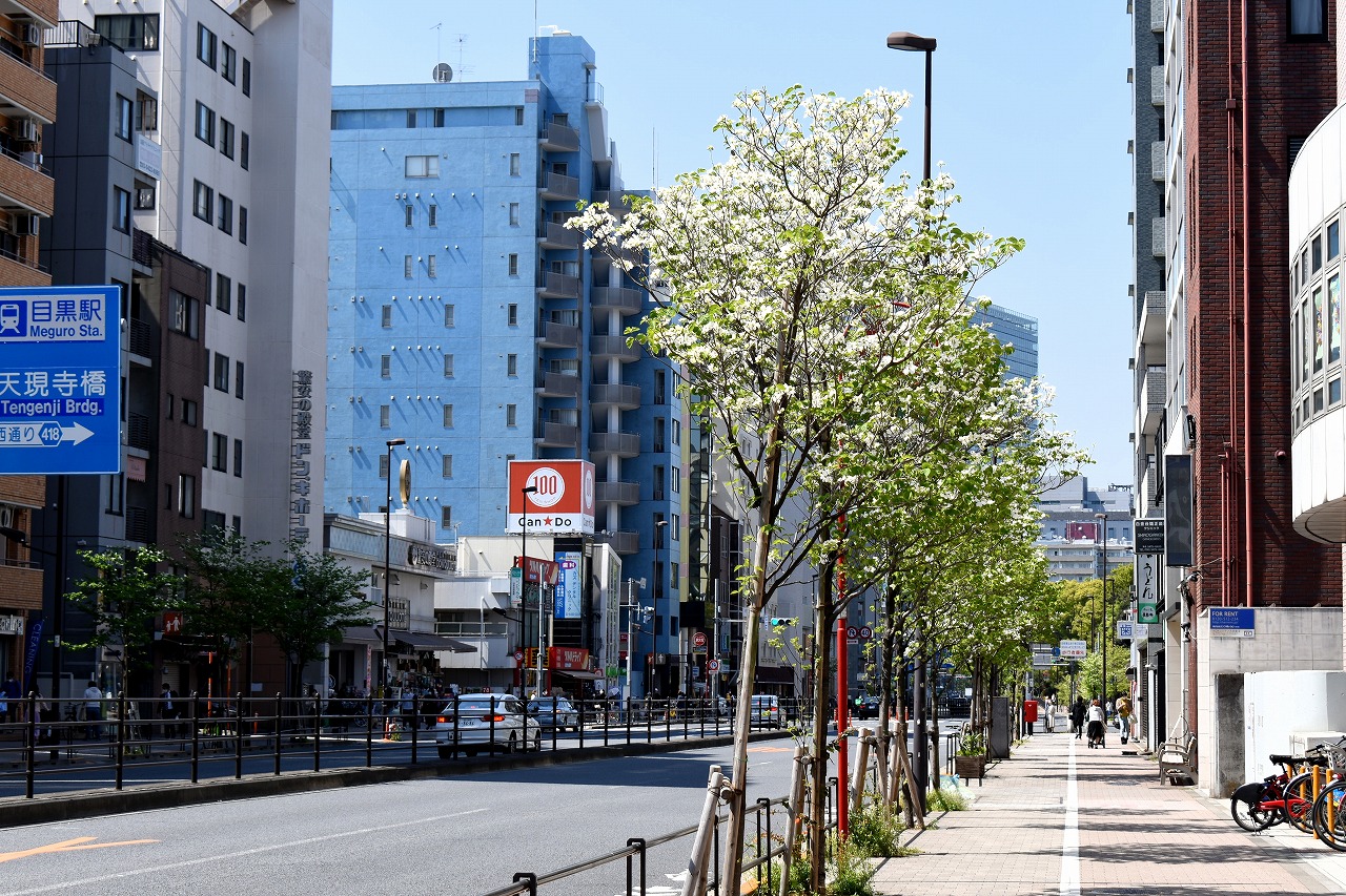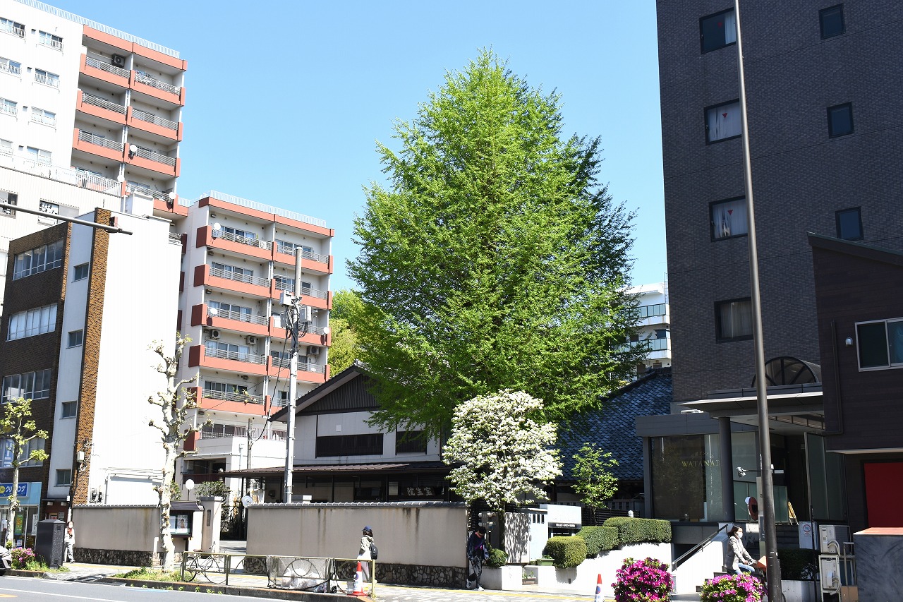 「一言」日吉坂から目黒通リにかけてのハナミズキの並木に花が咲き綺麗です。東大医科研大のイチョウも新緑が綺麗です。 どんぐり児童遊園には八重桜が咲き、藤の花が咲いています。花の房も大きくなってきました。魚籃坂下の交差点の 芝桜が見頃になっています。札ノ辻の近くの芝桜も咲き出しています。玉鳳寺や證誠寺の八重桜も満開になっています。 正山寺にはモッコウバラやジャーマンアリスが咲いています。桜田通りの宝生院のjハナミズキは満開です。