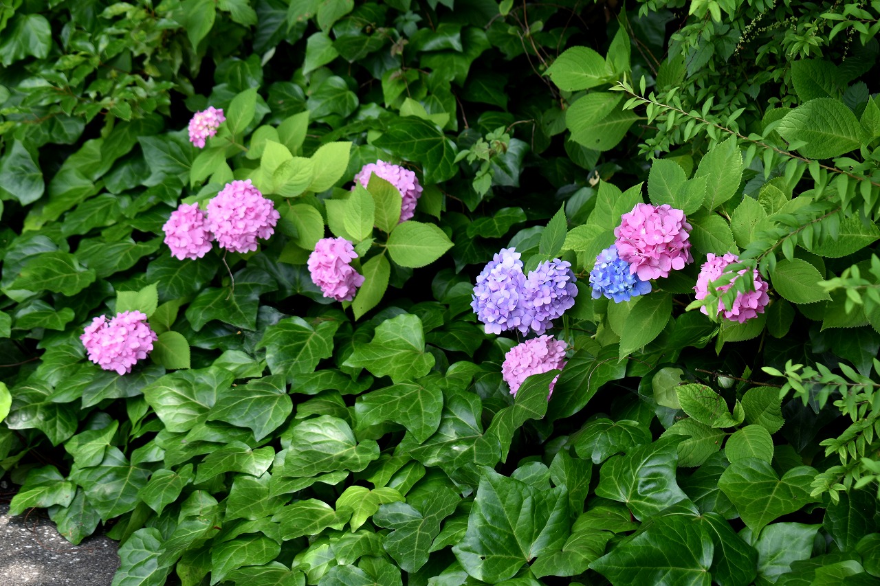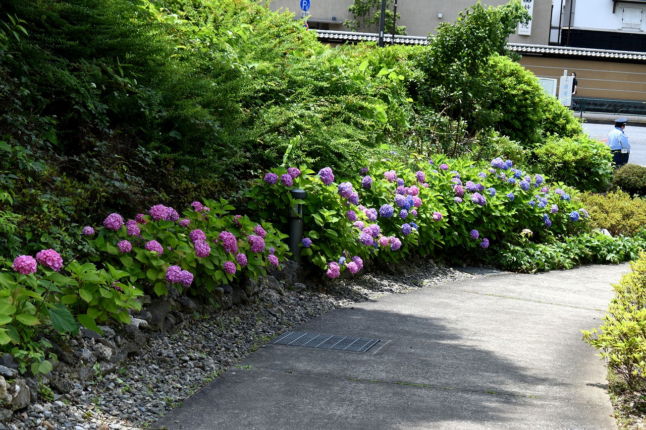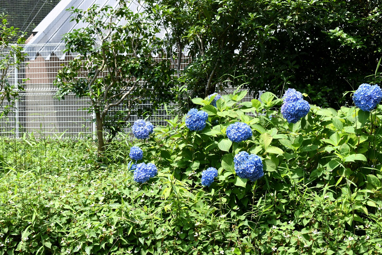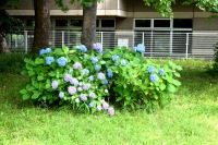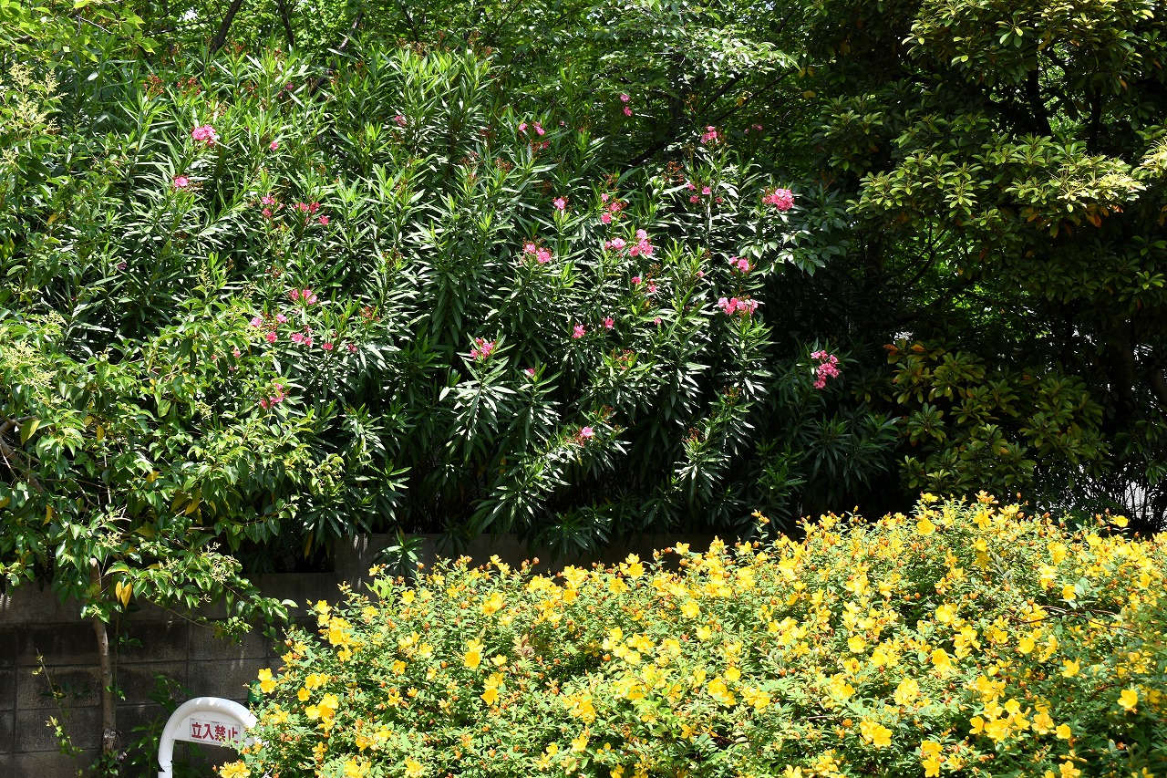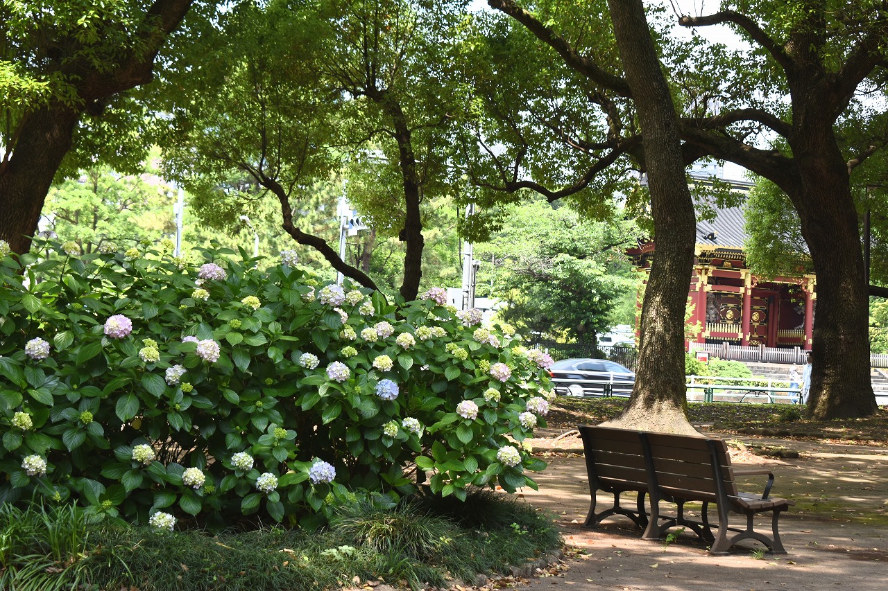 「一言」芝公園のあちこちにアジサイの花が咲いています。区役所の前の大きな木の下にはおおきなアジサイの木があり、たくさんの花をつけています。 時計台の下にもアジサイの花があり、モデルを連れたカメラマンが写真を撮っていました。広場には夾竹桃の花がヒドコートの上に咲いています。 梅林には宮城野萩や木萩が咲いています。ドクダミも一面に咲いていました。