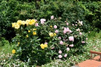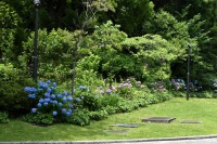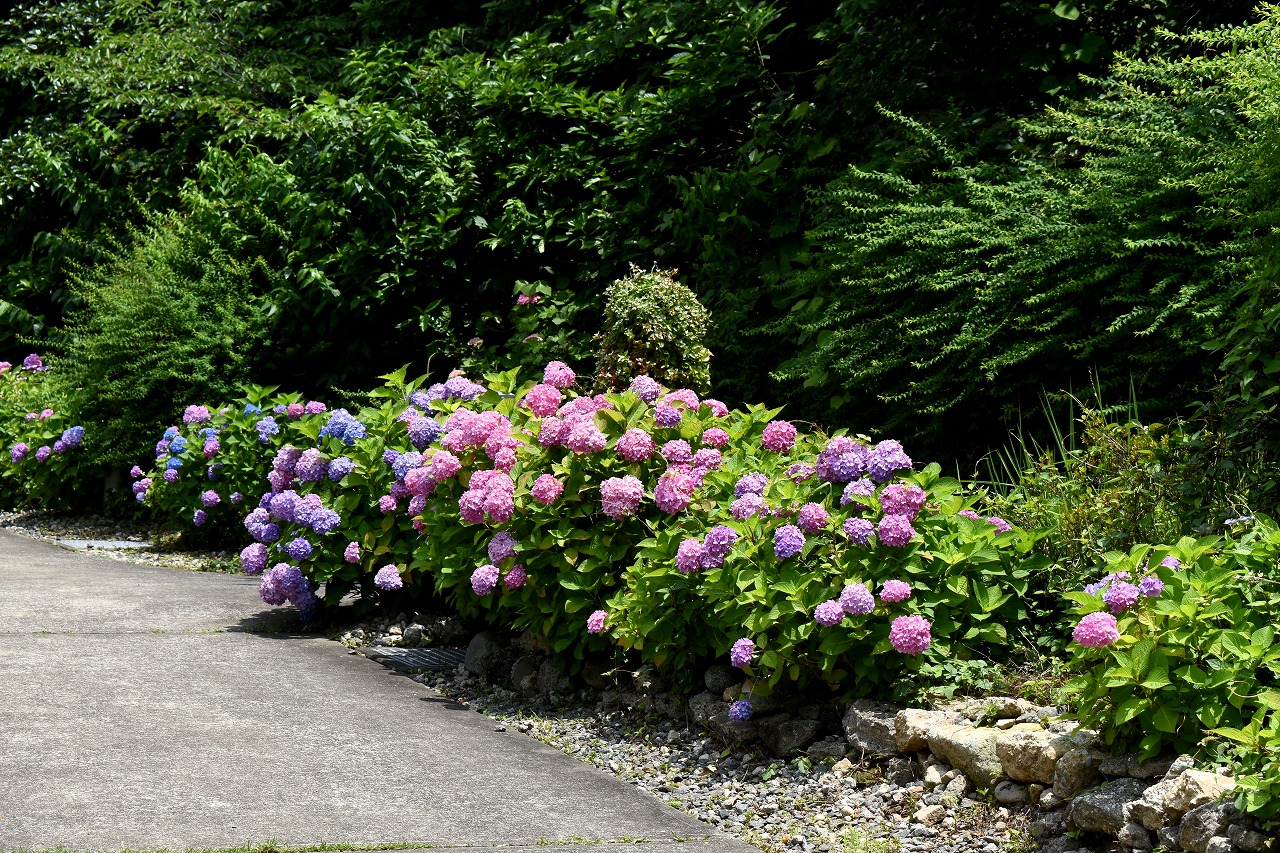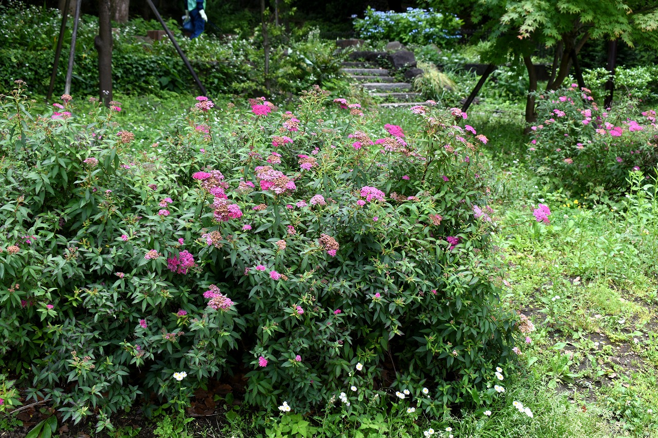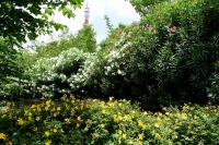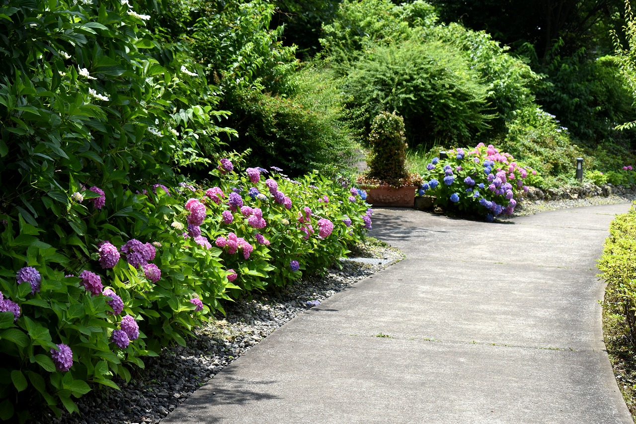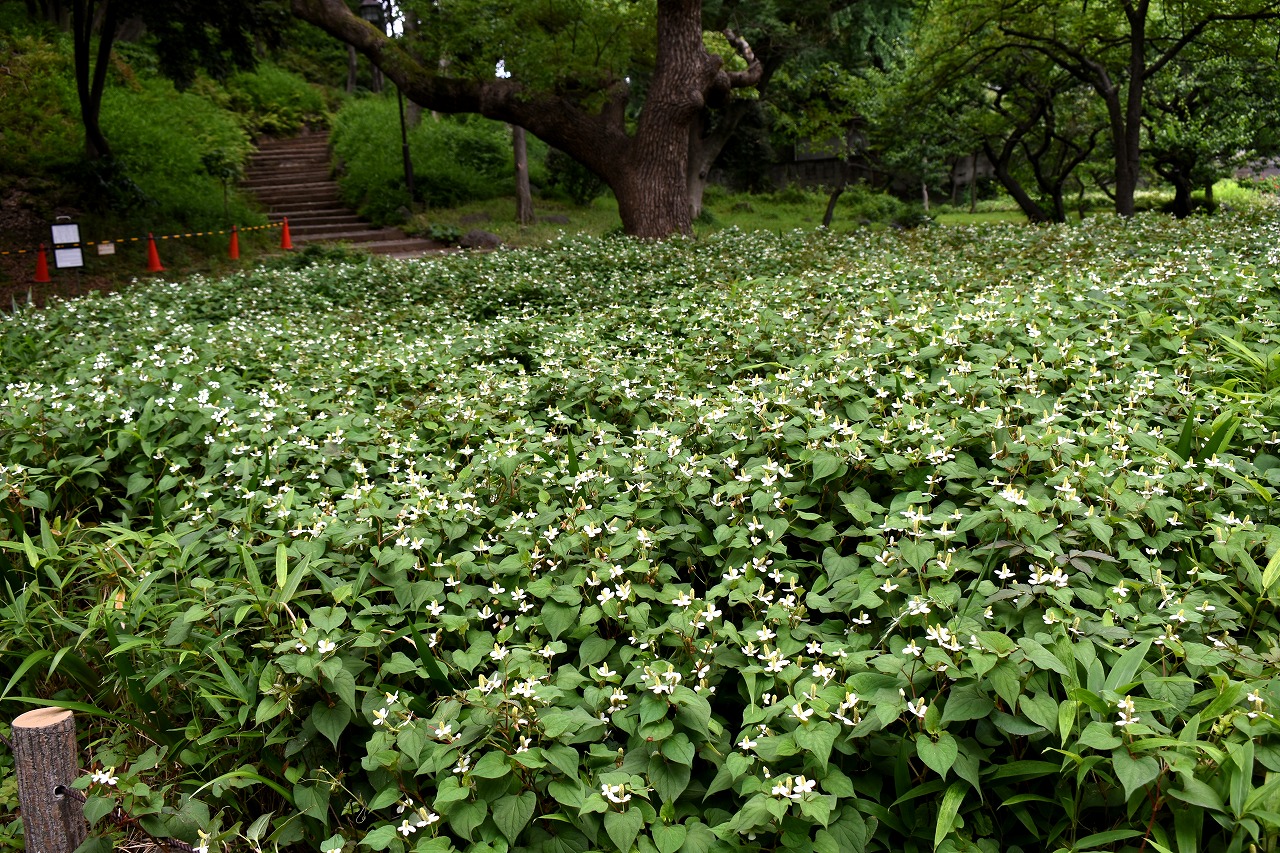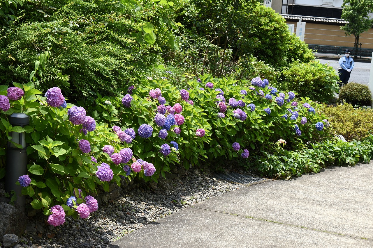 「一言」芝公園のあちこちにアジサイの花が咲いています。区役所の前の大きな木の下にはおおきなアジサイの木があり、たくさんの花をつけています。 時計台の下にもアジサイの花があり、モデルを連れたカメラマンが写真を撮っていました。広場には夾竹桃の花がヒドコートの上に咲いています。 梅林には宮城野萩や木萩が咲いています。ドクダミも一面に咲いていました。