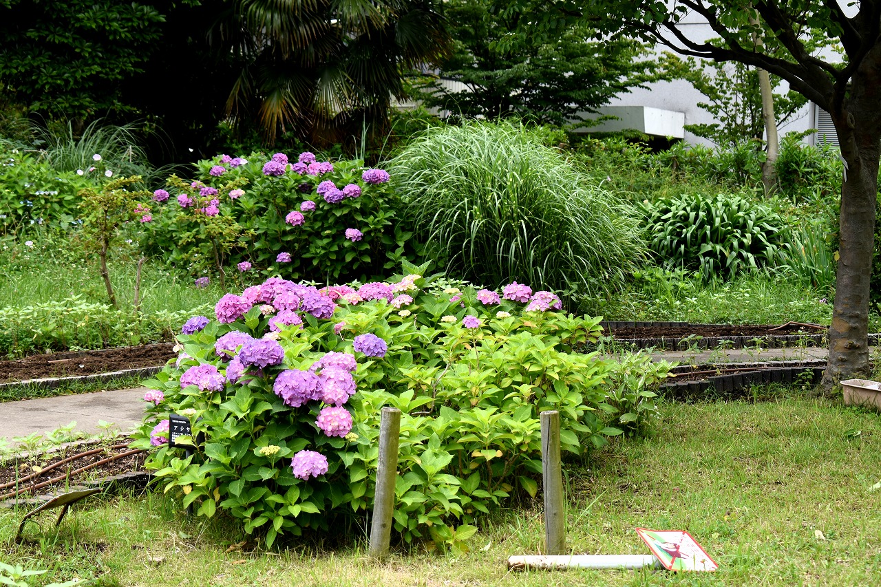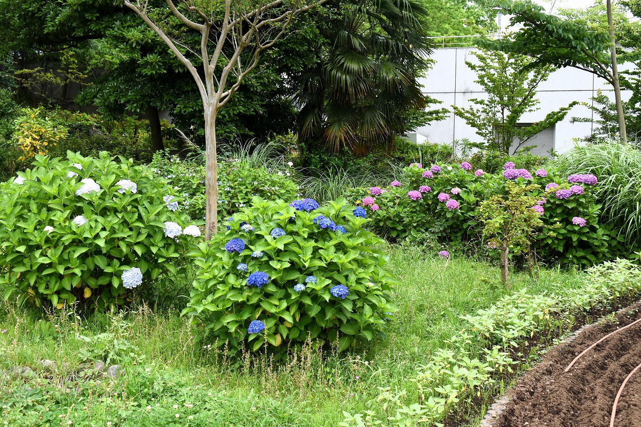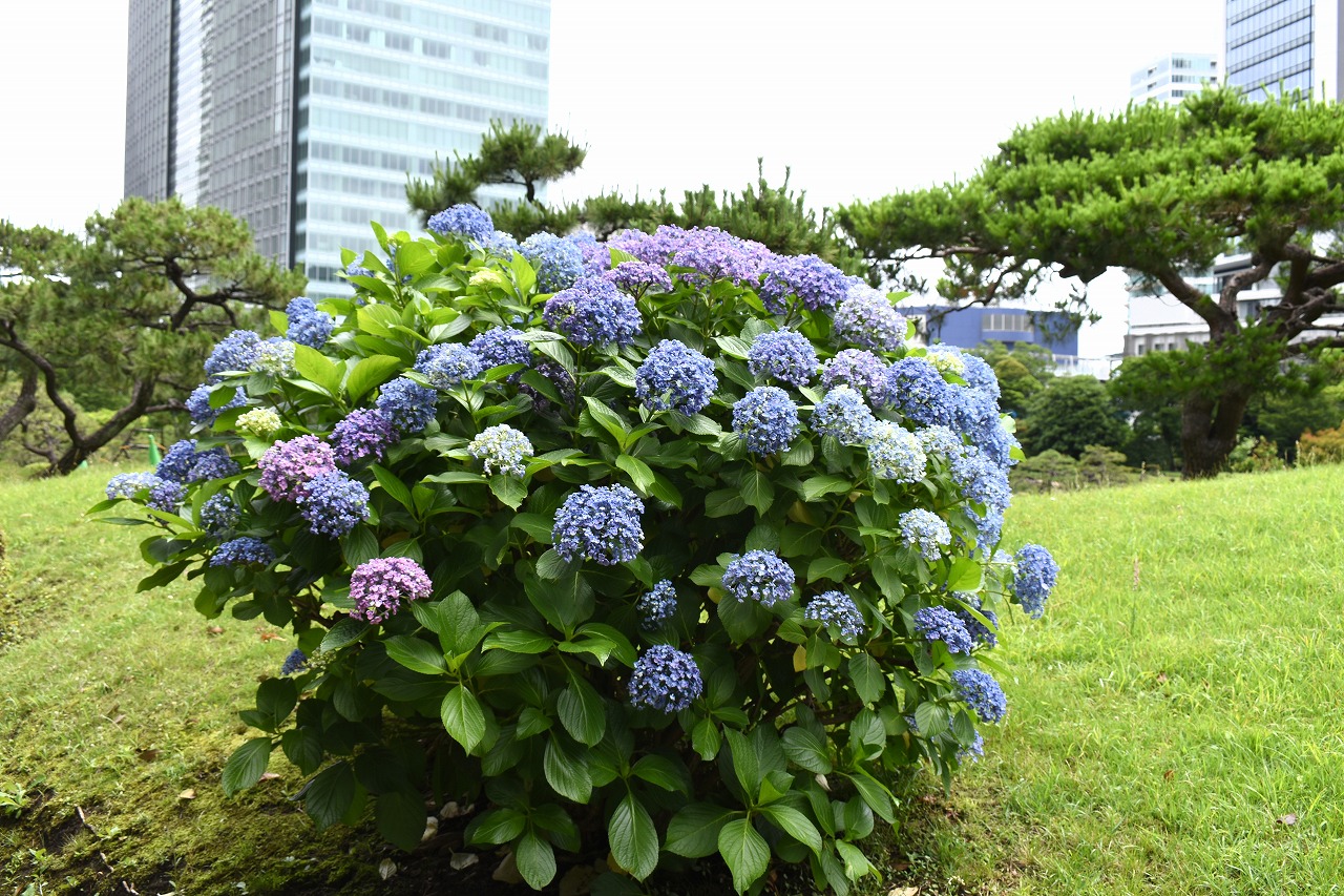 花がたくさん咲いていました。萩やノカンゾウも咲き出していました。芝公園にはアジサイが見頃でした。区役所の前には大きなアジサイ