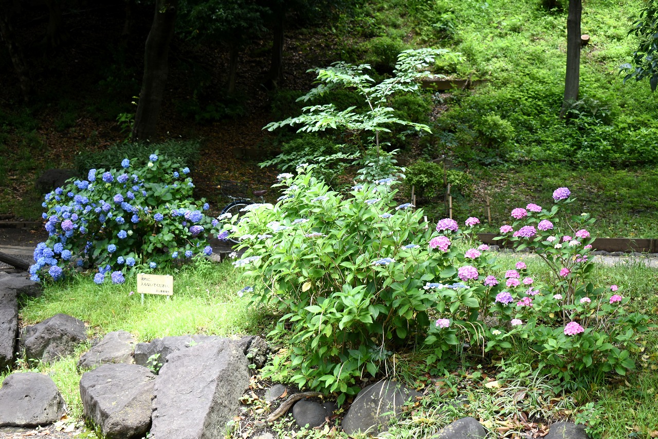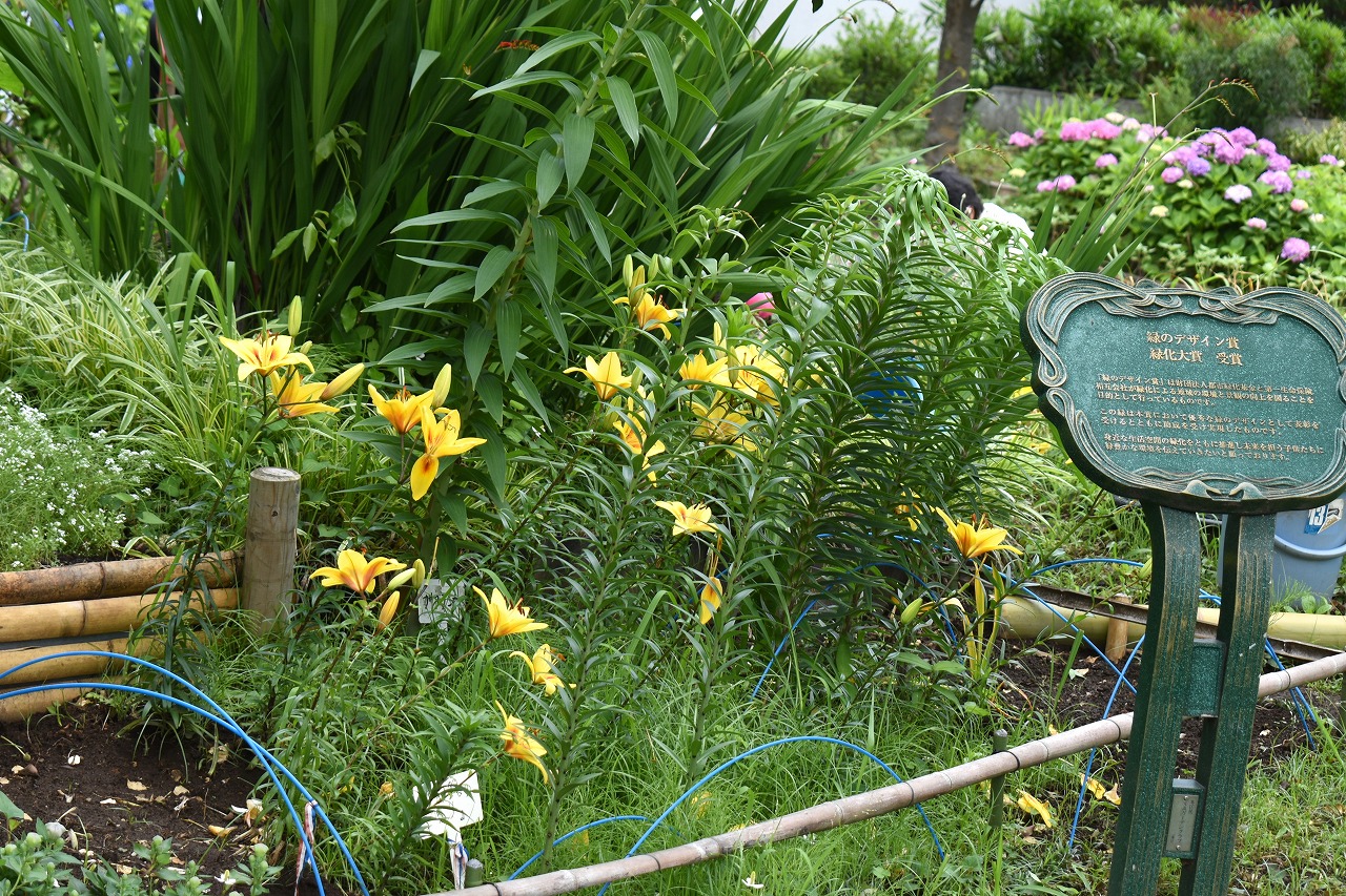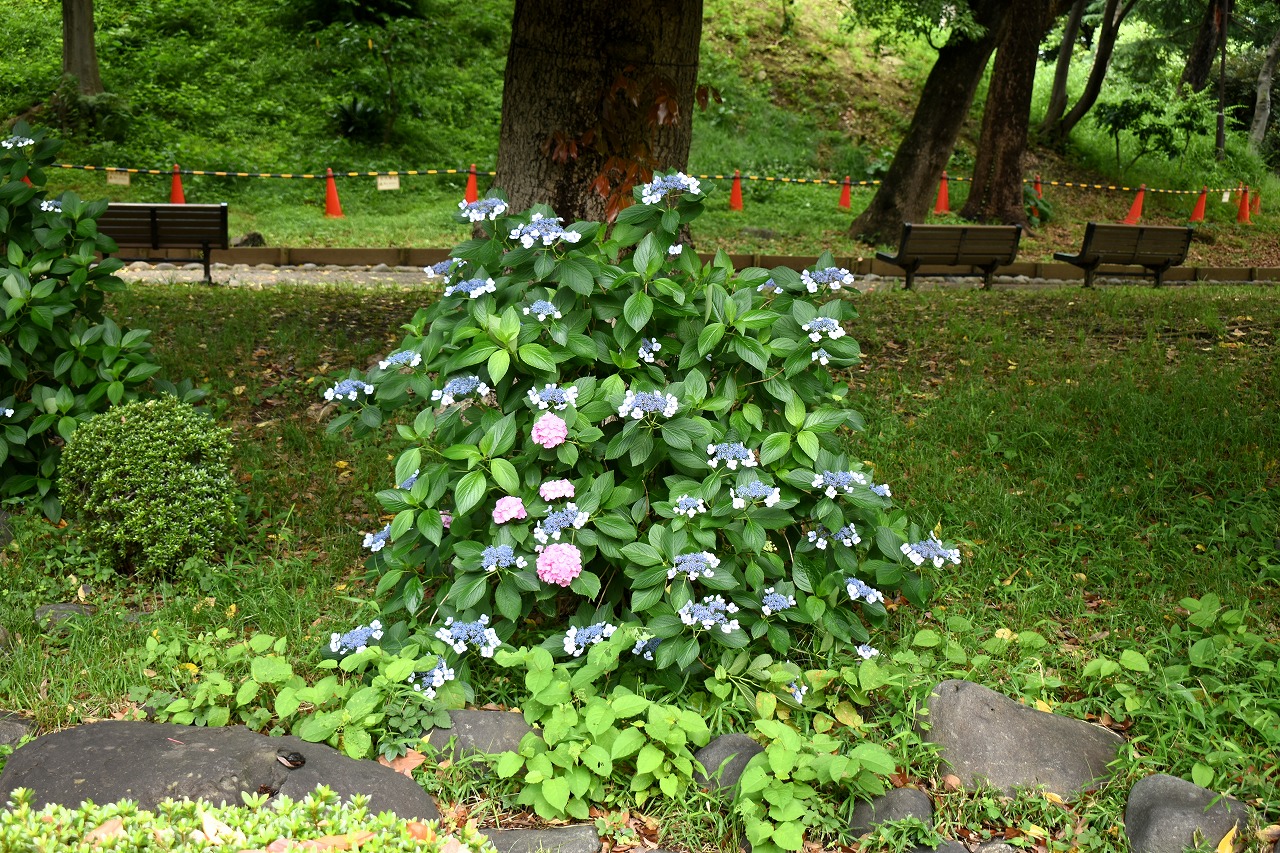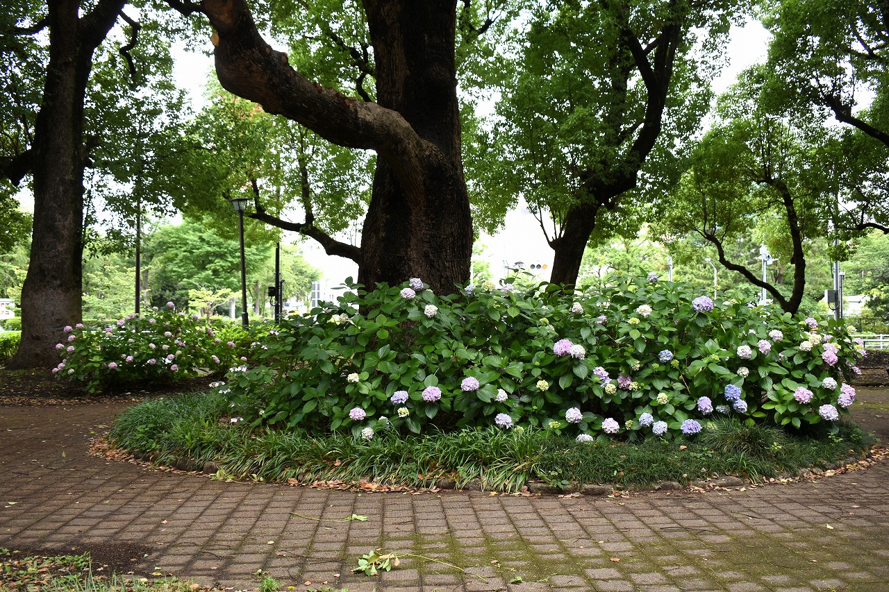 花がたくさん咲いていました。萩やノカンゾウも咲き出していました。芝公園にはアジサイが見頃でした。区役所の前には大きなアジサイ