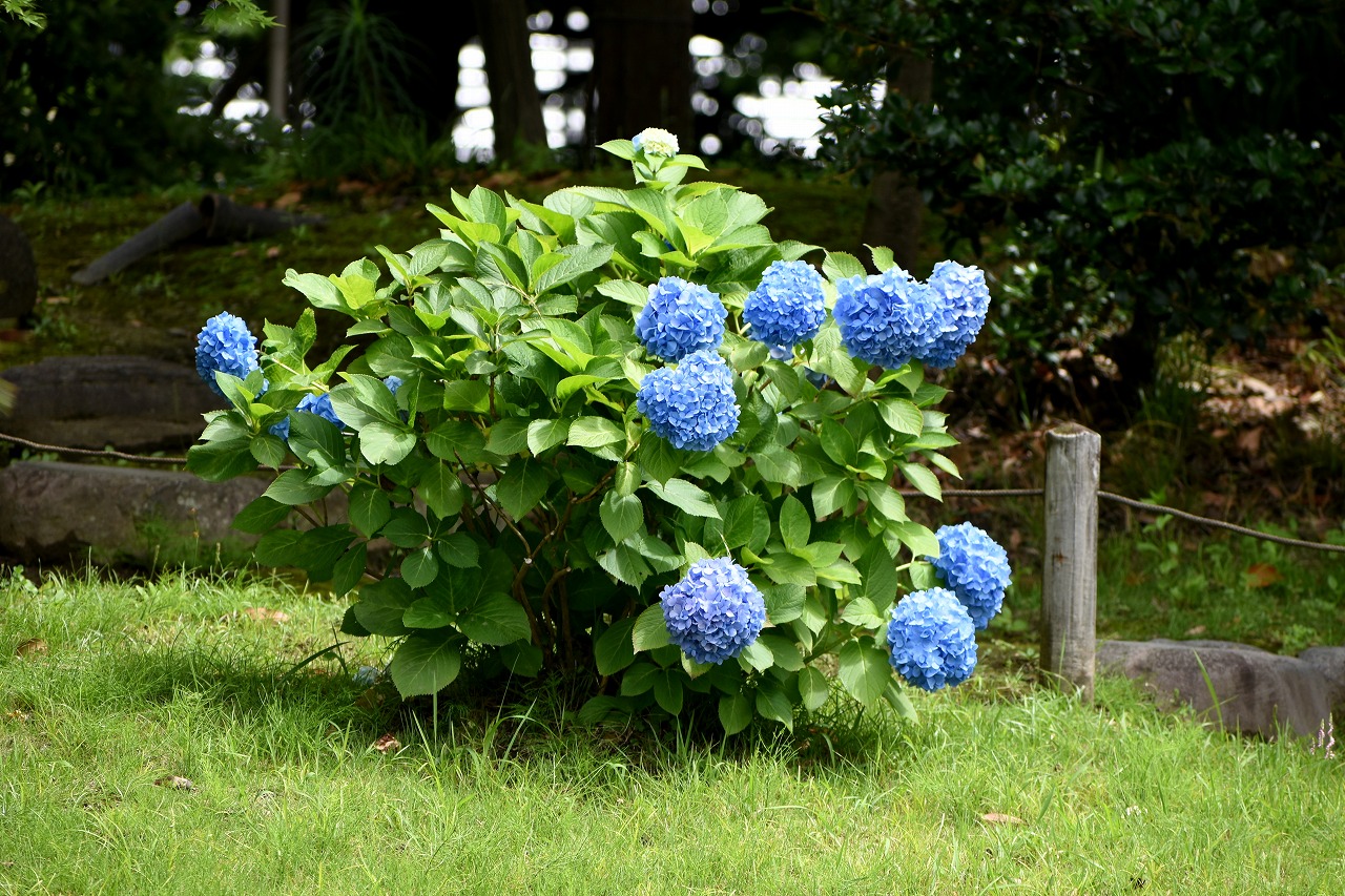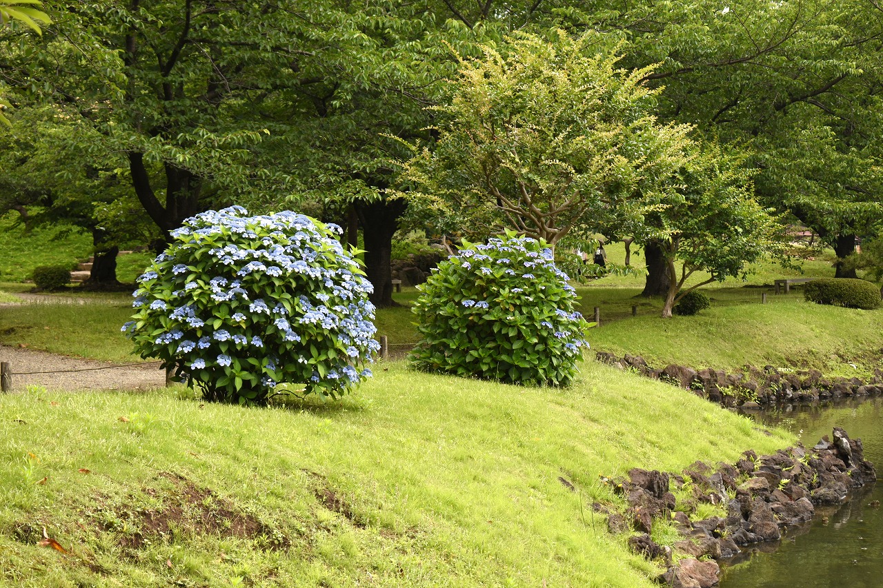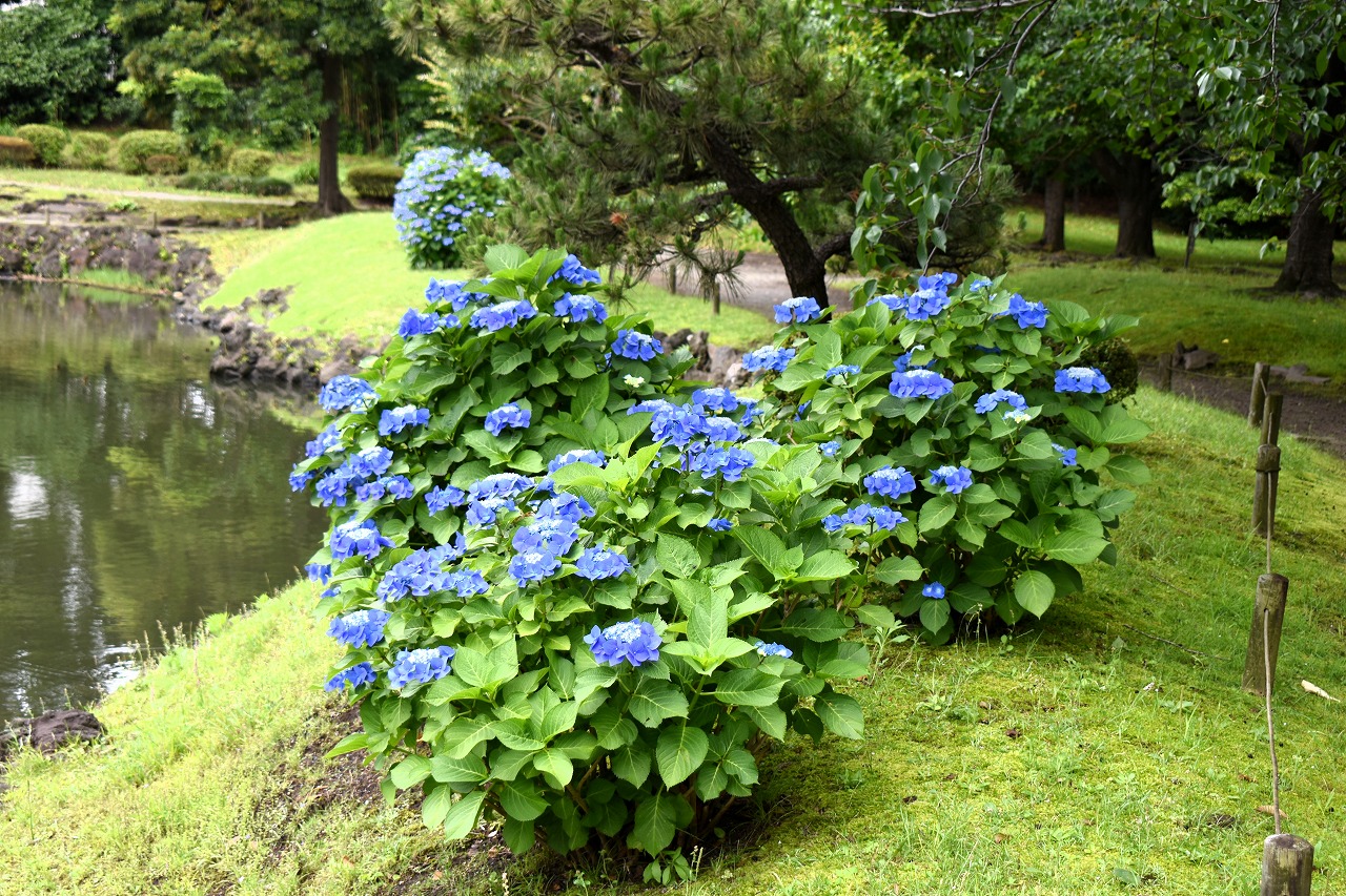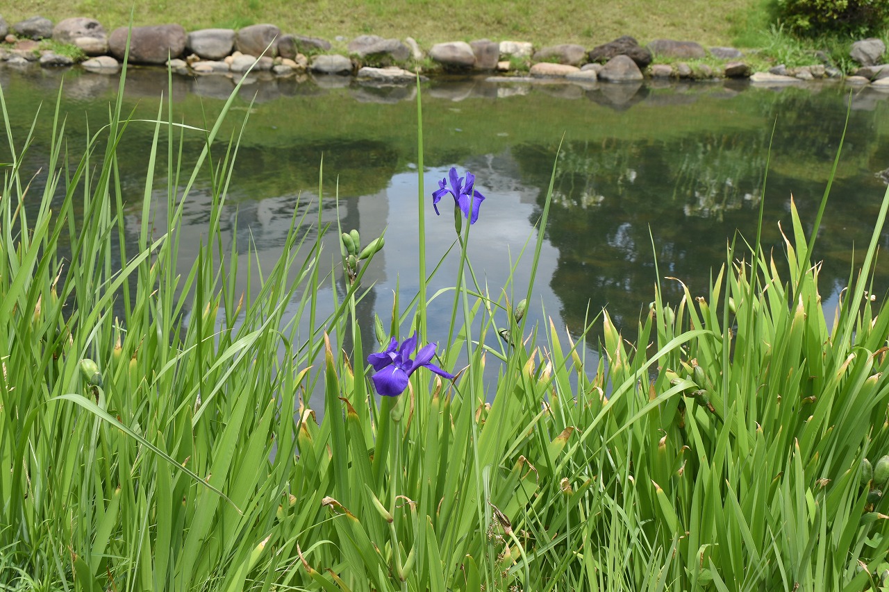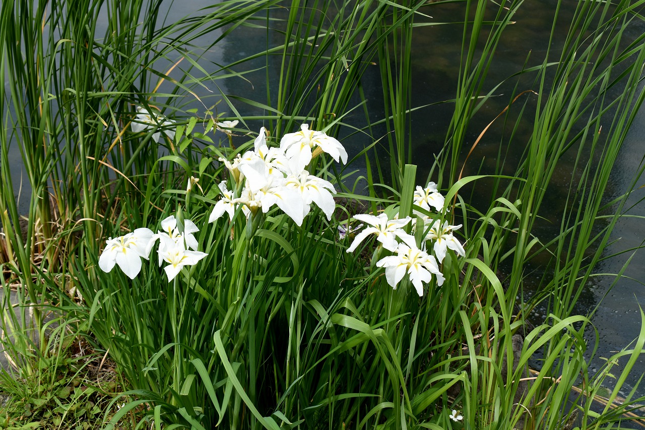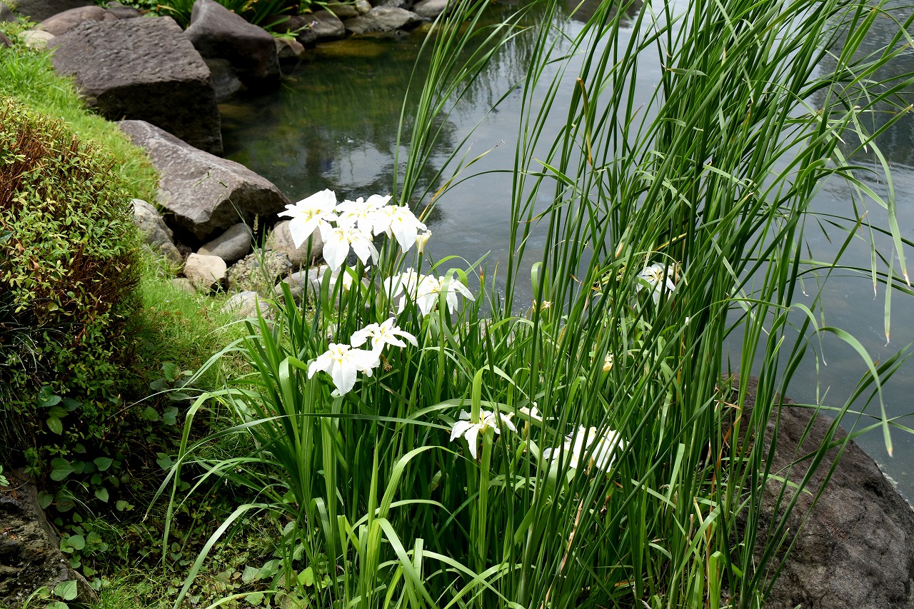 インドハマユウや花菖蒲の花が咲いていました。庭園内にはあちこちにアジサイの花が咲いて綺麗でした。ピンク色や黄色い小さな