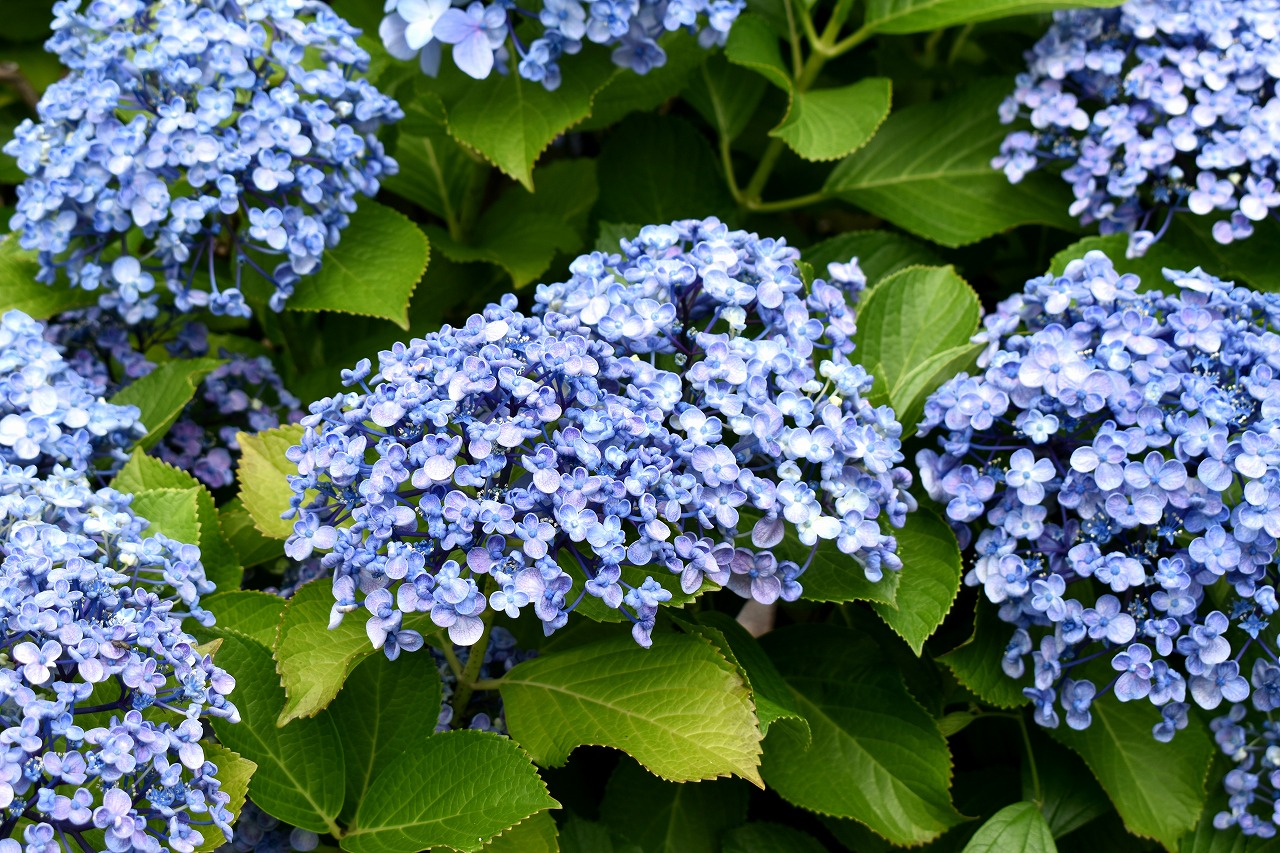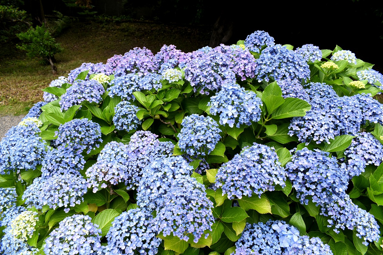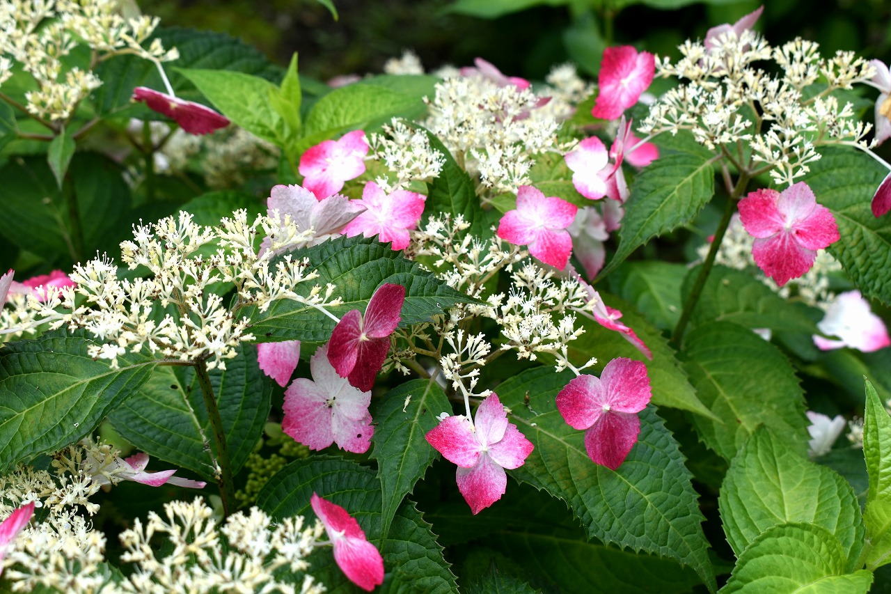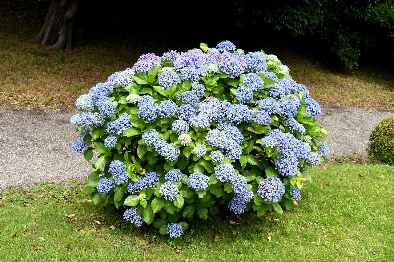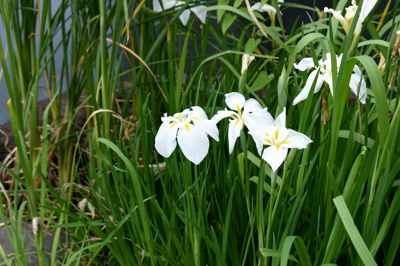 インドハマユウや花菖蒲の花が咲いていました。庭園内にはあちこちにアジサイの花が咲いて綺麗でした。ピンク色や黄色い小さな