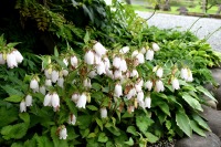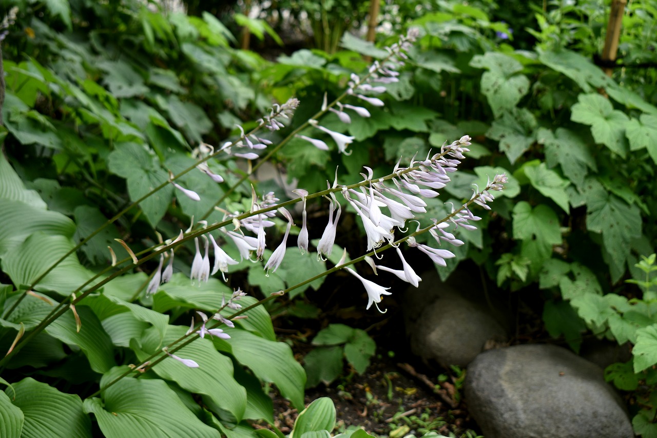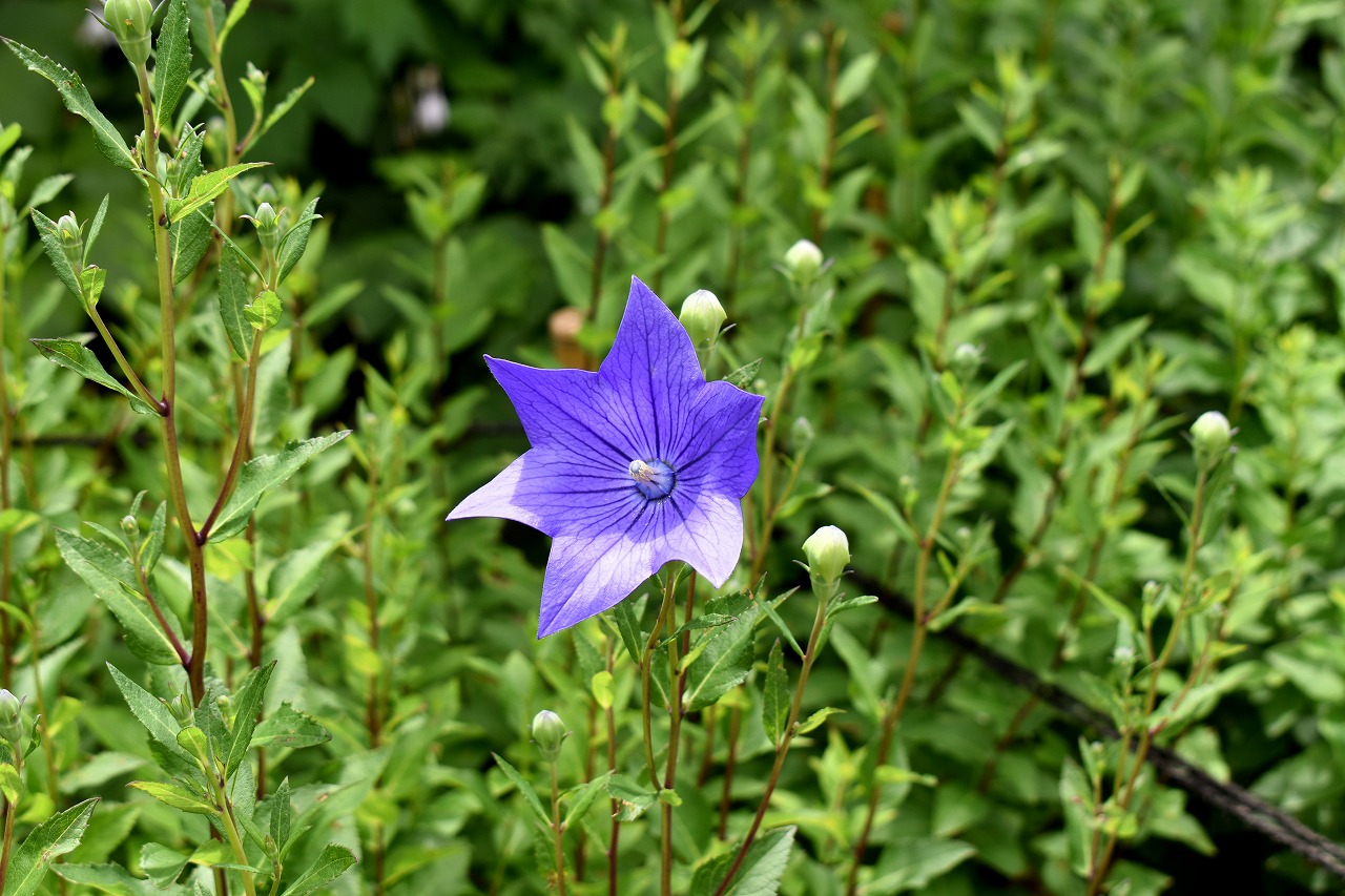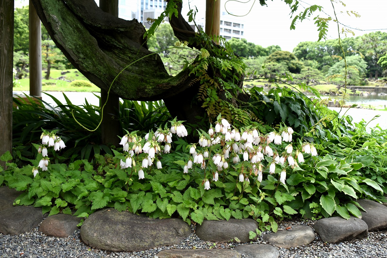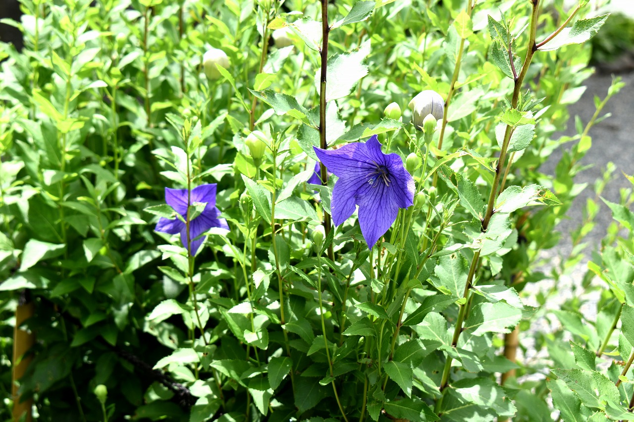 桔梗やホタルブクロの花が咲いていました。ホタルブクロは古い木の根元にたくさん咲いていて風情がありました。池のまわりには