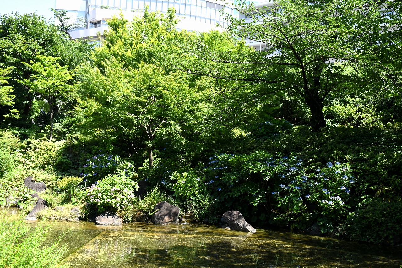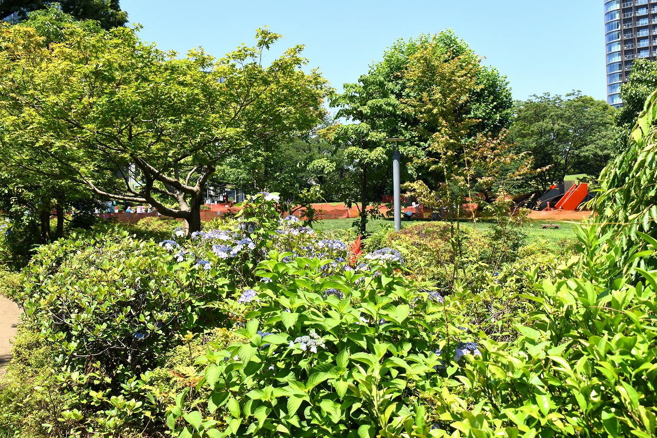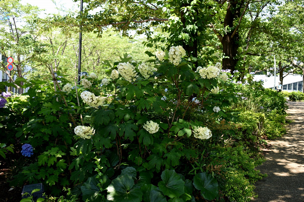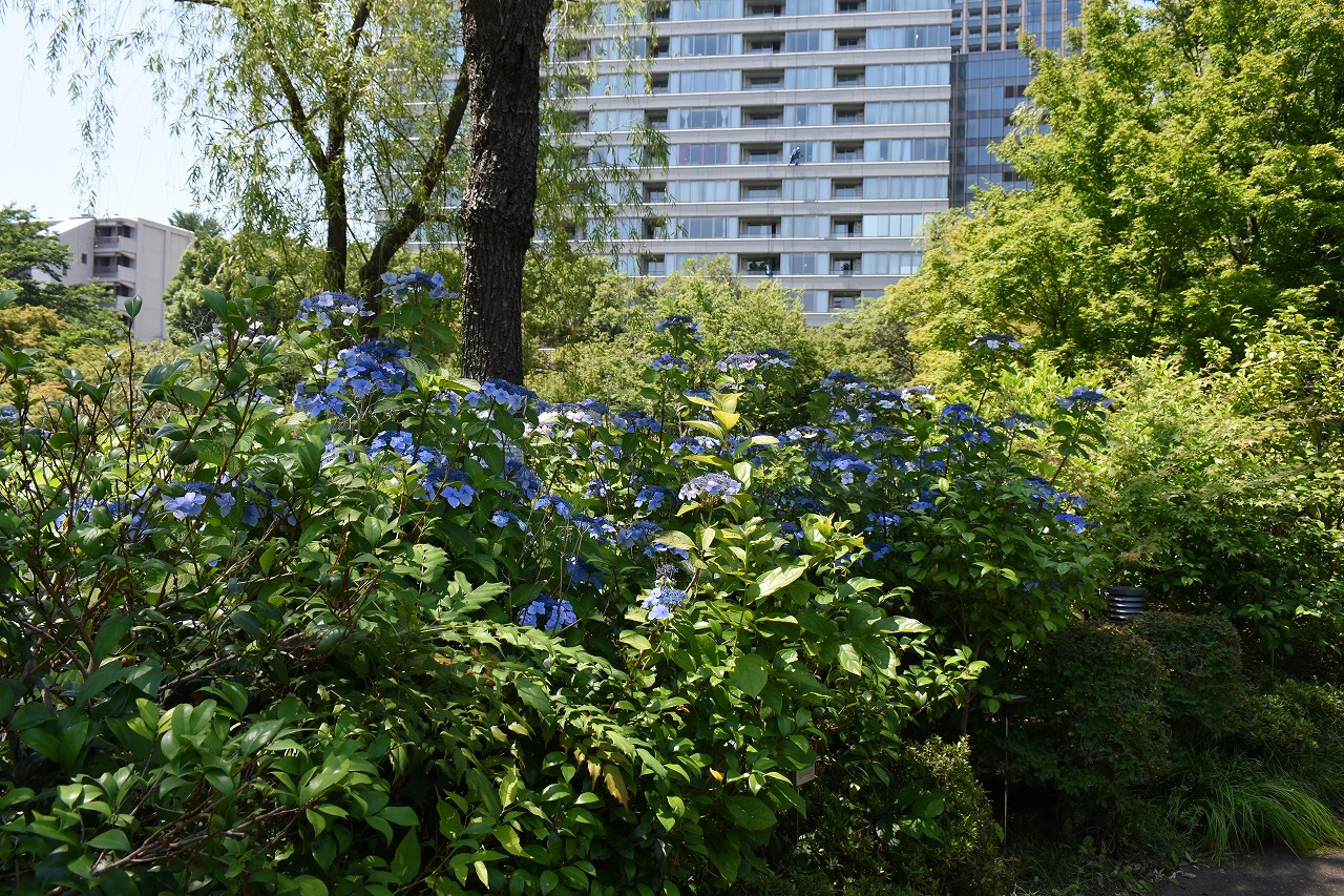 「一言」桧町公園に行ったらビョウヤナギや花菖蒲の花が咲いていました。花菖蒲の花は少なくなっている感じがしました。 アジサイやガクアジサイはたくさん咲いていて綺麗でした。子供の水遊び場の横のヤマボウシは真っ白になっていました。 毛利庭園にもアジサイが咲いていました。サントリーホールには花はありませんでしたが大きな木が青々としていました。