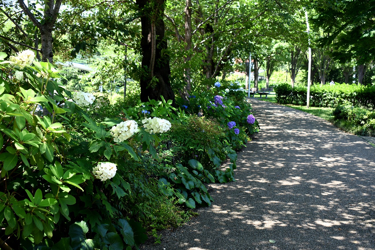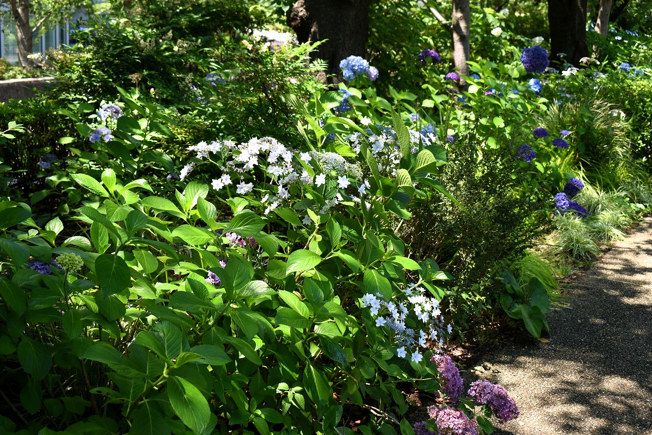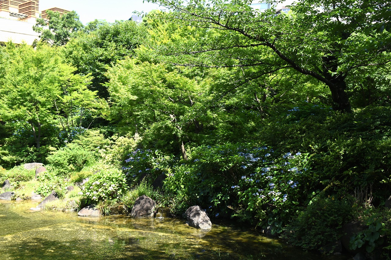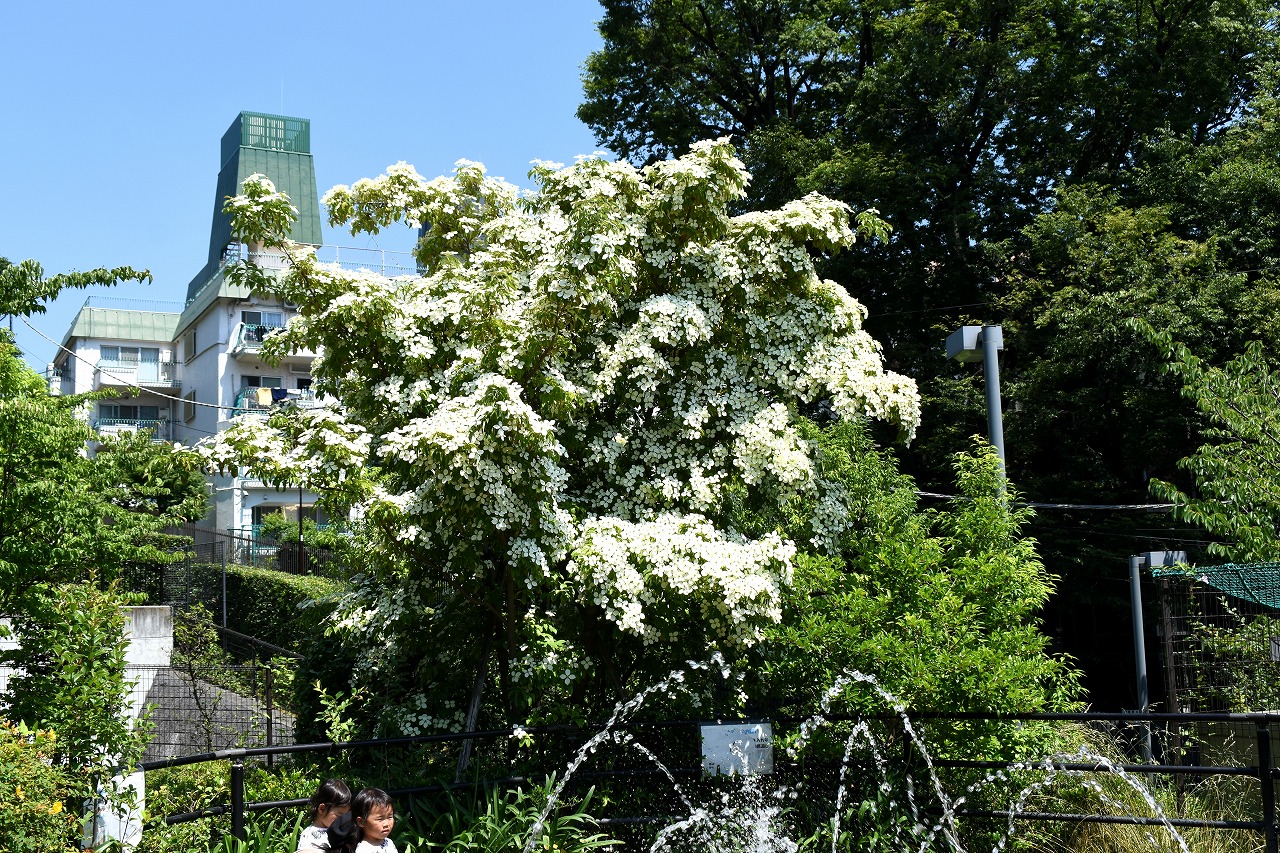 「一言」桧町公園に行ったらビョウヤナギや花菖蒲の花が咲いていました。花菖蒲の花は少なくなっている感じがしました。 アジサイやガクアジサイはたくさん咲いていて綺麗でした。子供の水遊び場の横のヤマボウシは真っ白になっていました。 毛利庭園にもアジサイが咲いていました。サントリーホールには花はありませんでしたが大きな木が青々としていました。