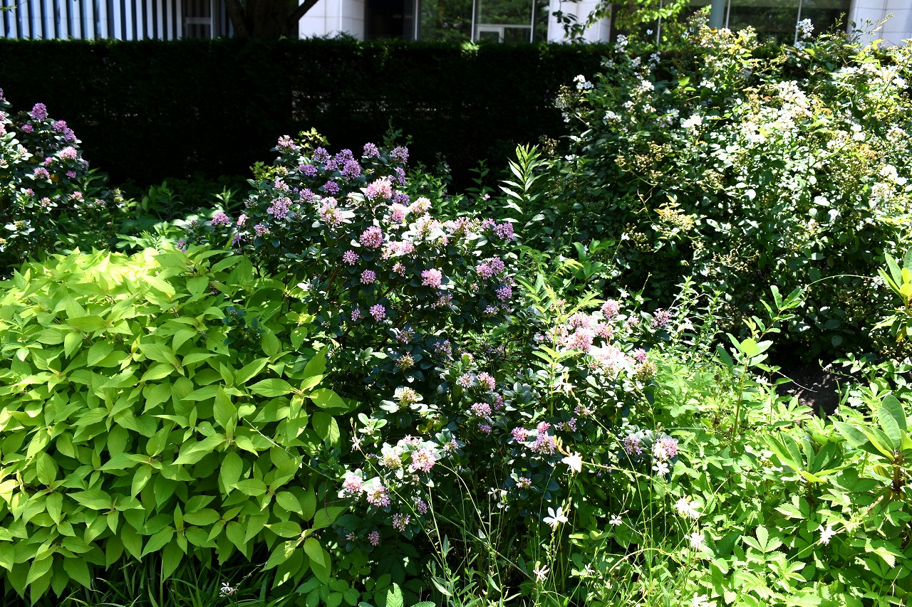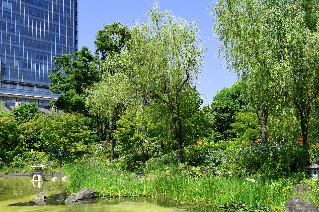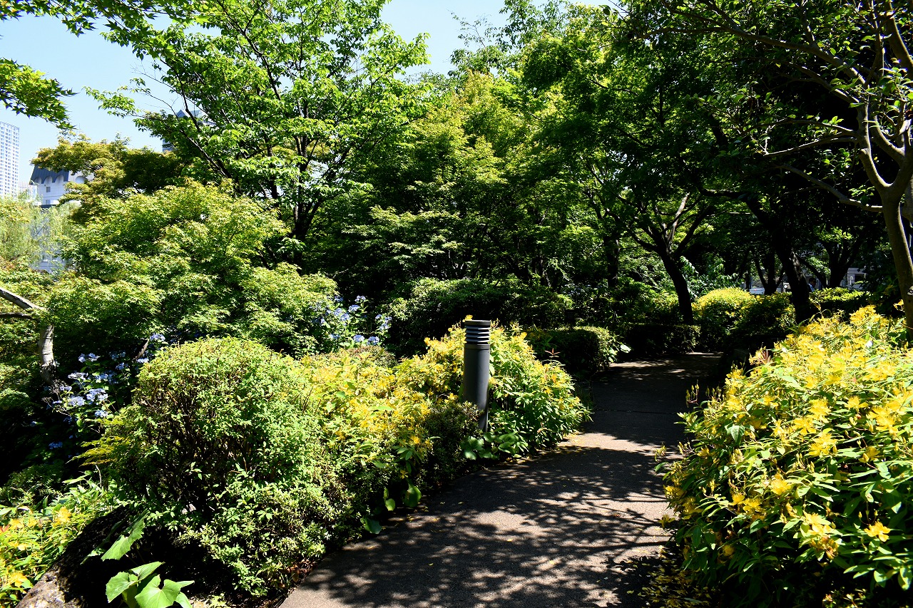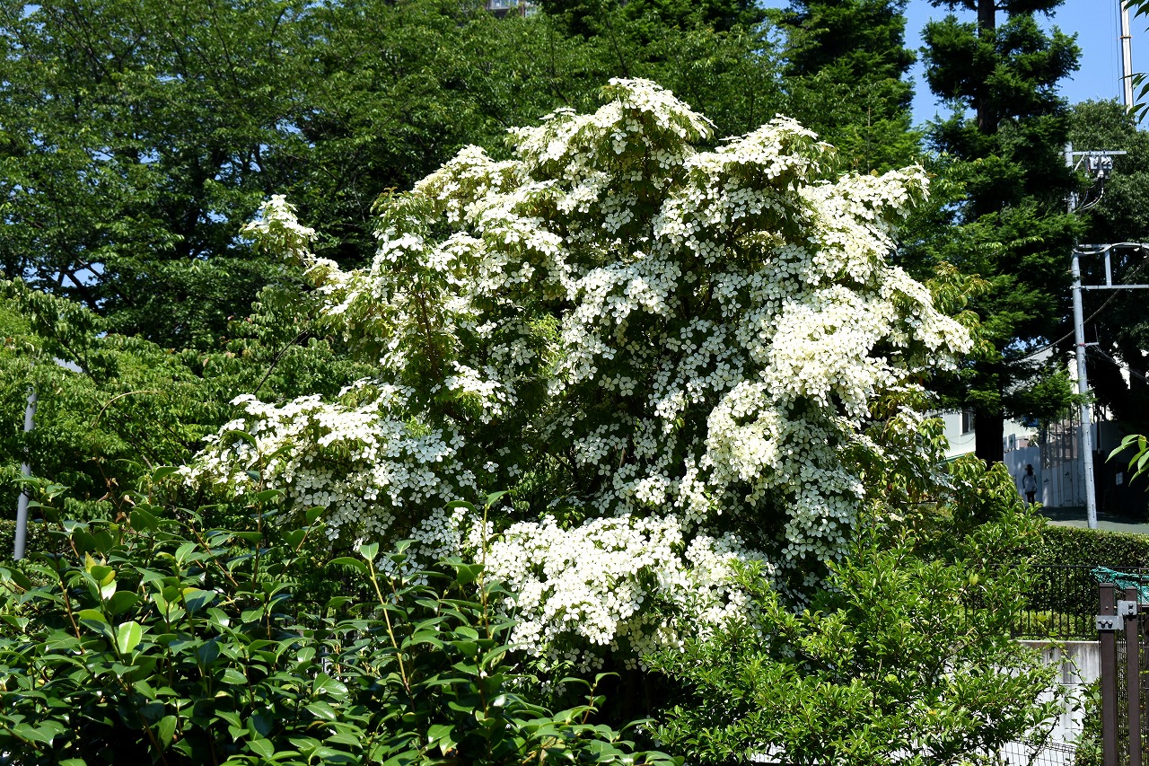 「一言」桧町公園に行ったらビョウヤナギや花菖蒲の花が咲いていました。花菖蒲の花は少なくなっている感じがしました。 アジサイやガクアジサイはたくさん咲いていて綺麗でした。子供の水遊び場の横のヤマボウシは真っ白になっていました。 毛利庭園にもアジサイが咲いていました。サントリーホールには花はありませんでしたが大きな木が青々としていました。