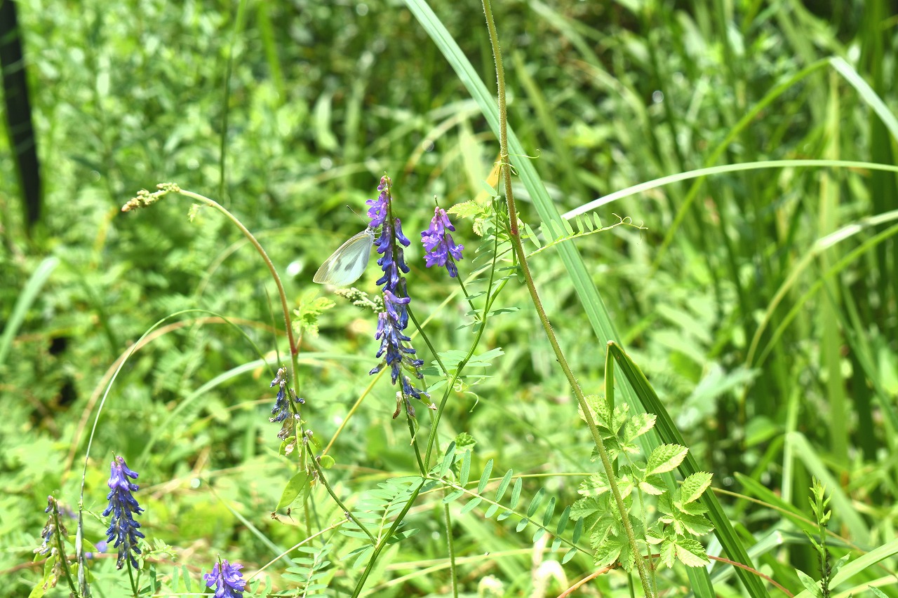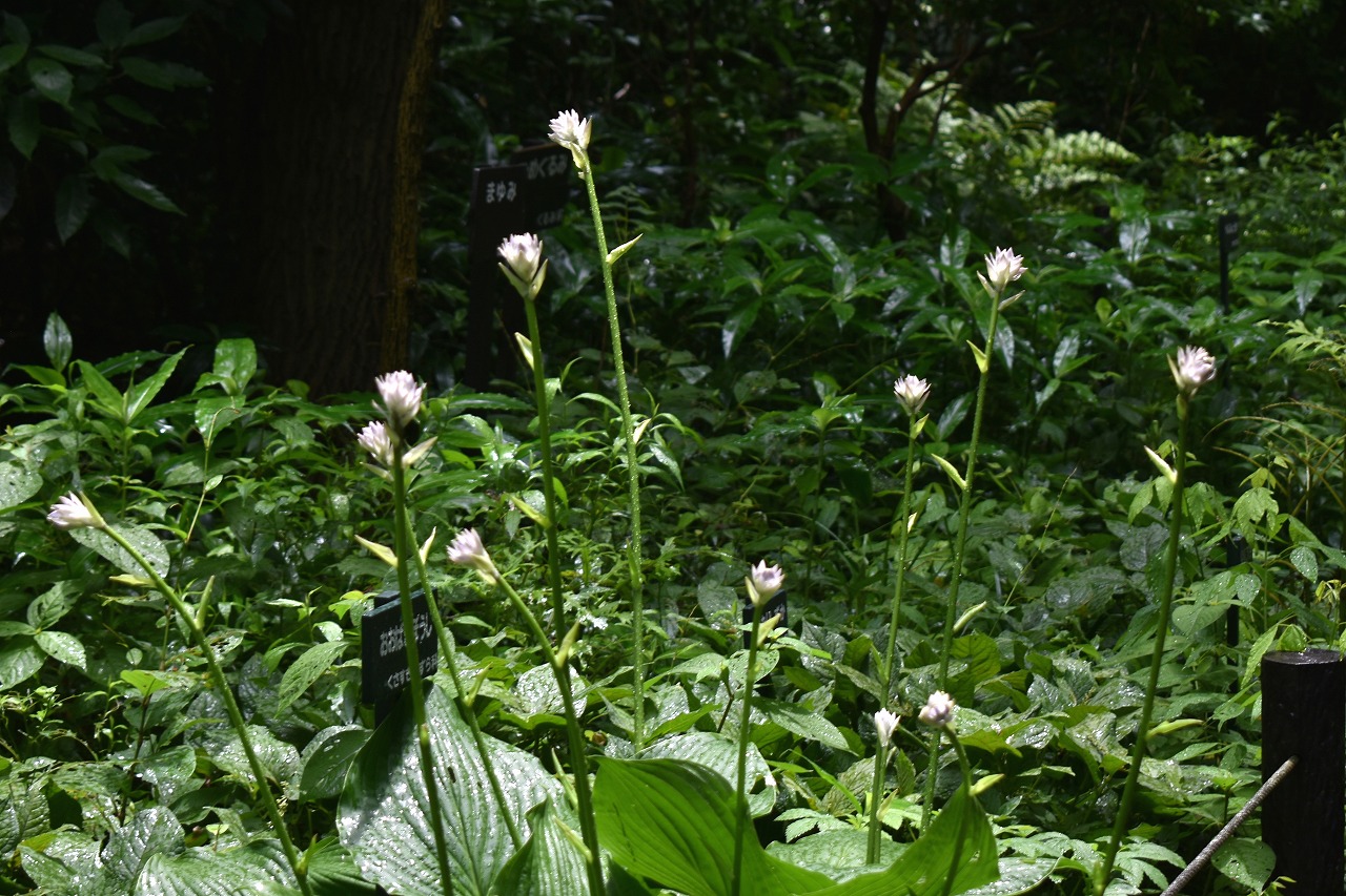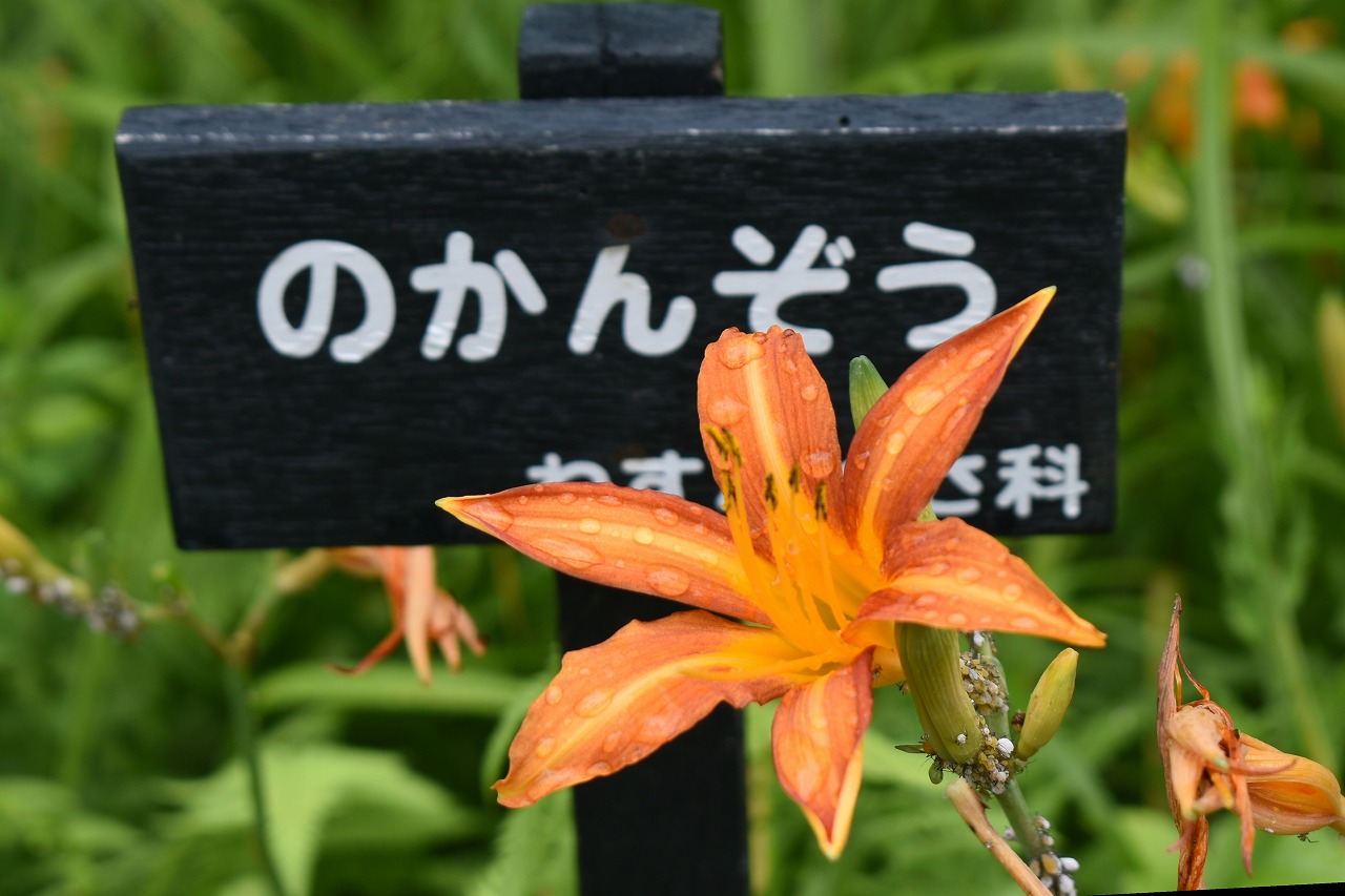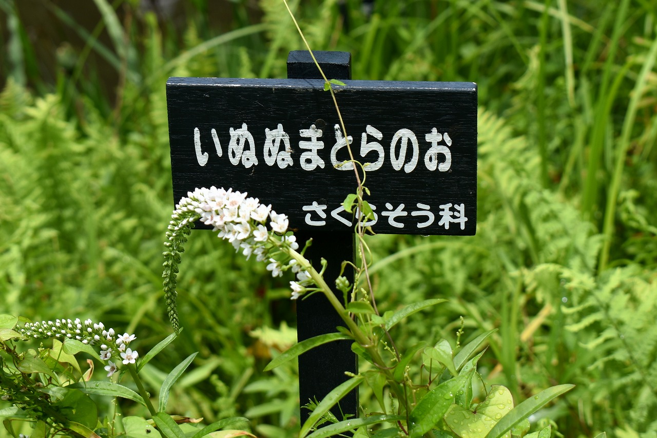 「一言」自然教育園にはノカンゾウ、ヤブカンゾウなどがたくさん咲いています。ヤブレガサやオオハギギボウシ、イヌヌマトラノオ、 トモエソウ、クサフジなど色々な花が咲いています。池には黄色い小さなアサザが咲いています。