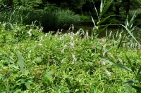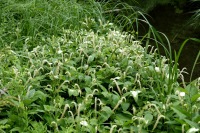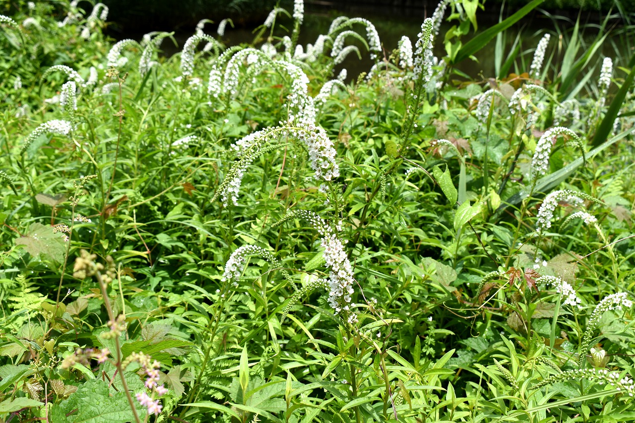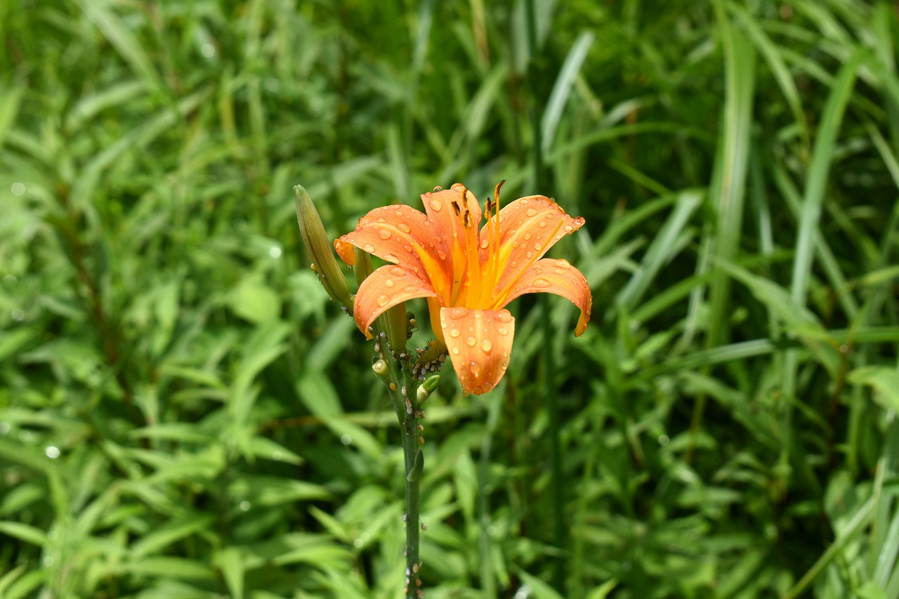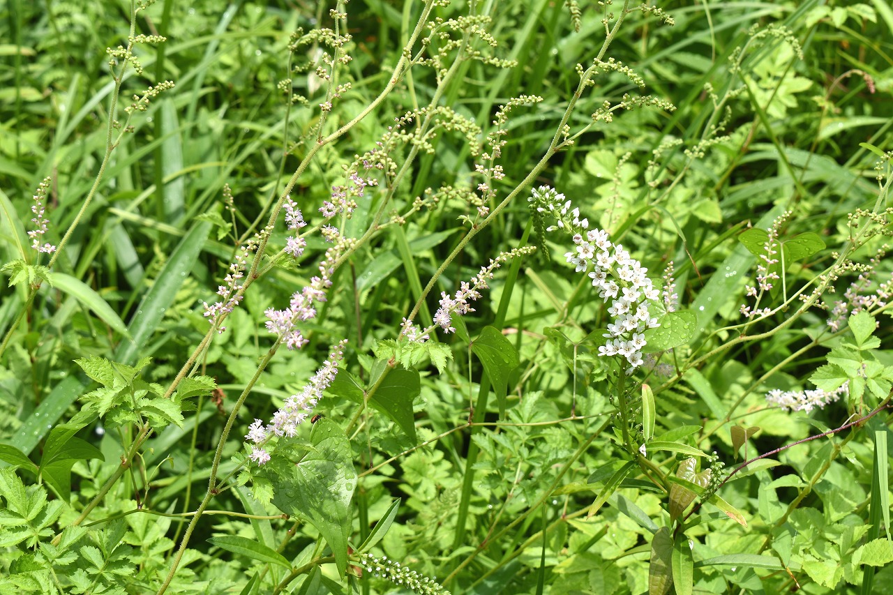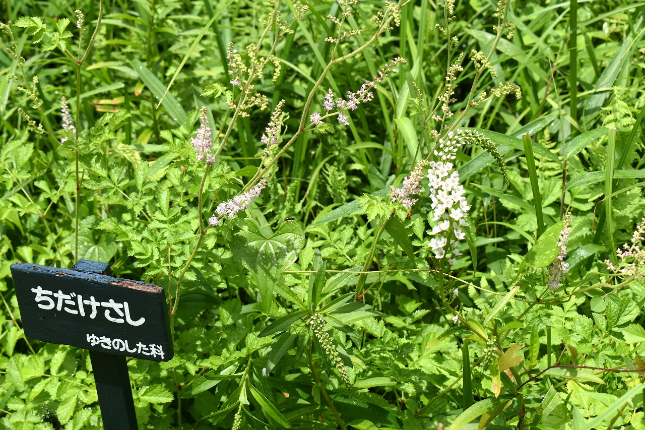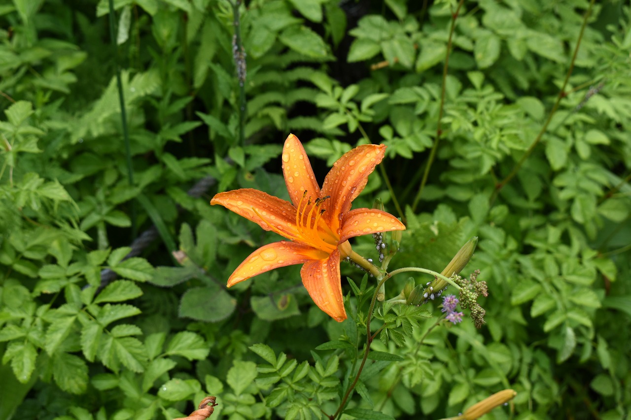 「一言」自然教育園にはノカンゾウ、ヤブカンゾウなどがたくさん咲いています。ヤブレガサやオオハギギボウシ、イヌヌマトラノオ、 トモエソウ、クサフジなど色々な花が咲いています。池には黄色い小さなアサザが咲いています。