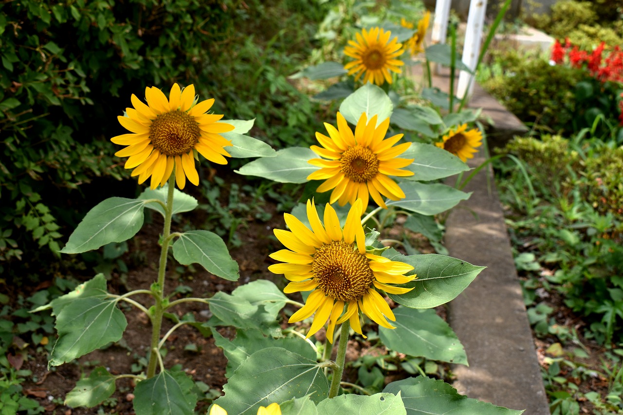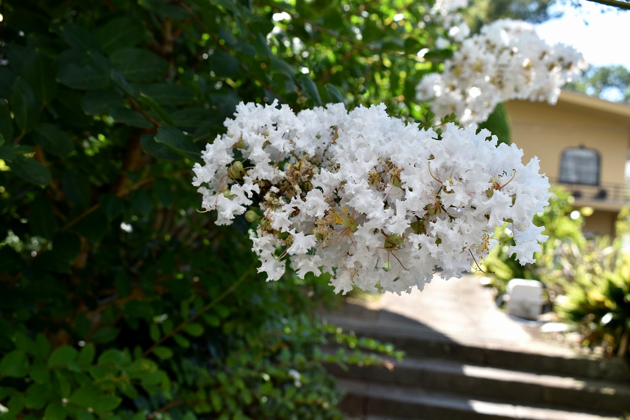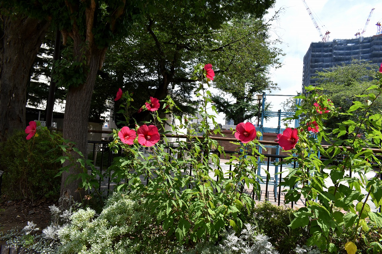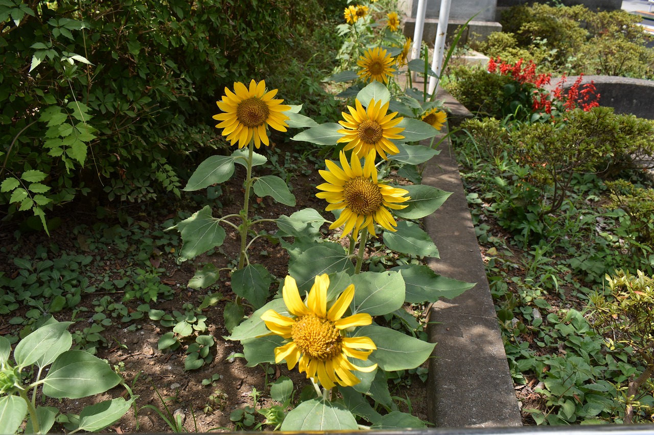 願海寺には蓮の花が咲いていました。白いサルスベリの花が見頃です。亀塚公園にはハイビスカスやヒマワリの花が咲いています。