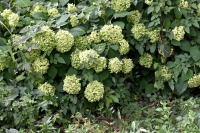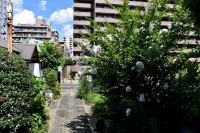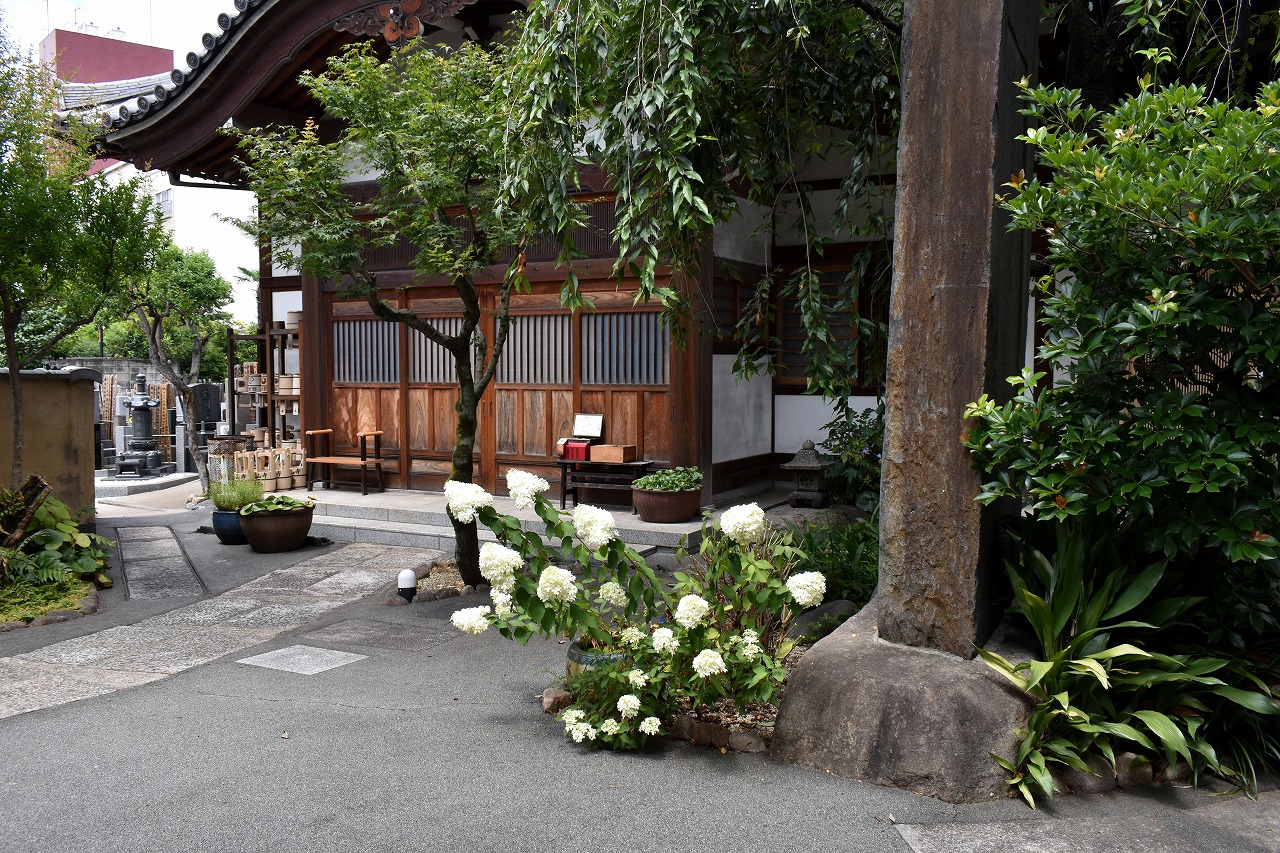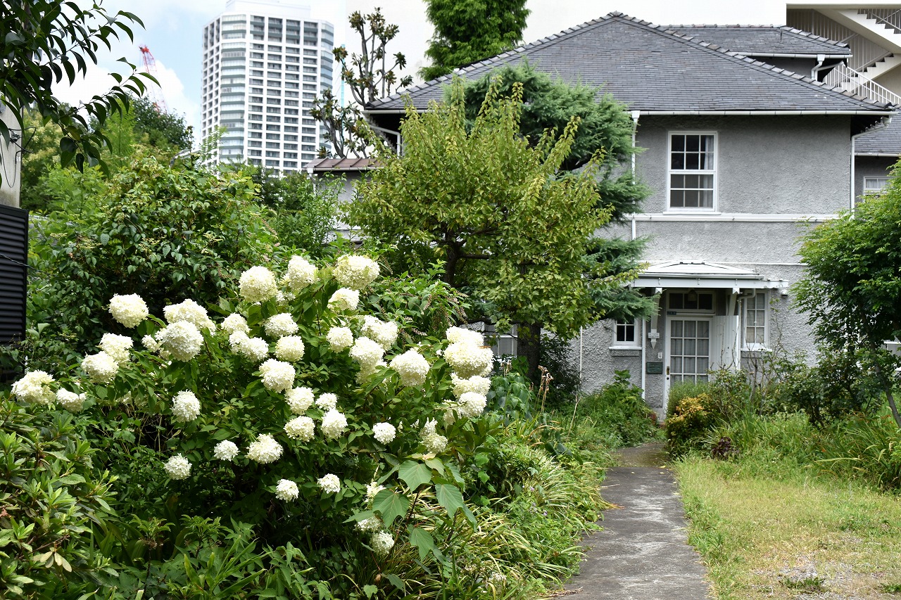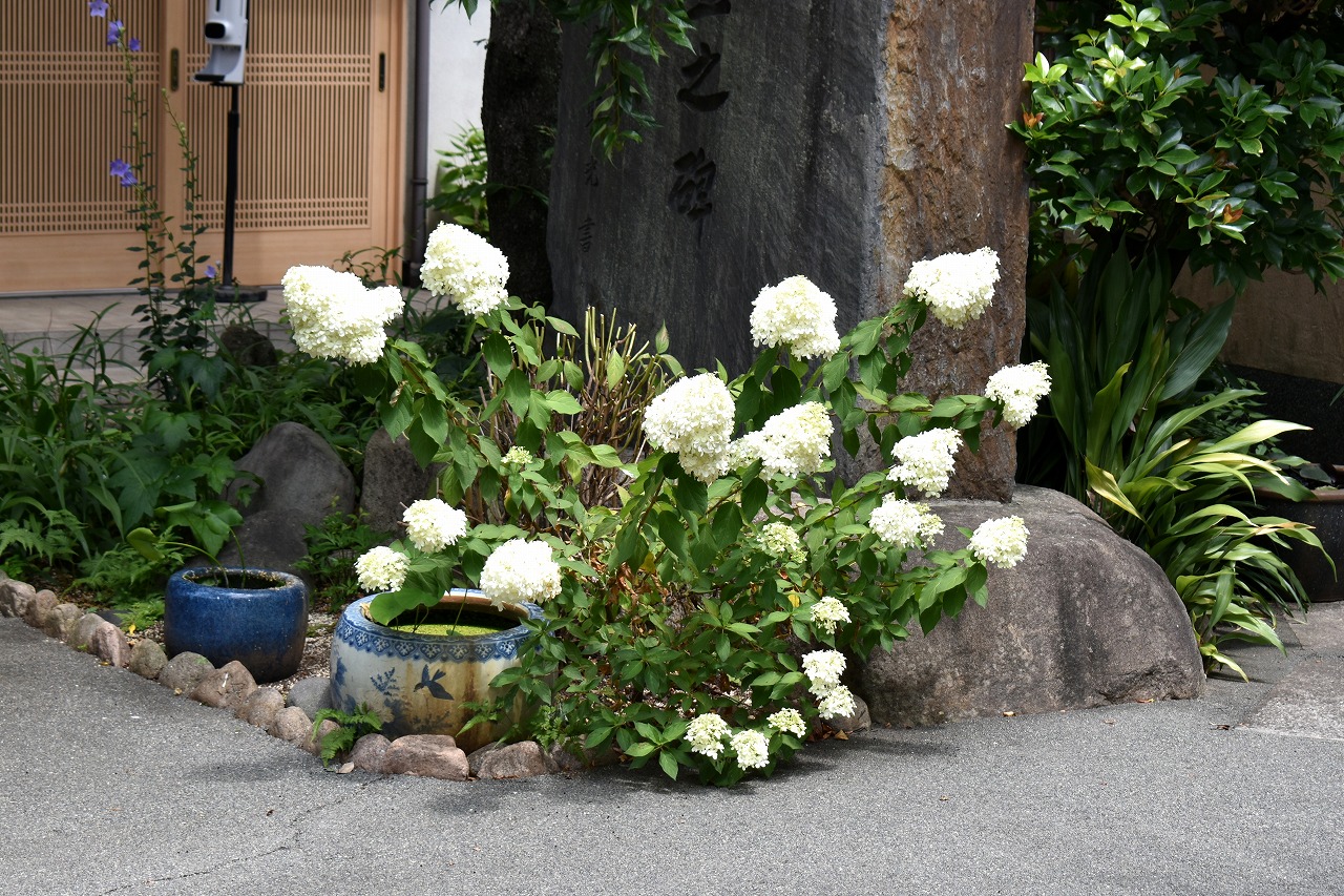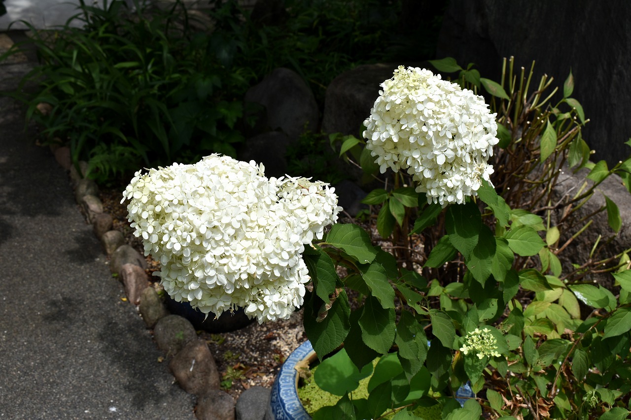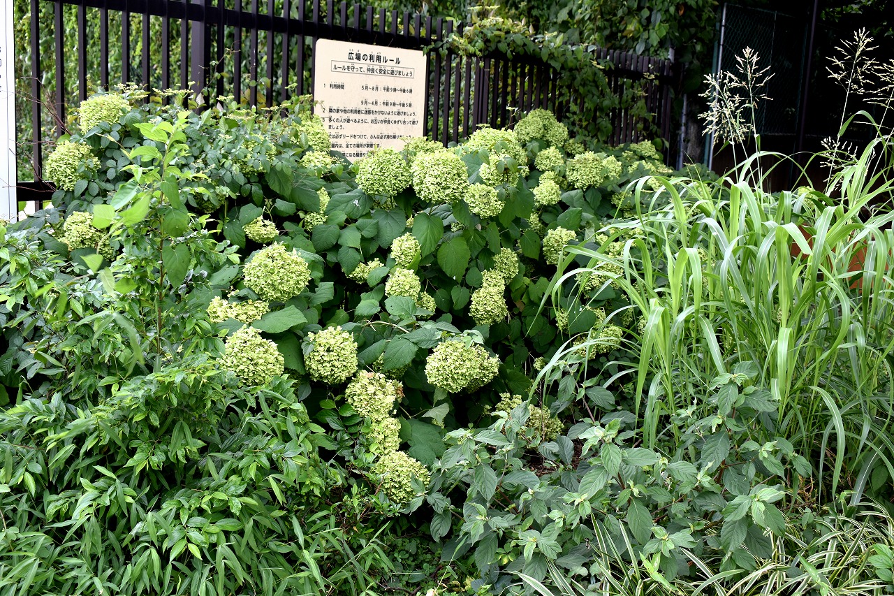 三田台児童遊園のアジサイの花は緑色になっています。キリスト友会や正山寺のアジサイは今も白い花が満開です。正山寺には桔梗