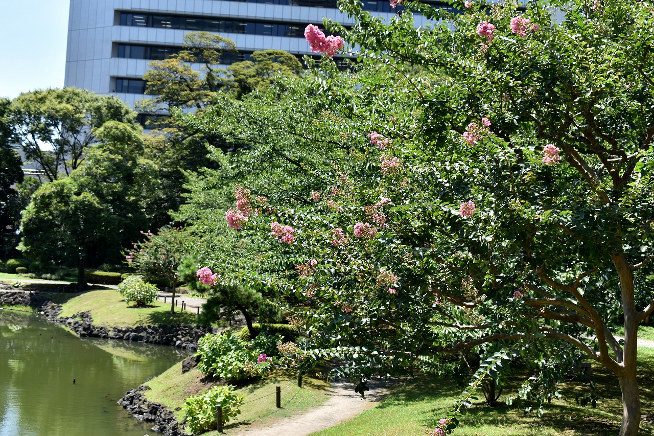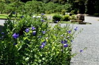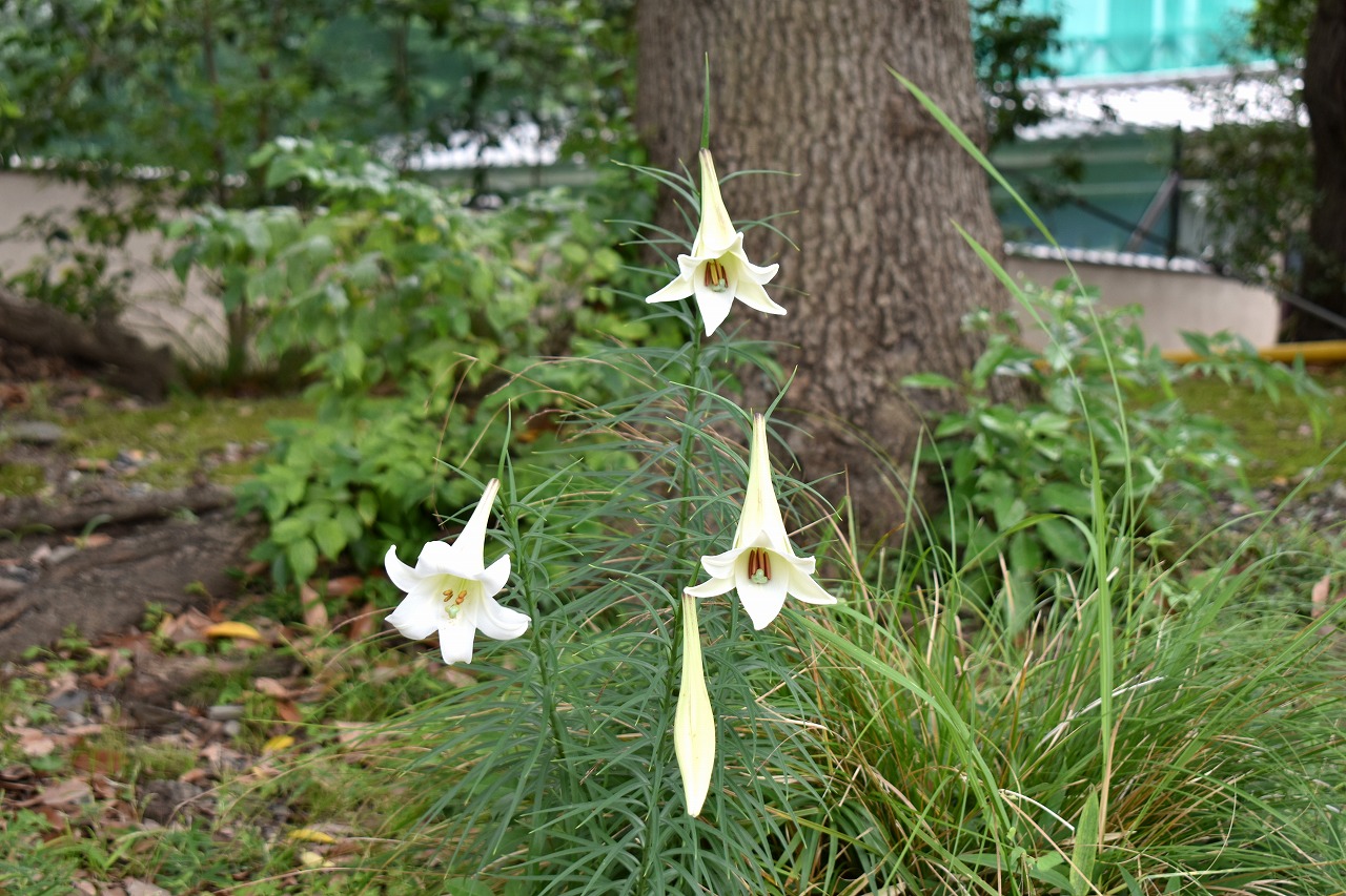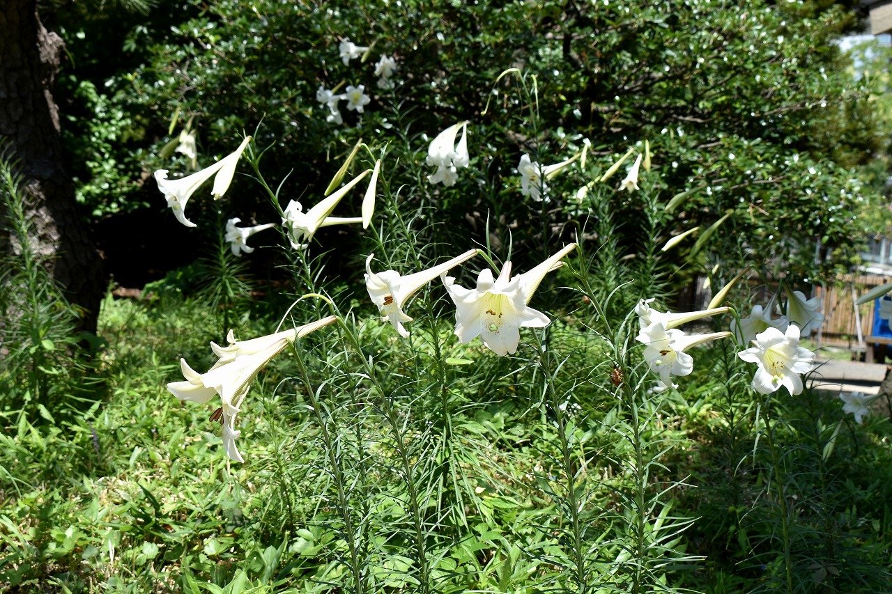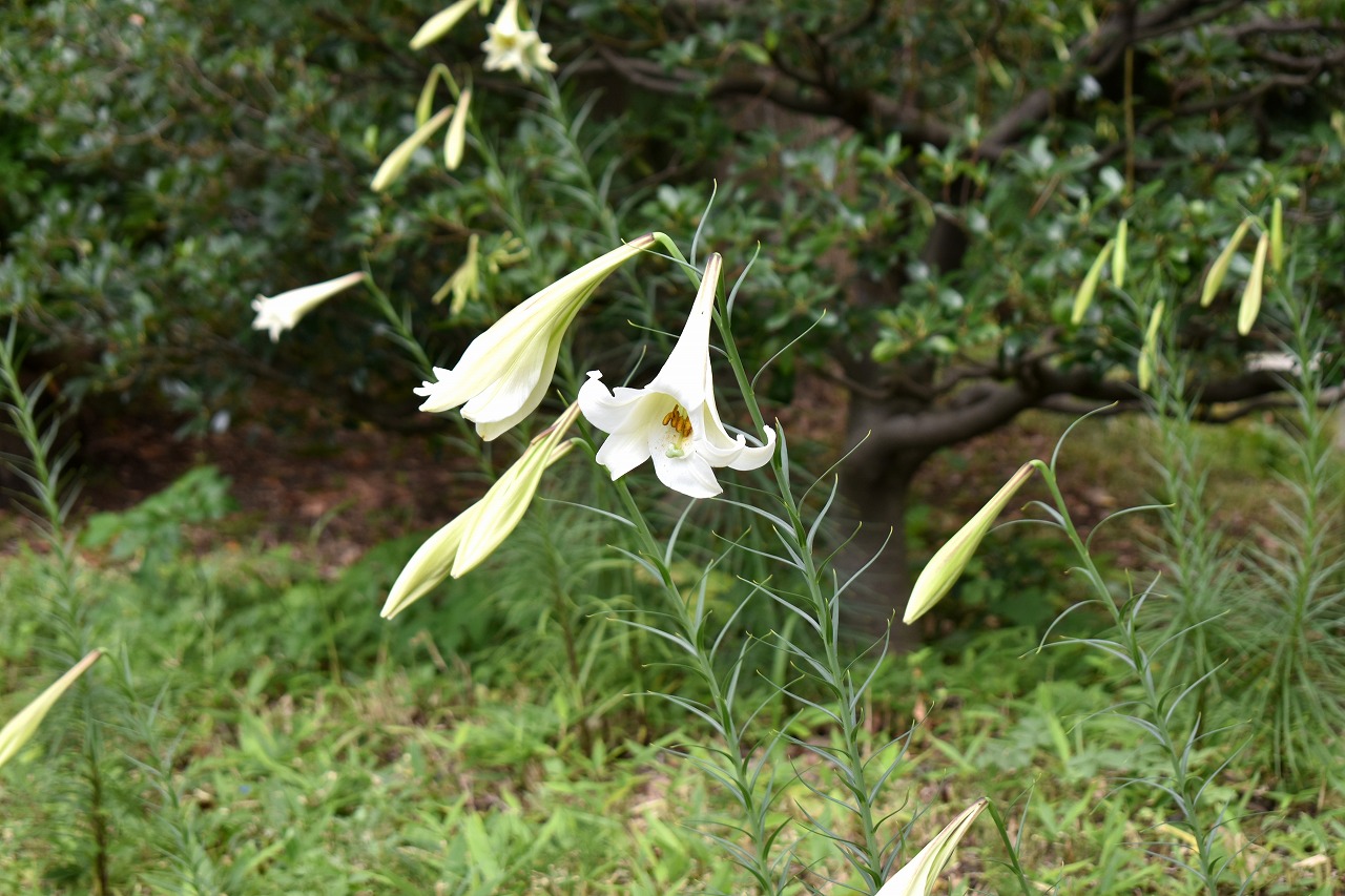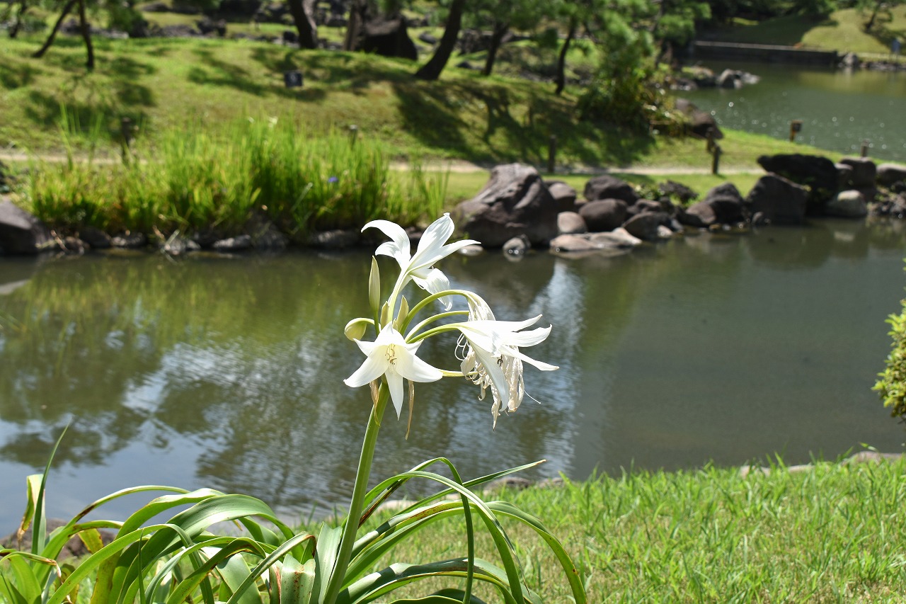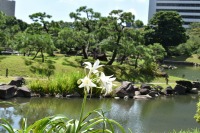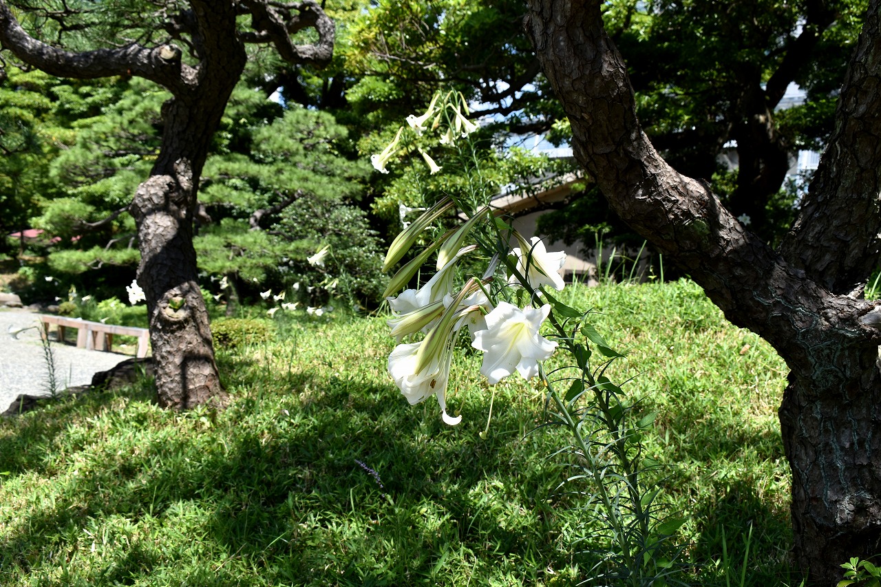 「一言」非常に暑い夏が来ました。芝公園にはヒマワリがたくさん咲いています。旧芝離宮にはタカサゴユリが咲き出しました。 暑い時期ですが、7月31日には桔梗の花が増えていました。時期外れに咲いた藤の花が房を伸ばしていました。しかし、 8月4日には藤の花は散っていました。インドハマユウが再び咲いています。タカサゴユリの白い花は増えて爽やかです。 サルスベリも咲き出したところです。キツネノカミソリの花があちこちに咲いています。