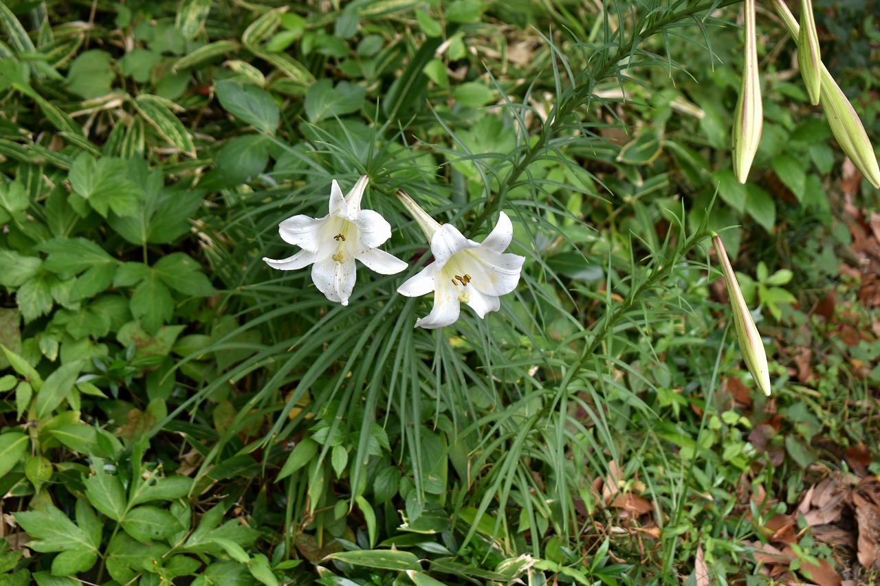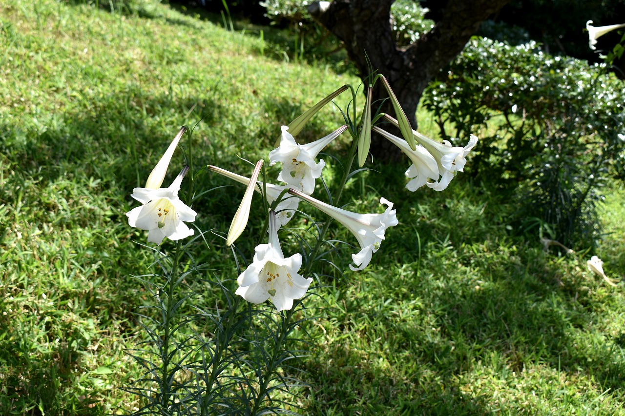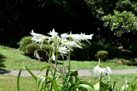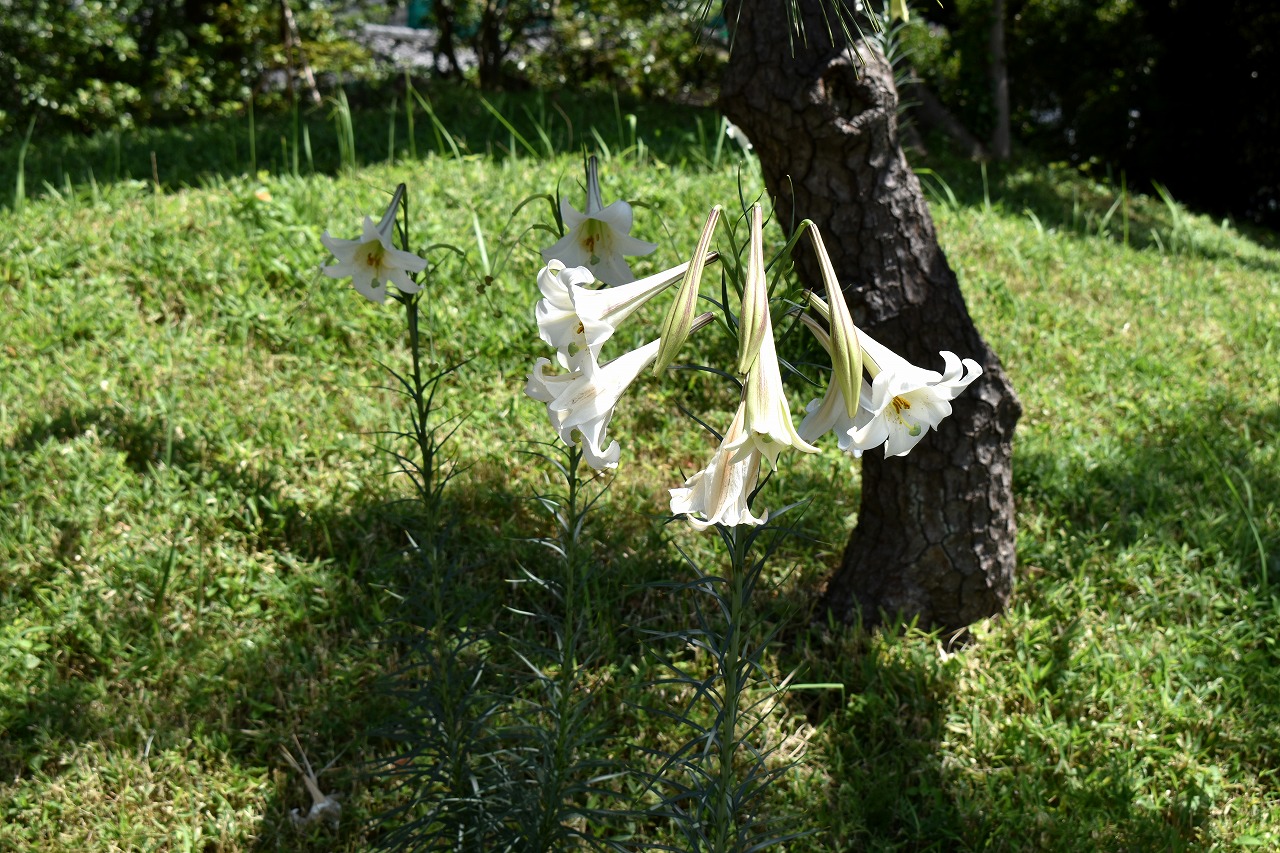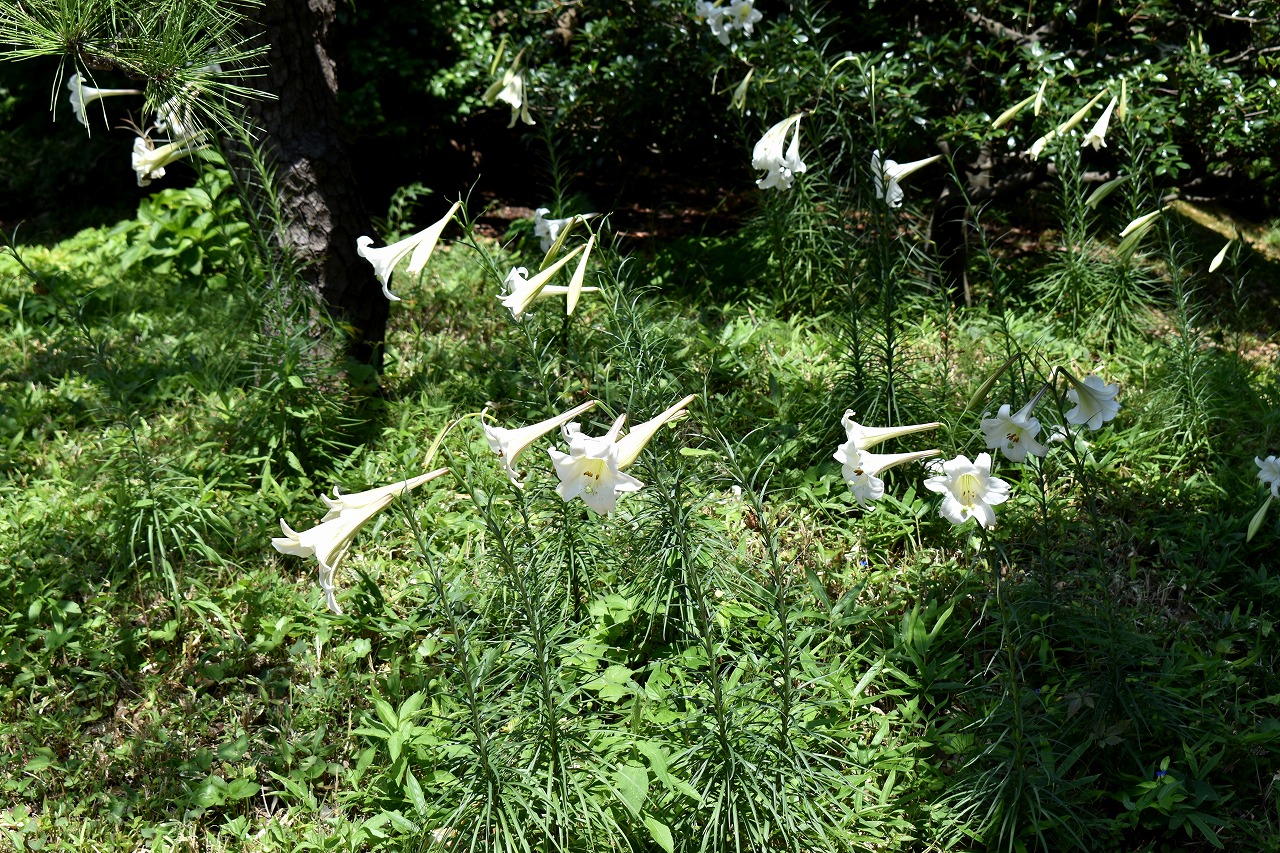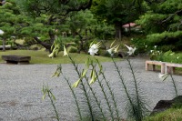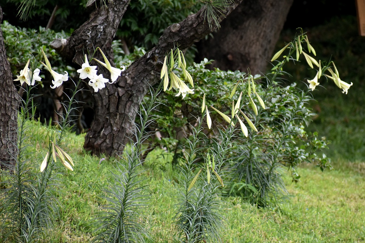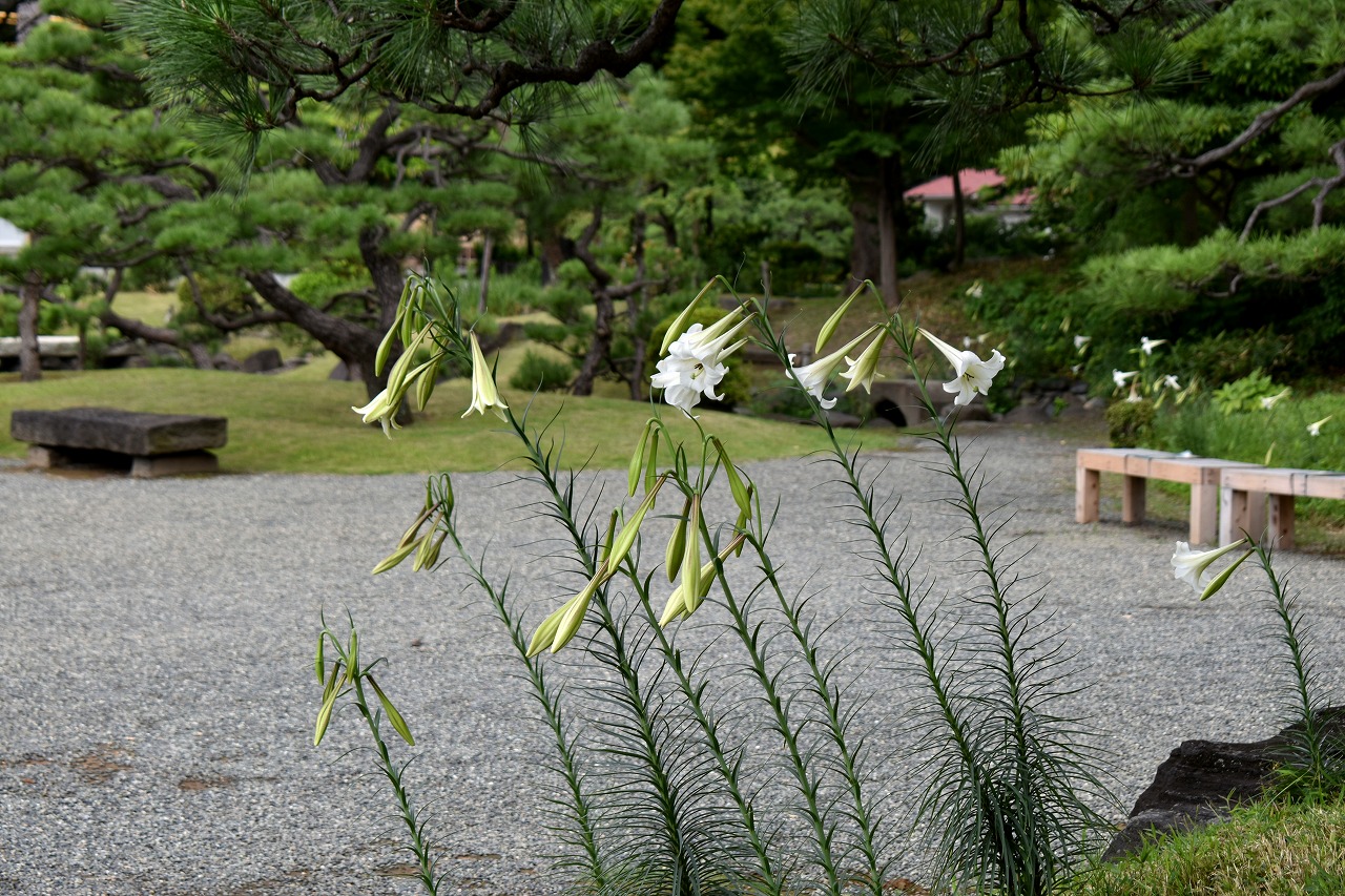 「一言」非常に暑い夏が来ました。芝公園にはヒマワリがたくさん咲いています。旧芝離宮にはタカサゴユリが咲き出しました。 暑い時期ですが、7月31日には桔梗の花が増えていました。時期外れに咲いた藤の花が房を伸ばしていました。しかし、 8月4日には藤の花は散っていました。インドハマユウが再び咲いています。タカサゴユリの白い花は増えて爽やかです。 サルスベリも咲き出したところです。キツネノカミソリの花があちこちに咲いています。