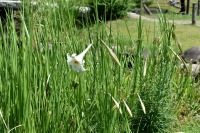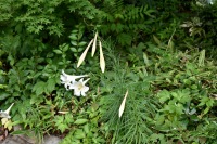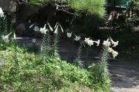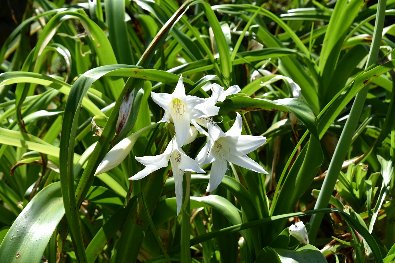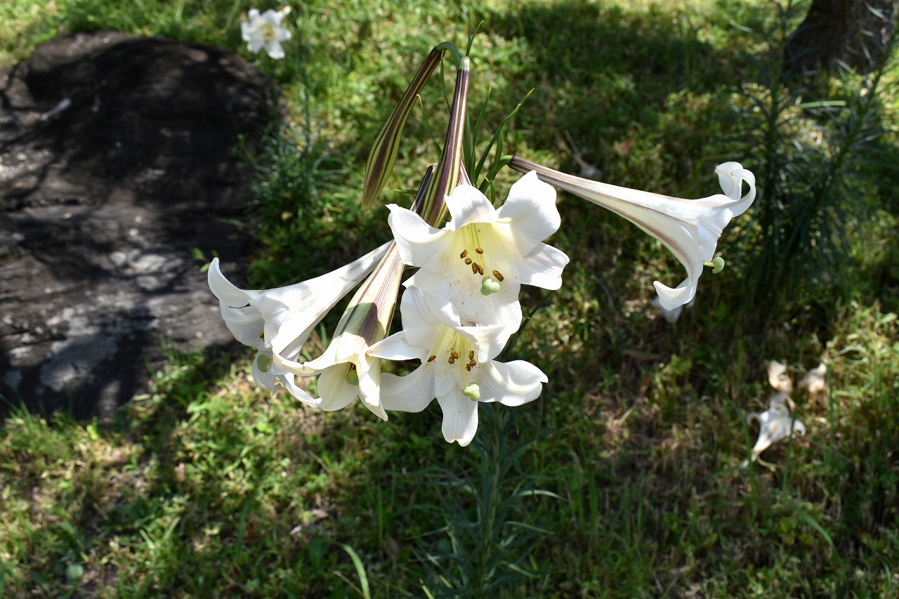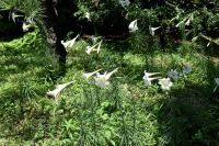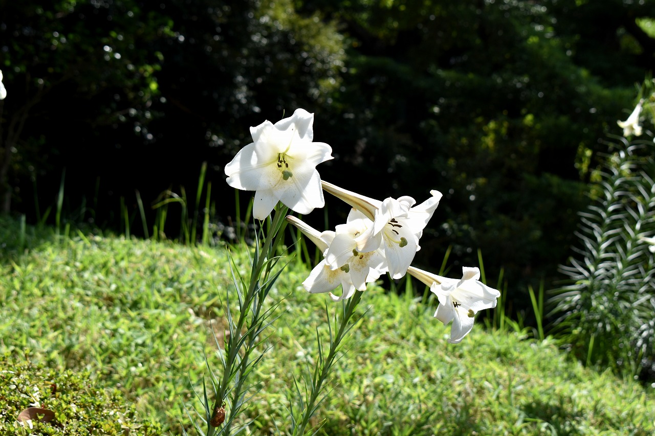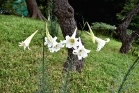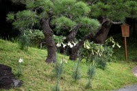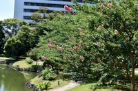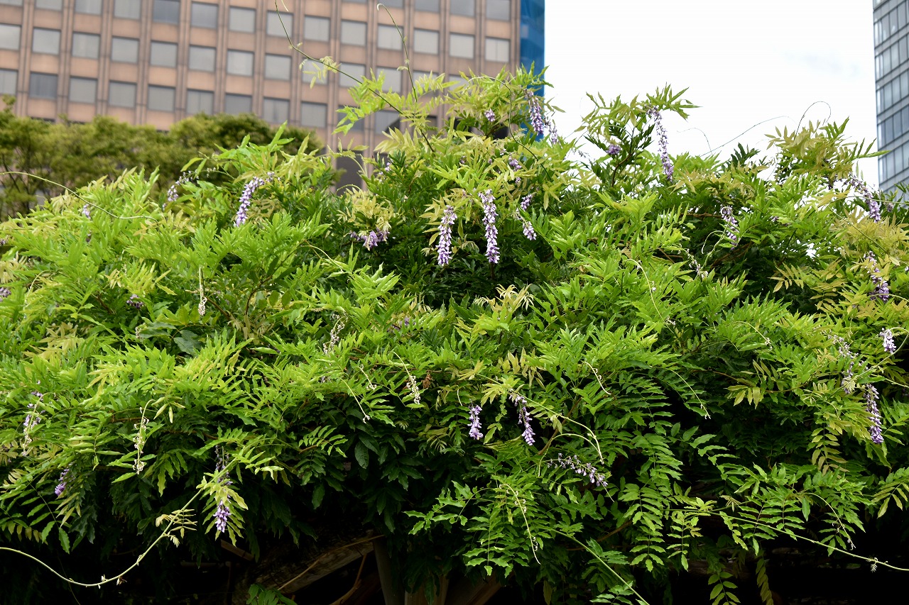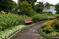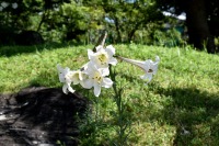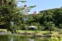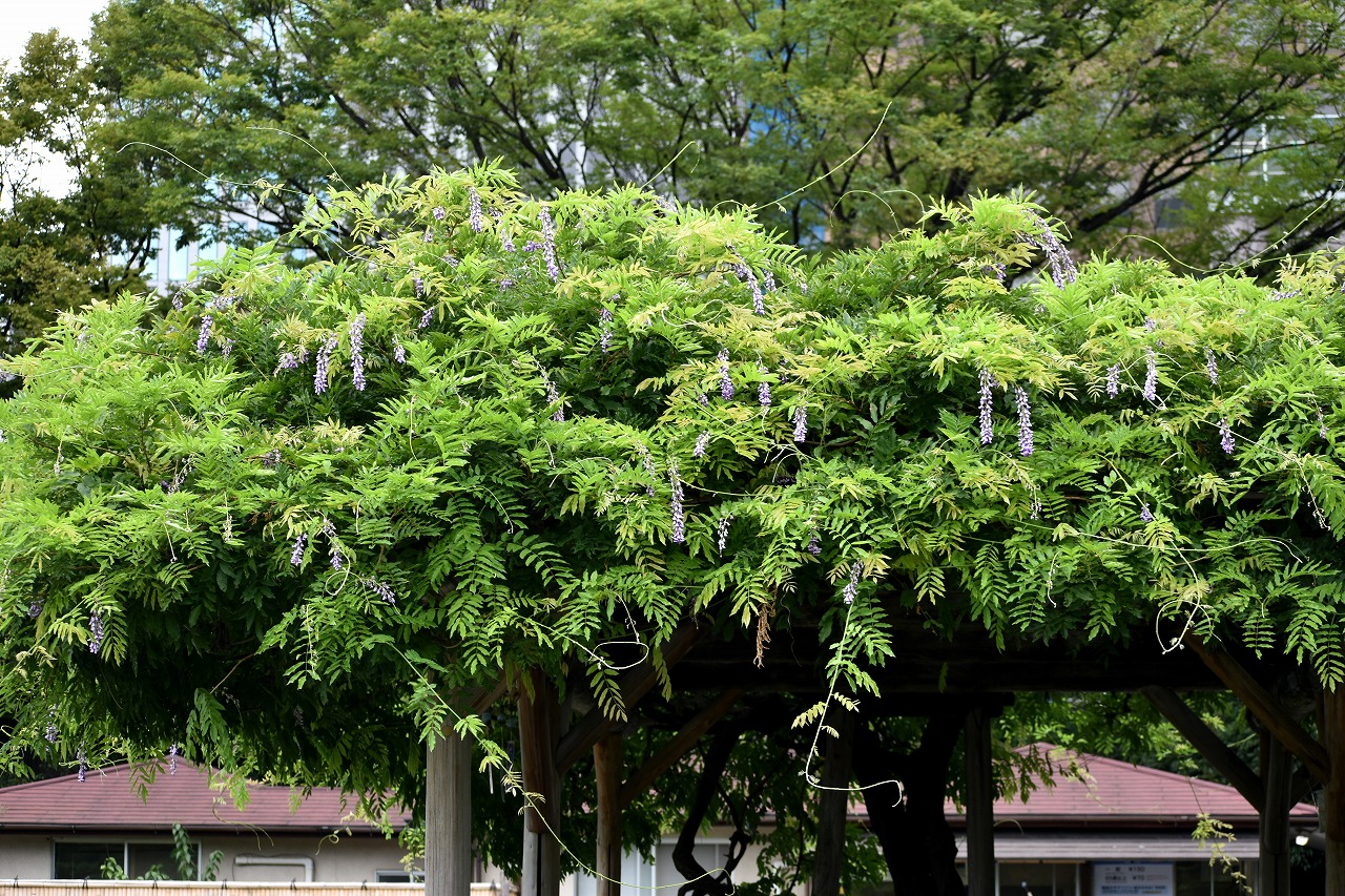 「一言」非常に暑い夏が来ました。芝公園にはヒマワリがたくさん咲いています。旧芝離宮にはタカサゴユリが咲き出しました。 暑い時期ですが、7月31日には桔梗の花が増えていました。時期外れに咲いた藤の花が房を伸ばしていました。しかし、 8月4日には藤の花は散っていました。インドハマユウが再び咲いています。タカサゴユリの白い花は増えて爽やかです。 サルスベリも咲き出したところです。キツネノカミソリの花があちこちに咲いています。