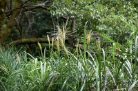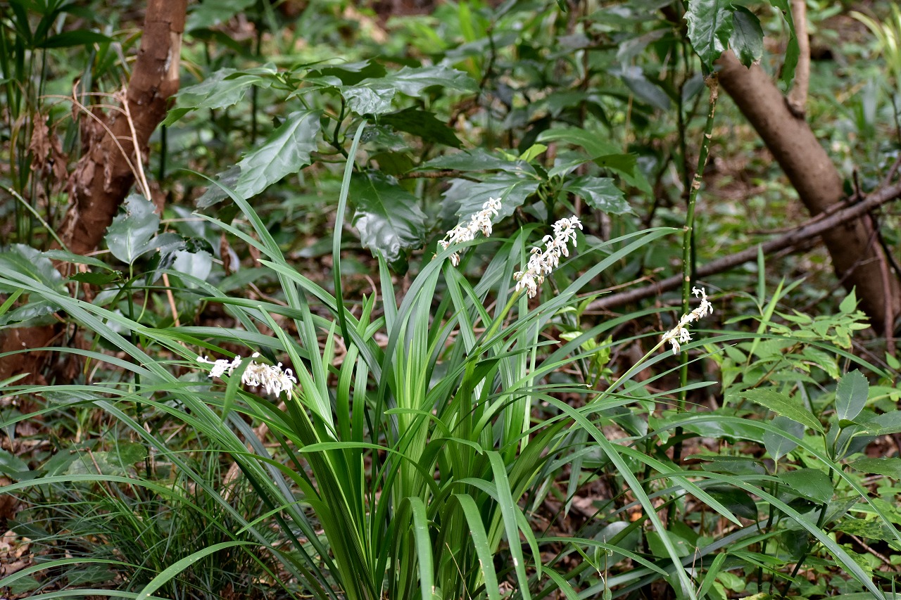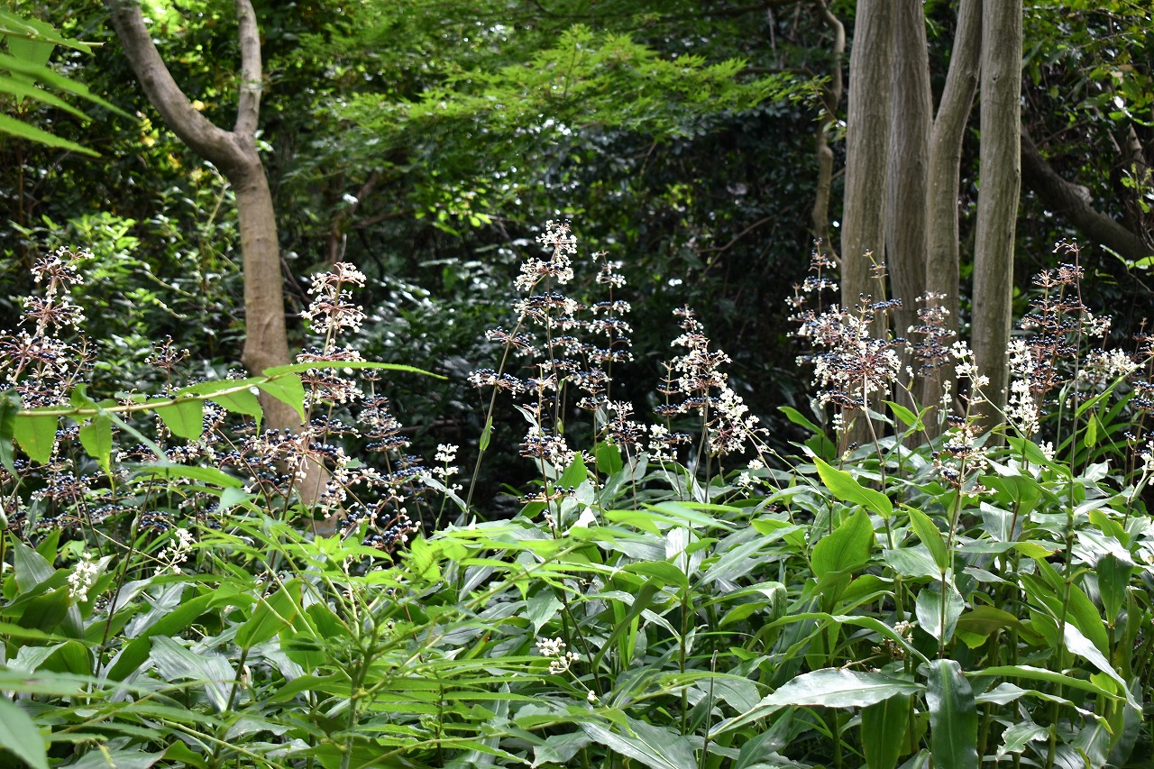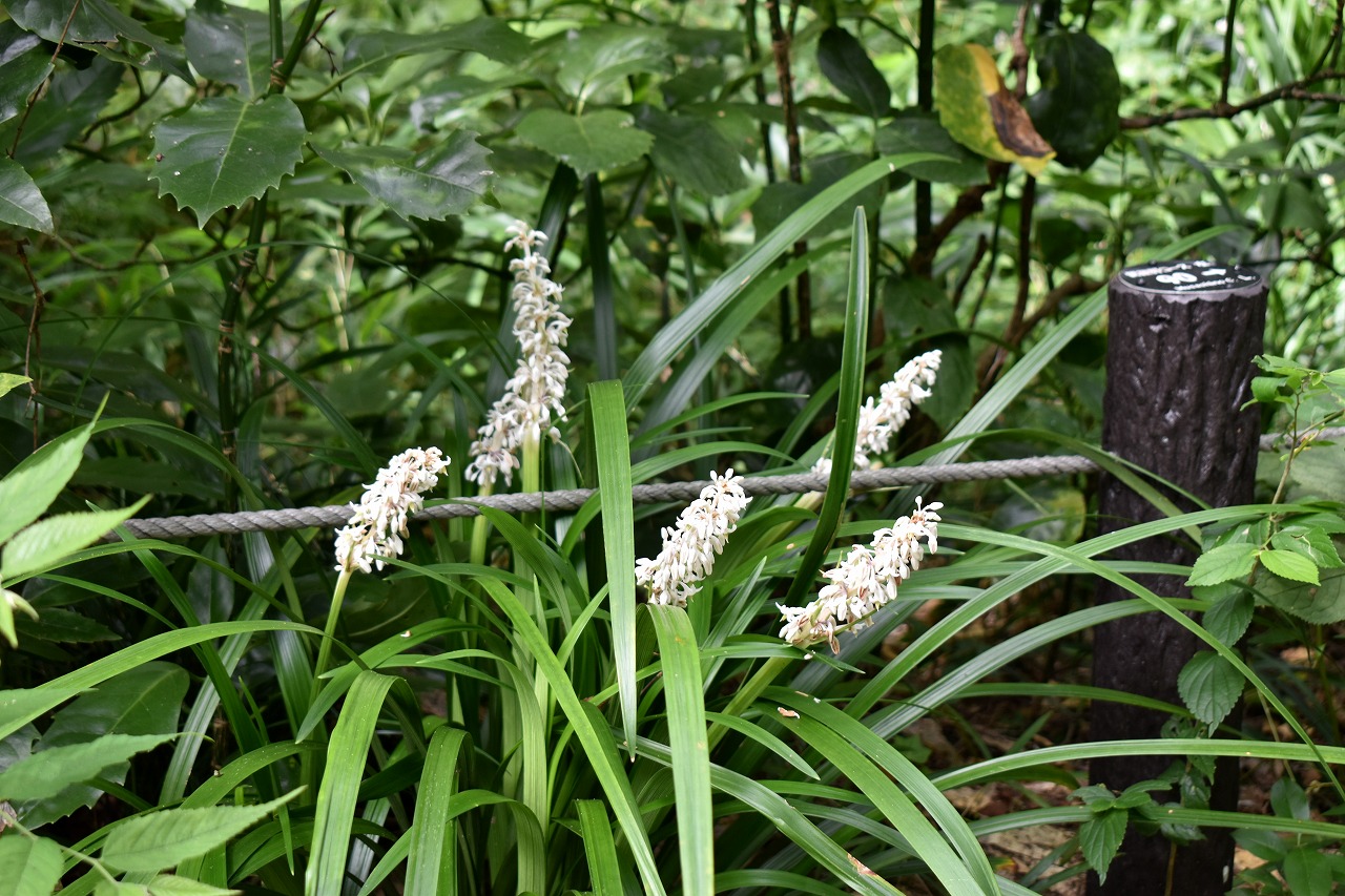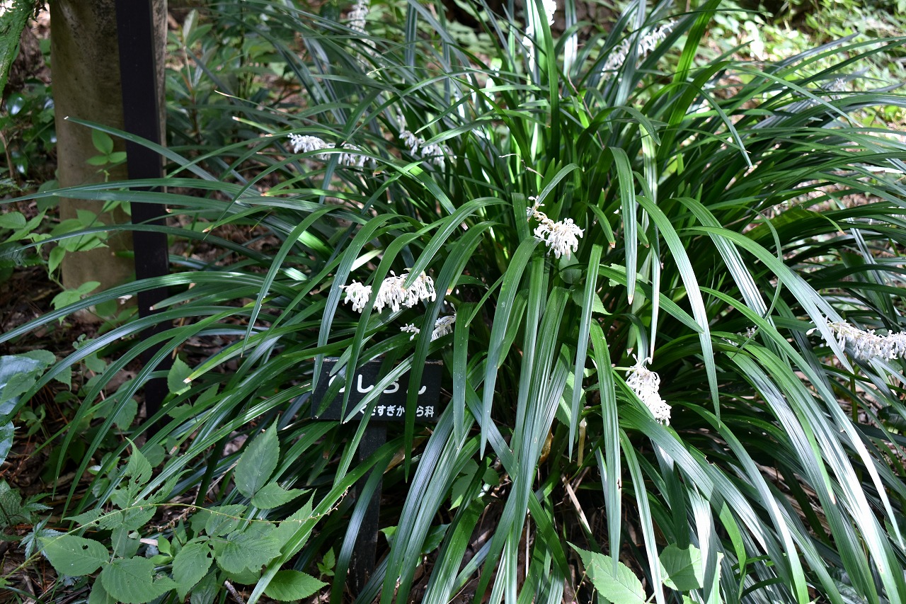 「一言」自然教育園にはナンバンギセルの花が咲いているということで入ってみた。入り口近くにはノシランの白い花が咲いていました。