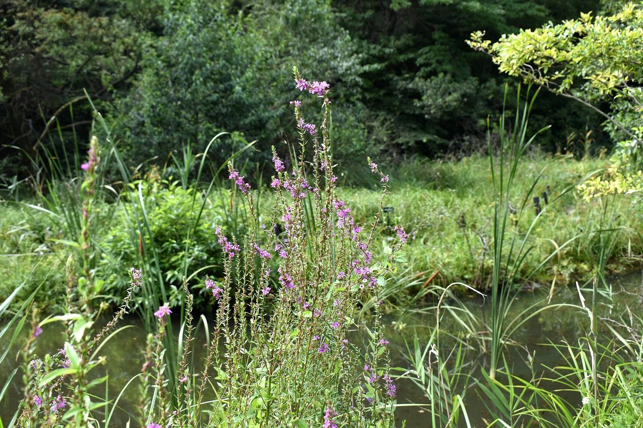 コバギボウシやメヤブマオやモミジガサの花がたくさん咲いていた。池の回りにはコバギボウシやミソハギの花が咲いていました。