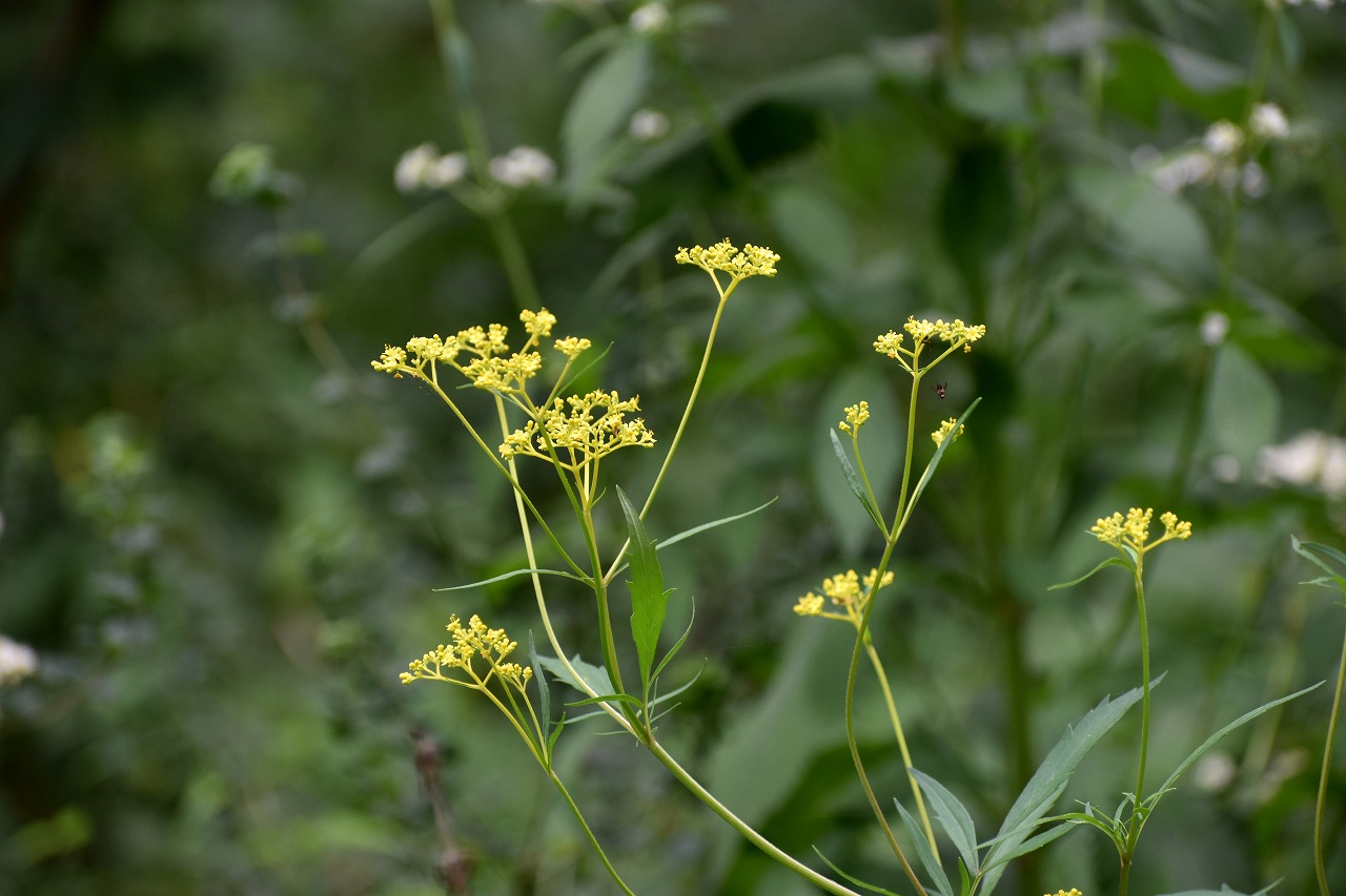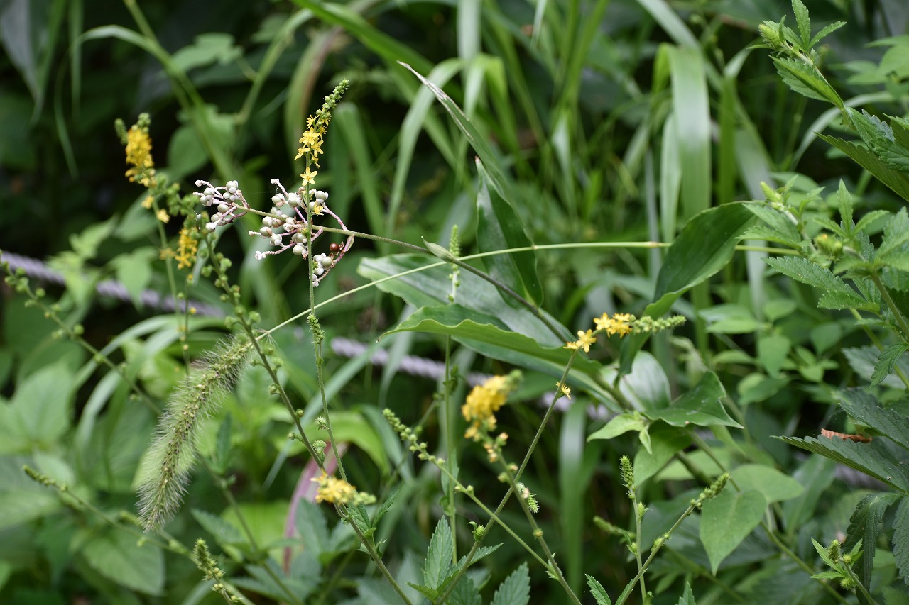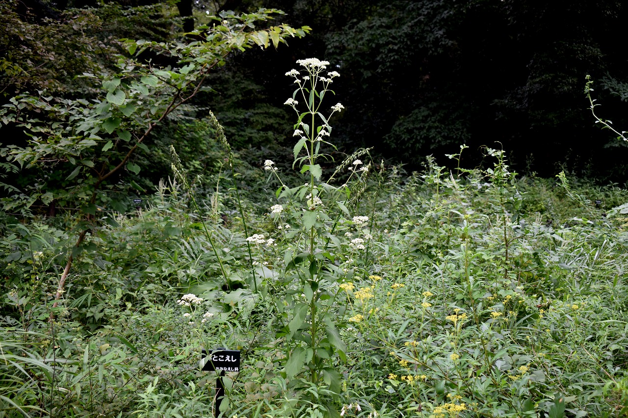 武蔵野植物園にはマツカゼソウやオトコエシ、オミナエシ、ツリガネニンジンなどの花が咲いていました。ヤブミョウガの黒い実うあ