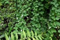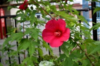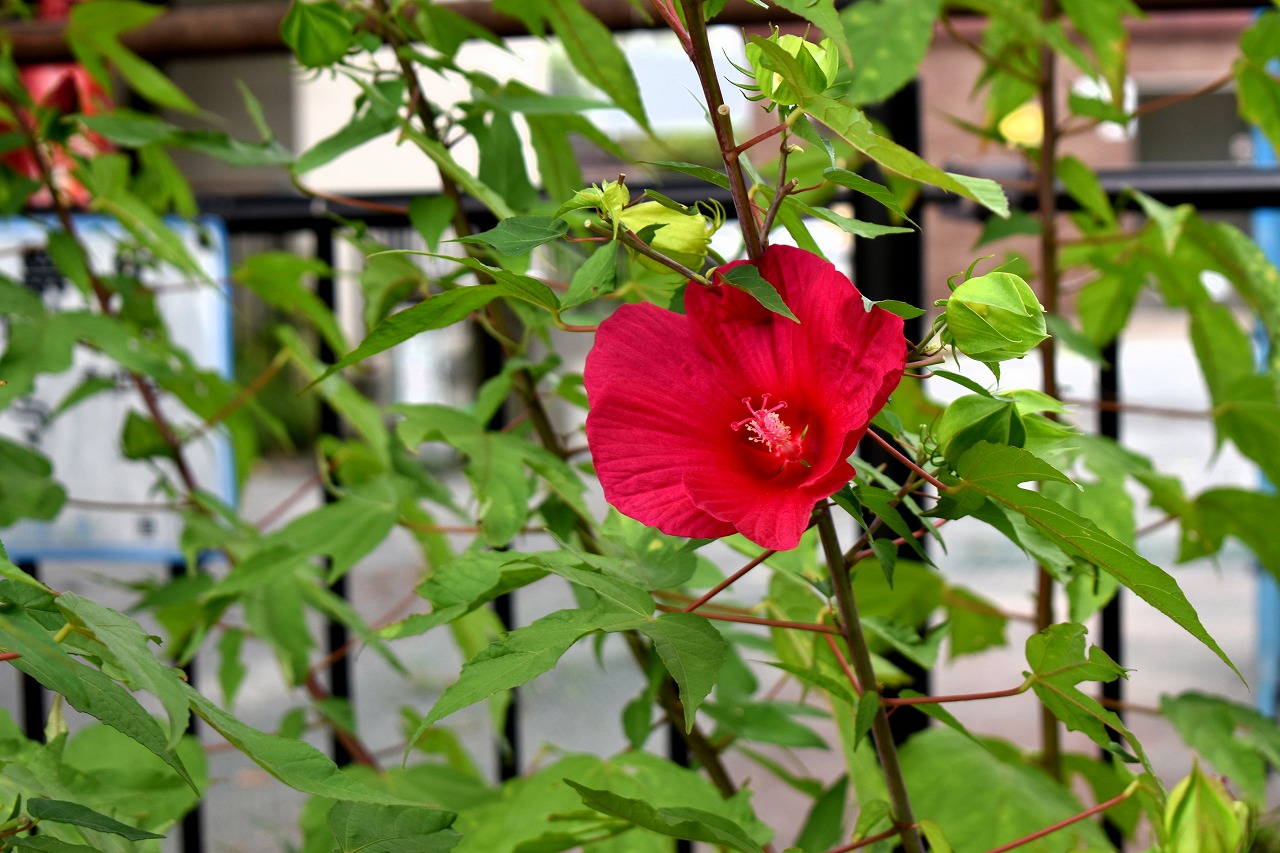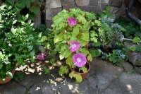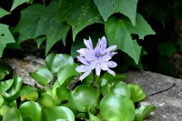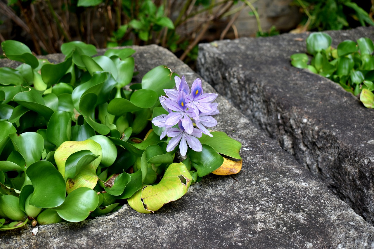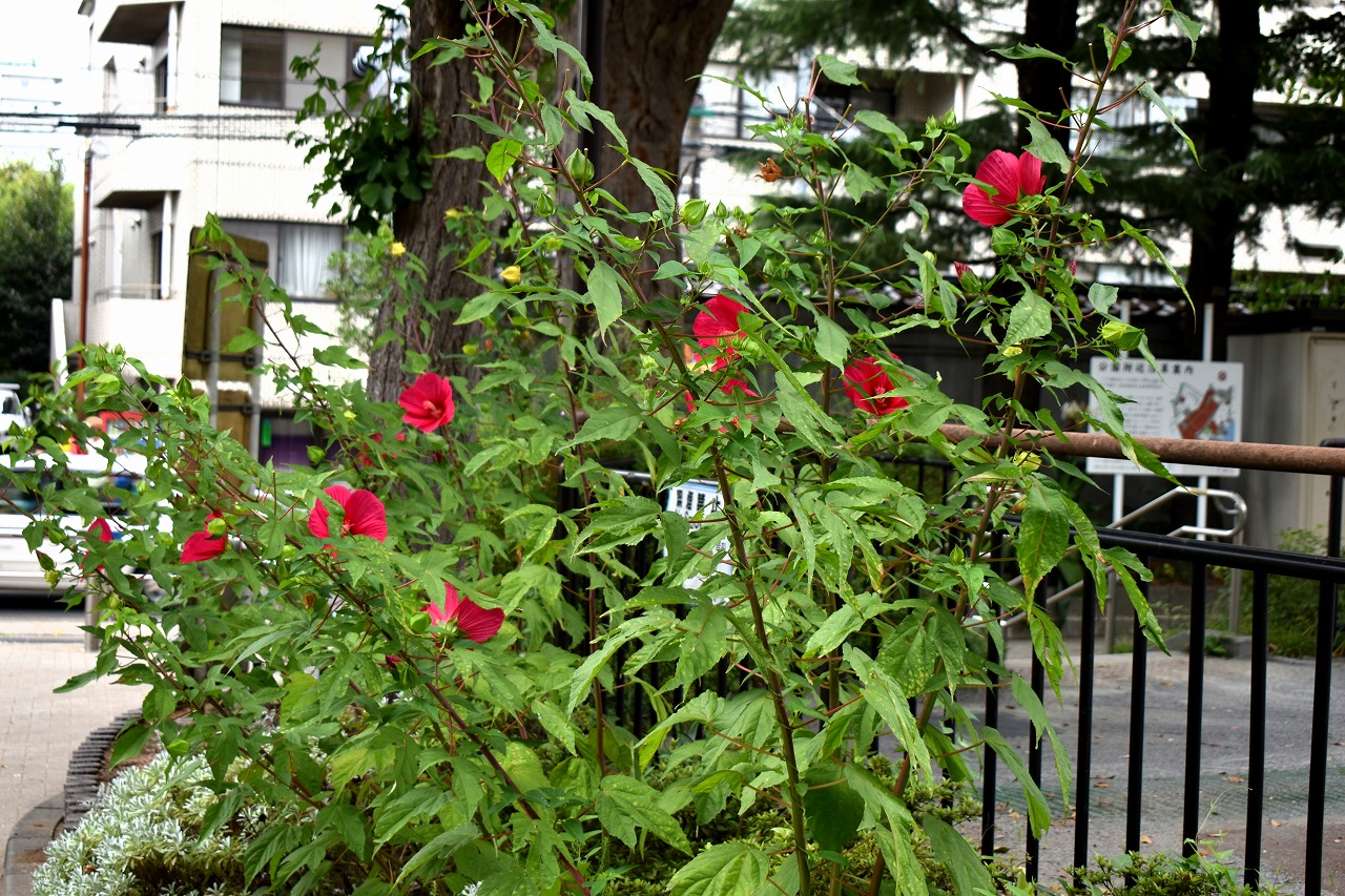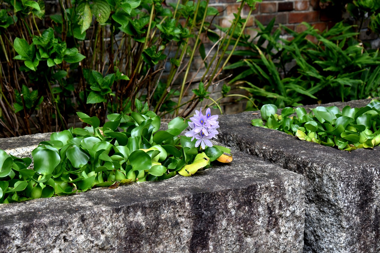 幽霊坂の途中ある忍願寺の裏門に咲く大きな百日紅の花は見事です。龍源寺にはホテイアオイの花が咲いています。