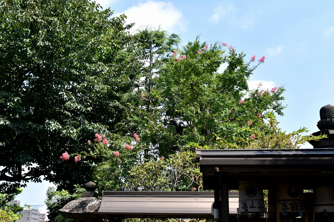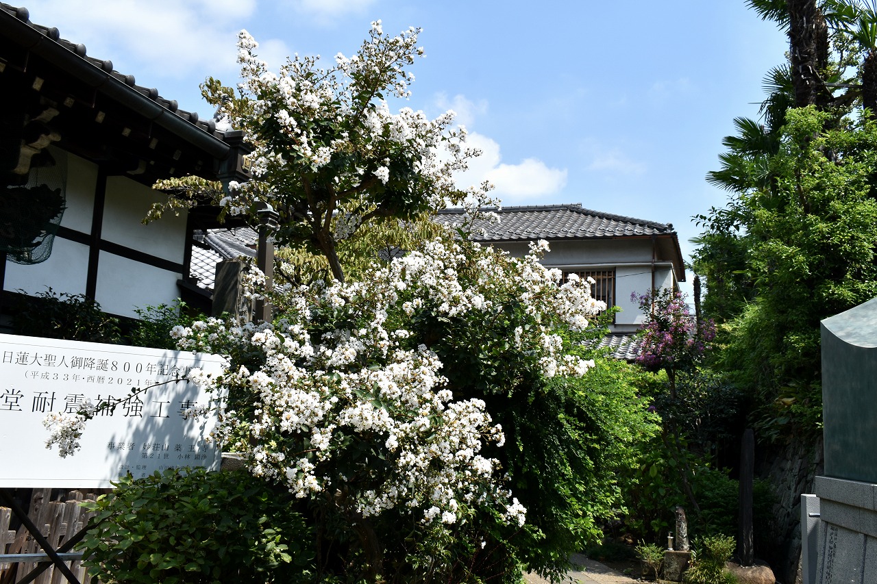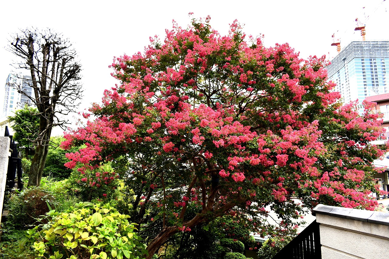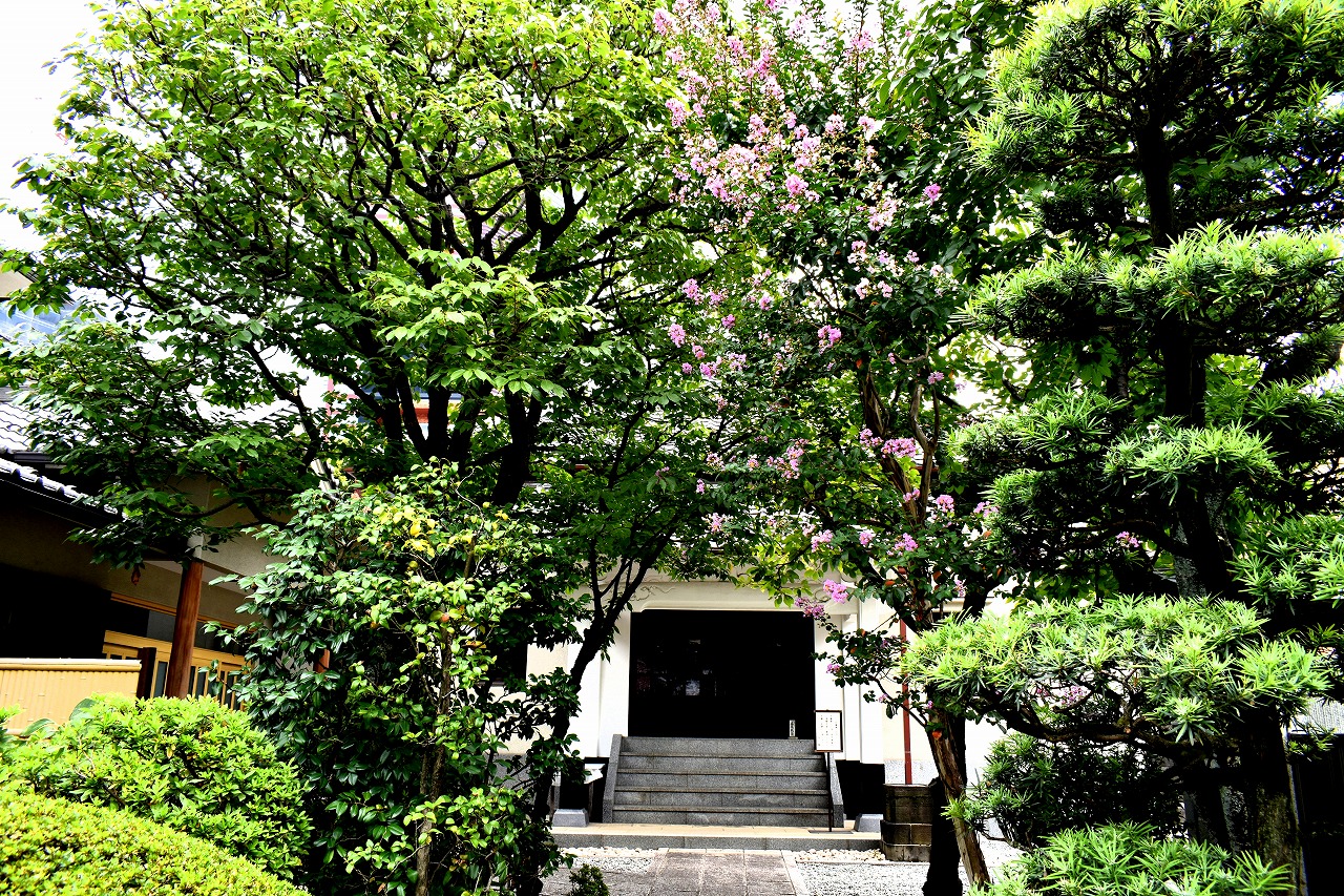 「一言」三田寺町の多くのお寺に百日紅の木が植えており、たくさん花を咲かせています。仮御所の前のプリンセスミチコの