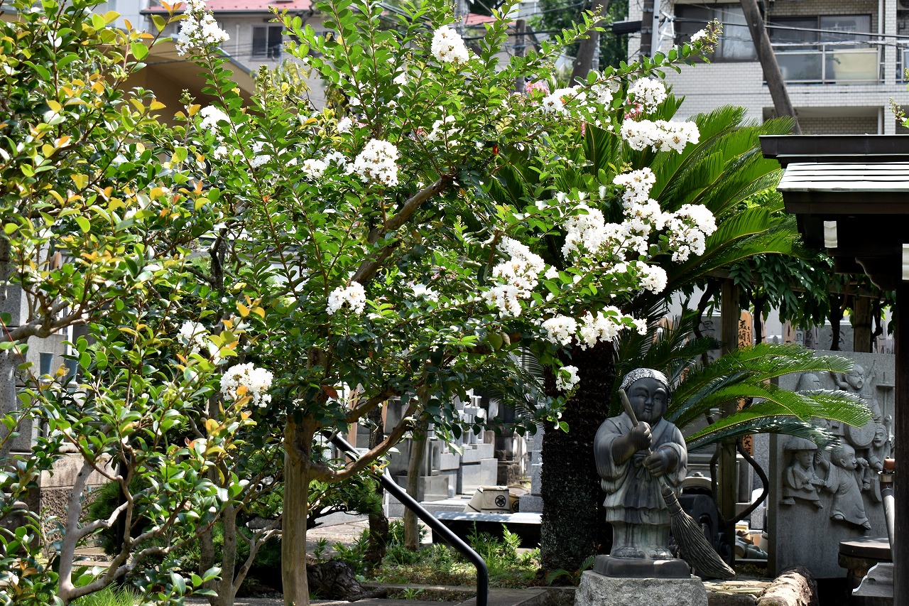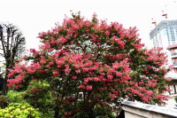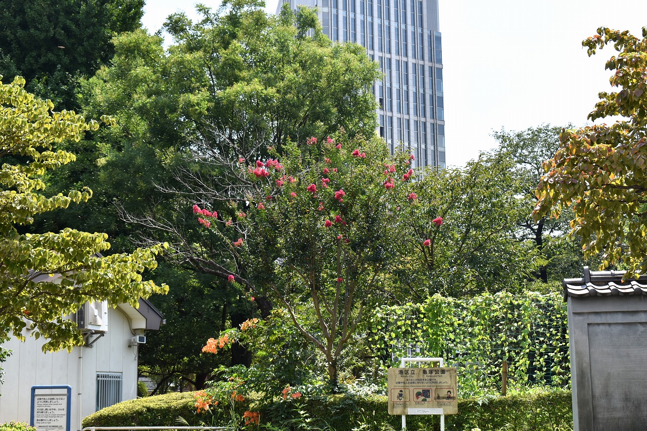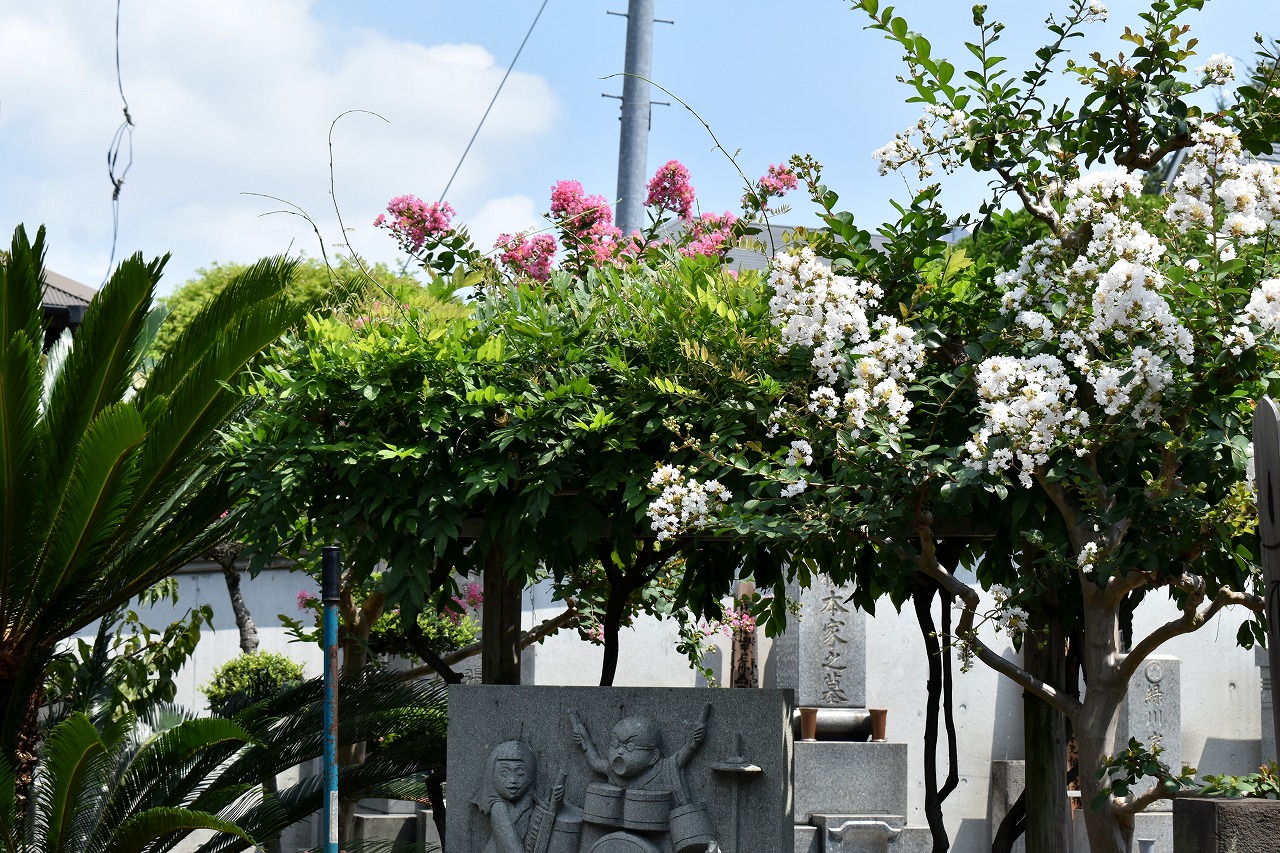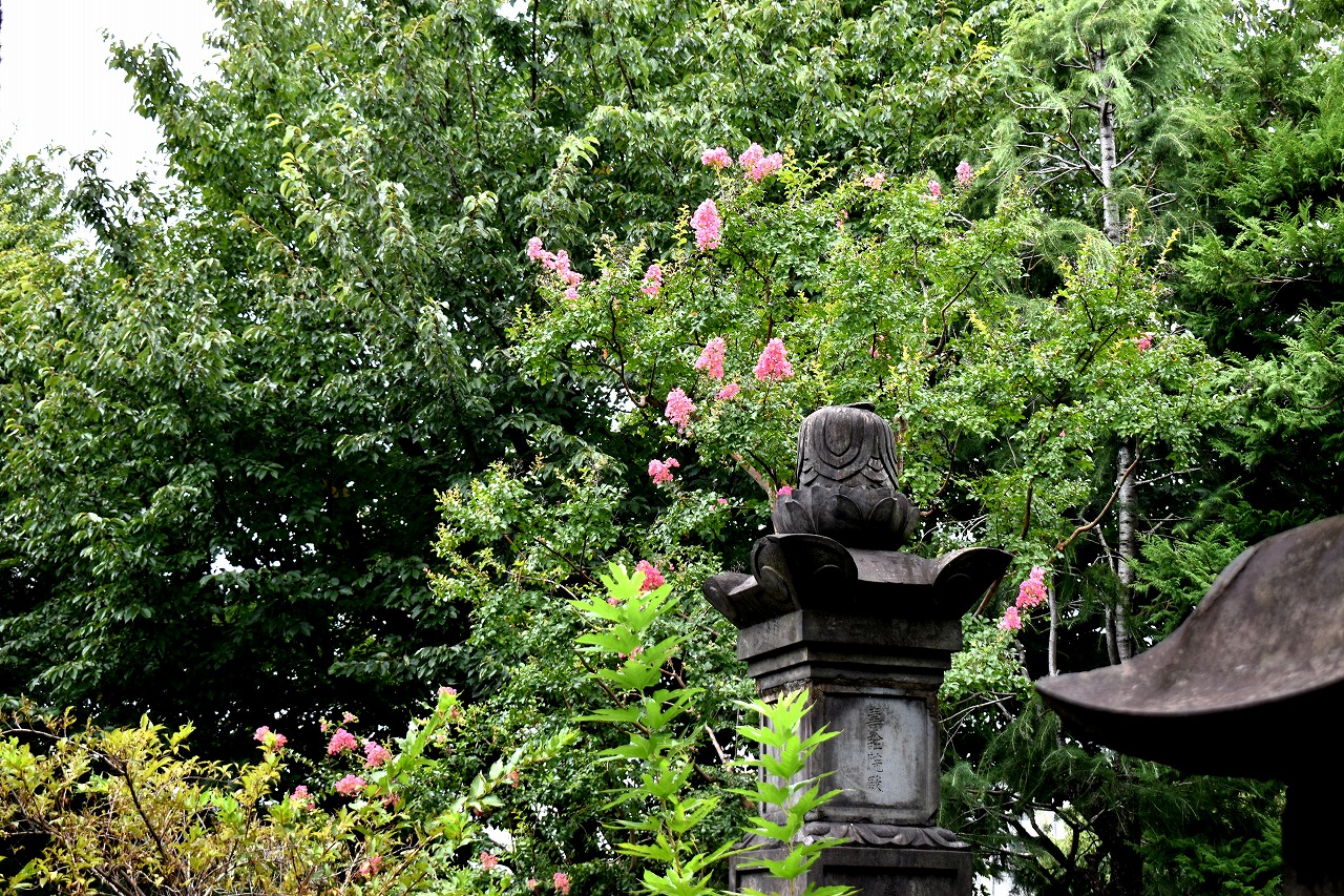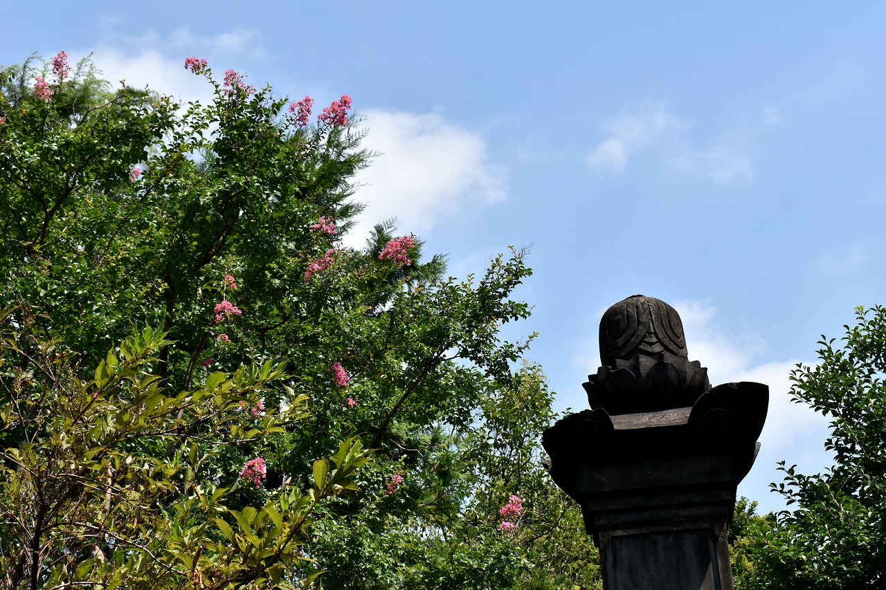 「一言」三田寺町の多くのお寺に百日紅の木が植えており、たくさん花を咲かせています。仮御所の前のプリンセスミチコの