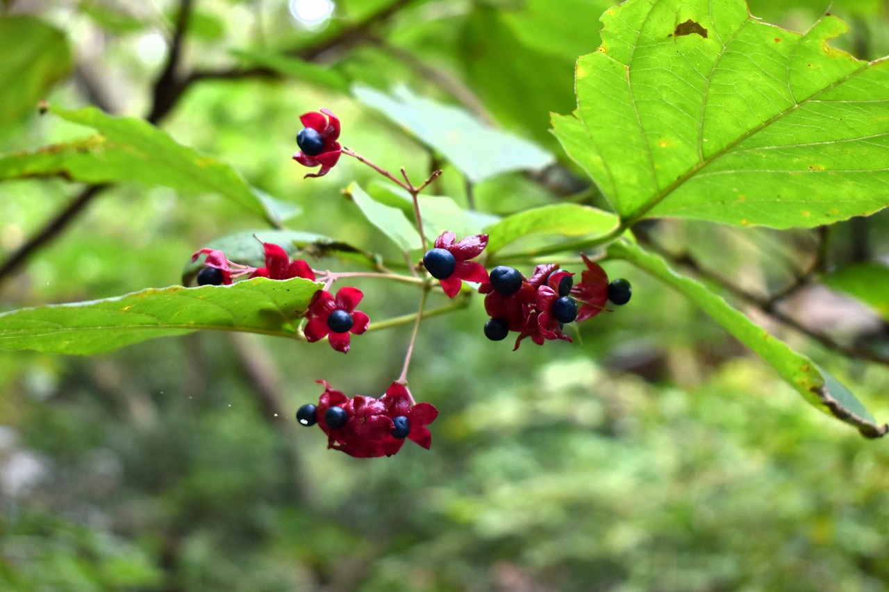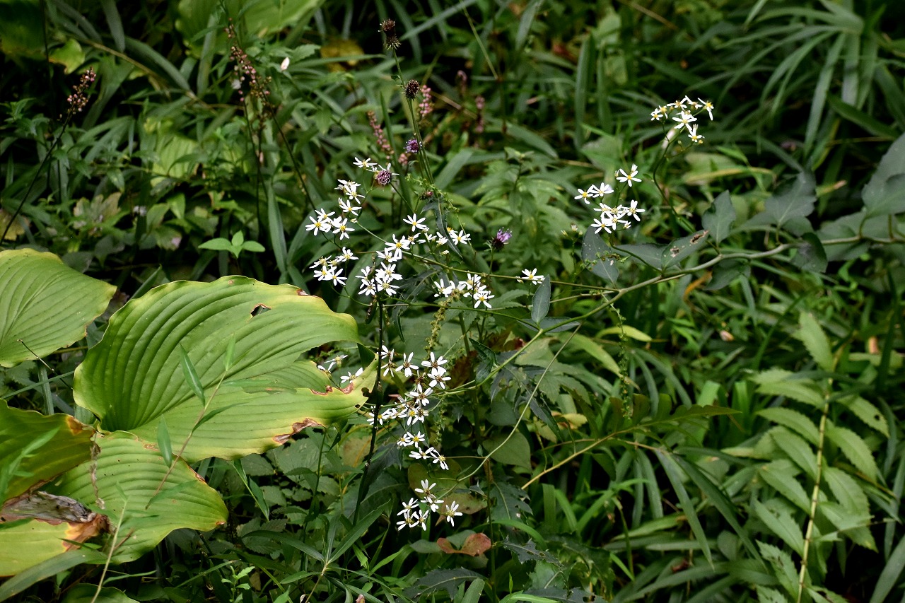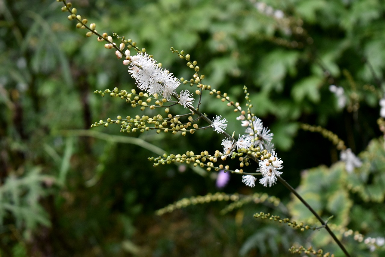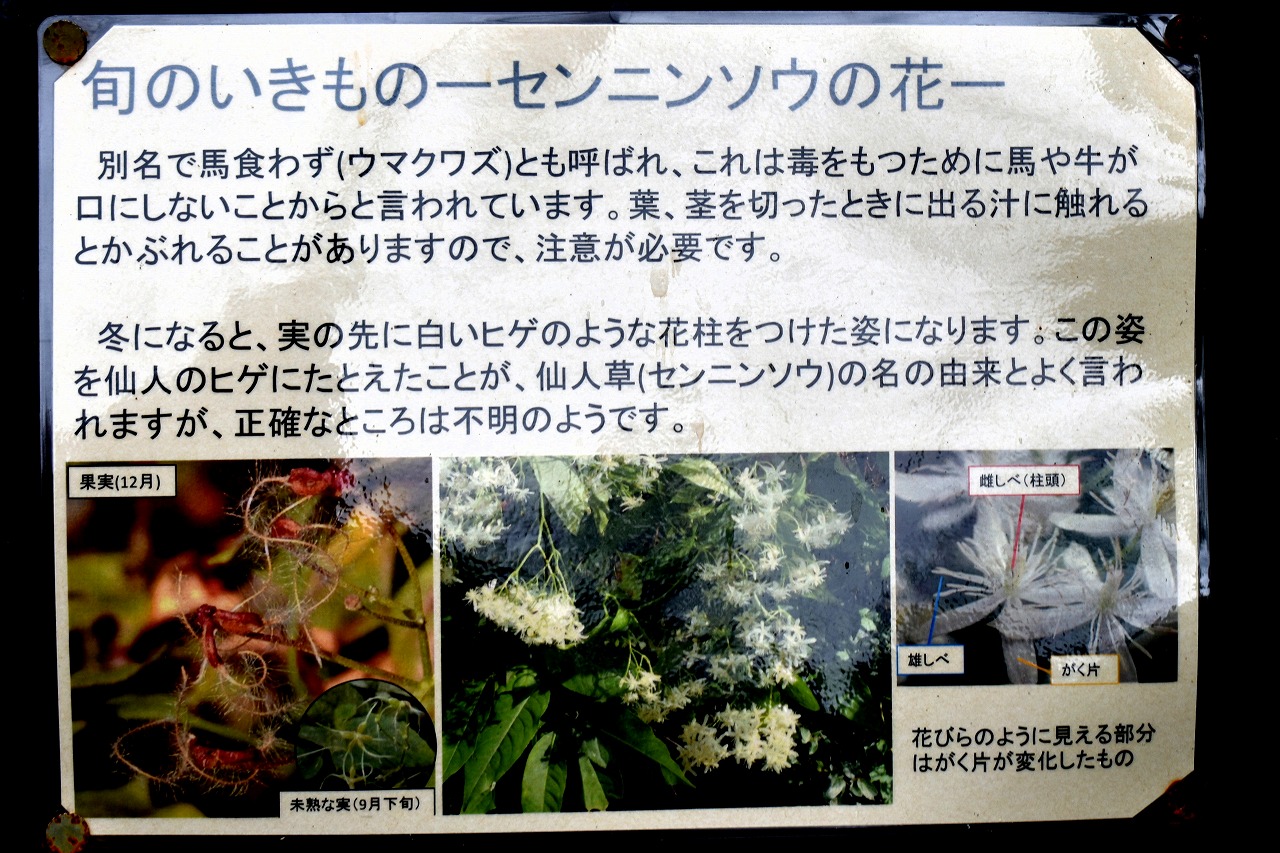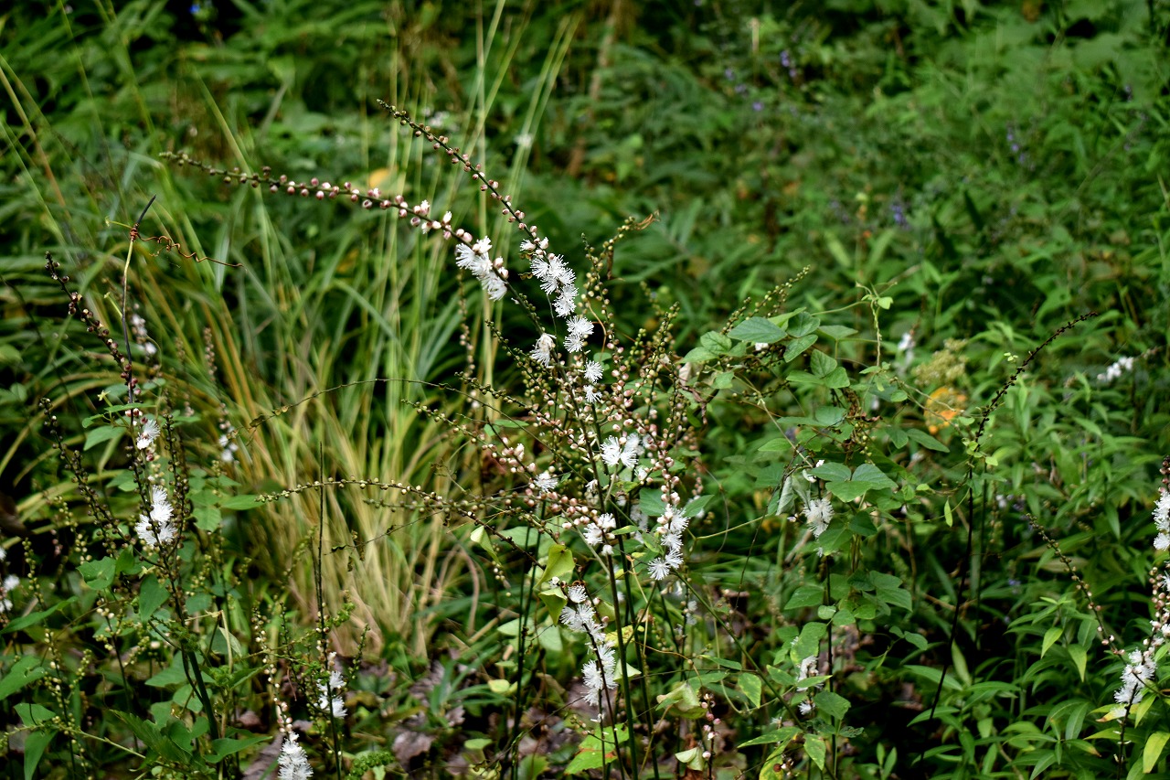 「一言」自然教育園には可愛らしい花が色々と咲いていて楽しめます。入口の近くにはイヌショウマが咲いています。 良く似た花でシモバリラも咲いています。萩の花も咲いていますが、ナンテンハギにヤマハギが咲いています。 クサギも実がなって綺麗です。池のまわりはツリガネソウがたくさん咲いています。ノギクもシロヤマギクや ノコンギク、ユウガギクなどが咲いていますが、良く似ています。彼岸花の少しだけ残っていました。