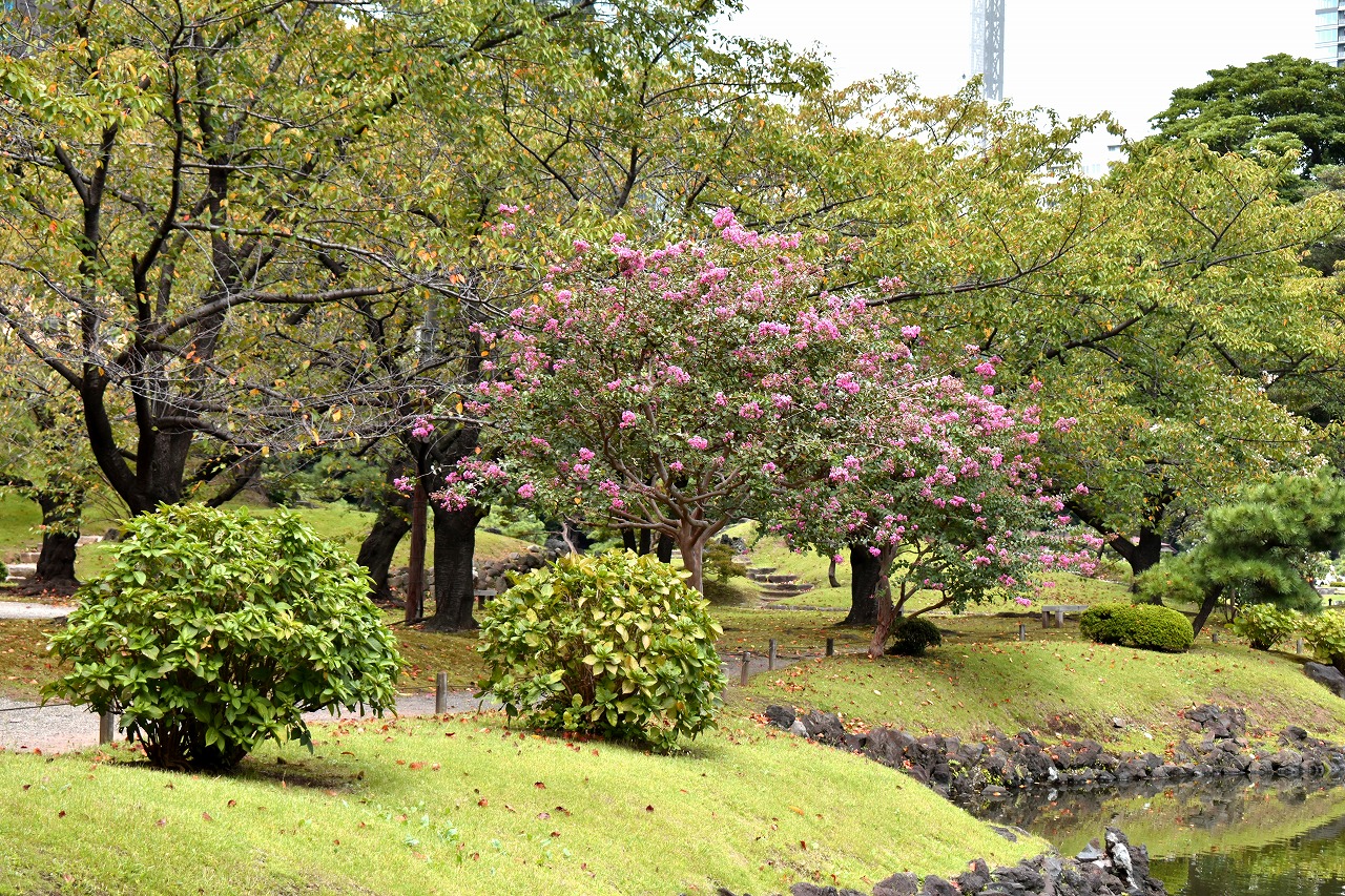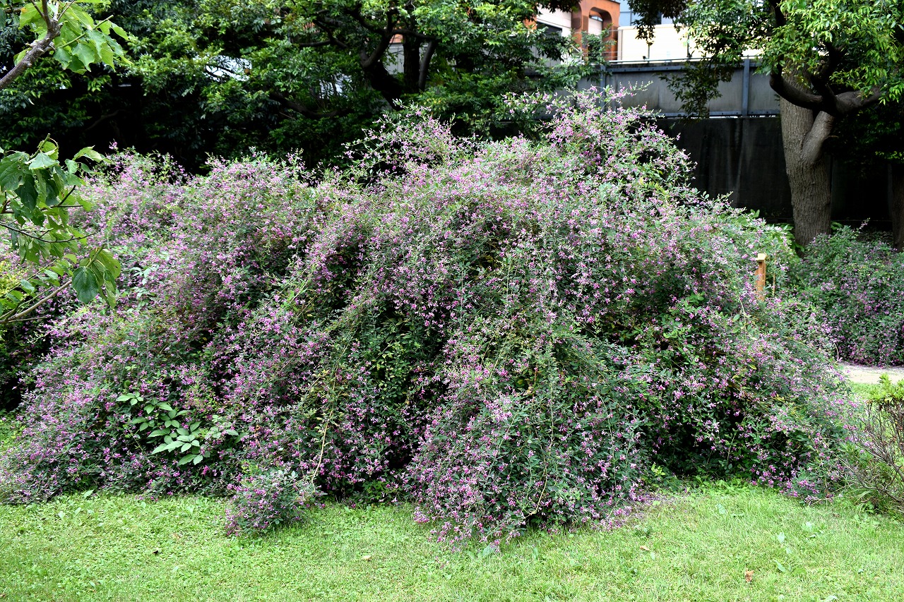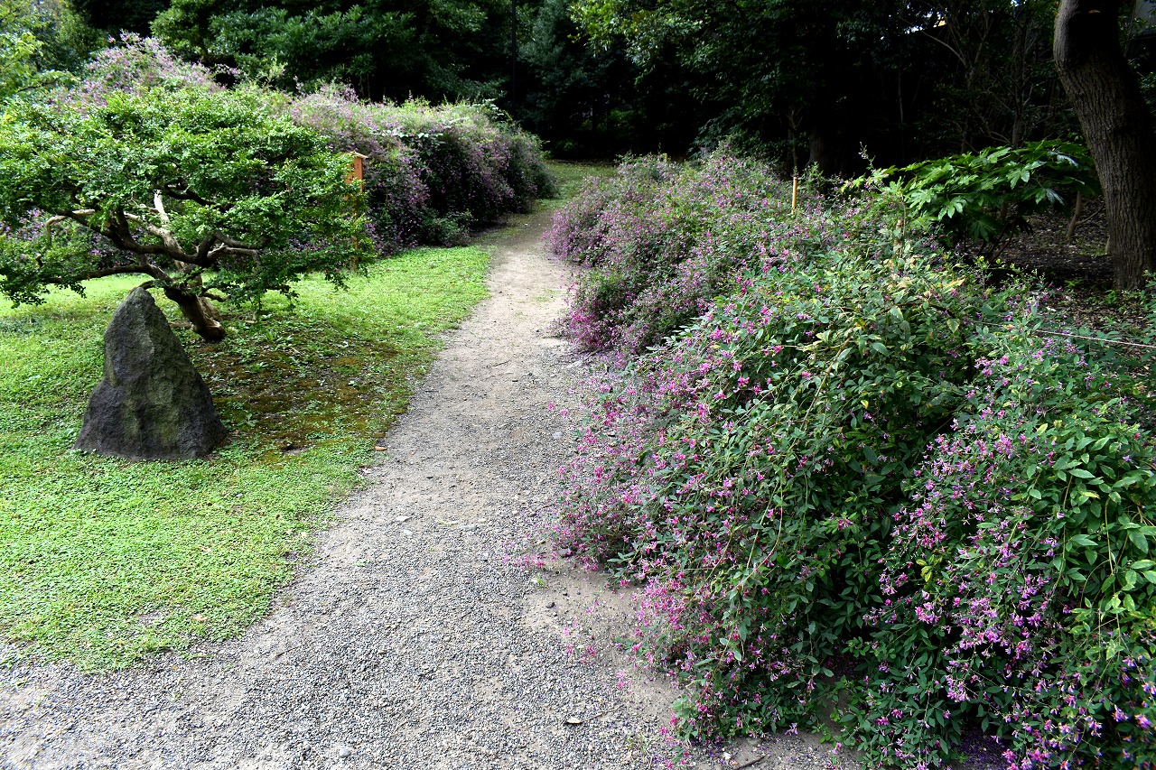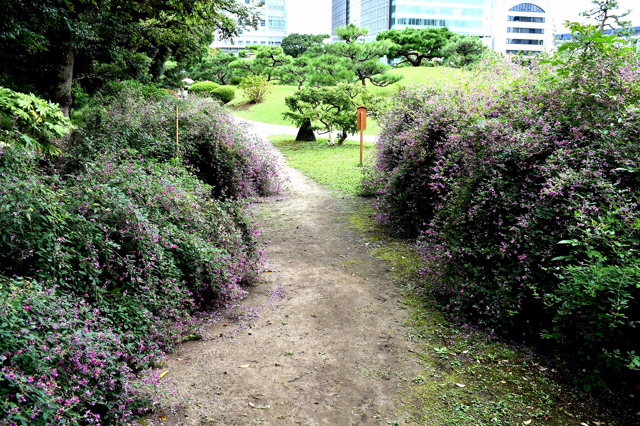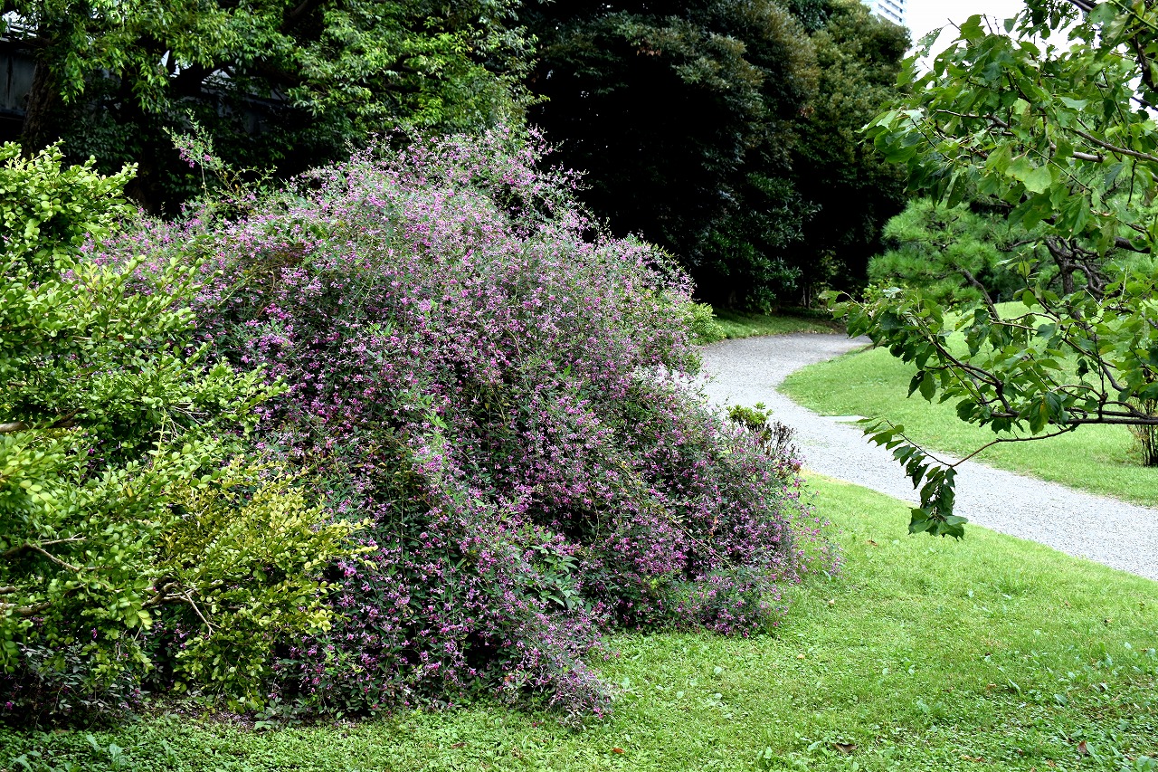 「一言」芝公園や旧芝離宮に萩の花が咲き見頃です。芝公園のピンク色の花の花は峠を越えつつありますが、白い花は今上ごりです。 旧芝離宮の萩の花は大きな木にたくさん咲いて見事です。入口の桔梗も花の数は少なくなっていますが綺麗です。入口の前には シュウメイギクが咲き出し綺麗です。シャリンバイの花も咲いています。