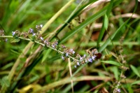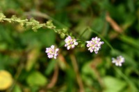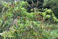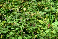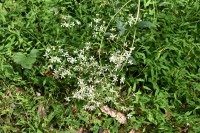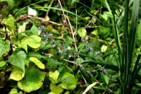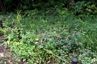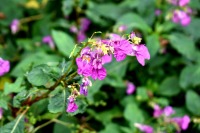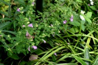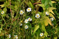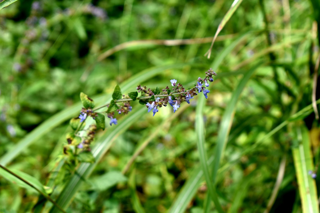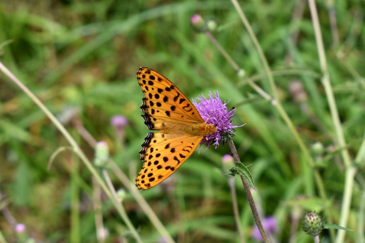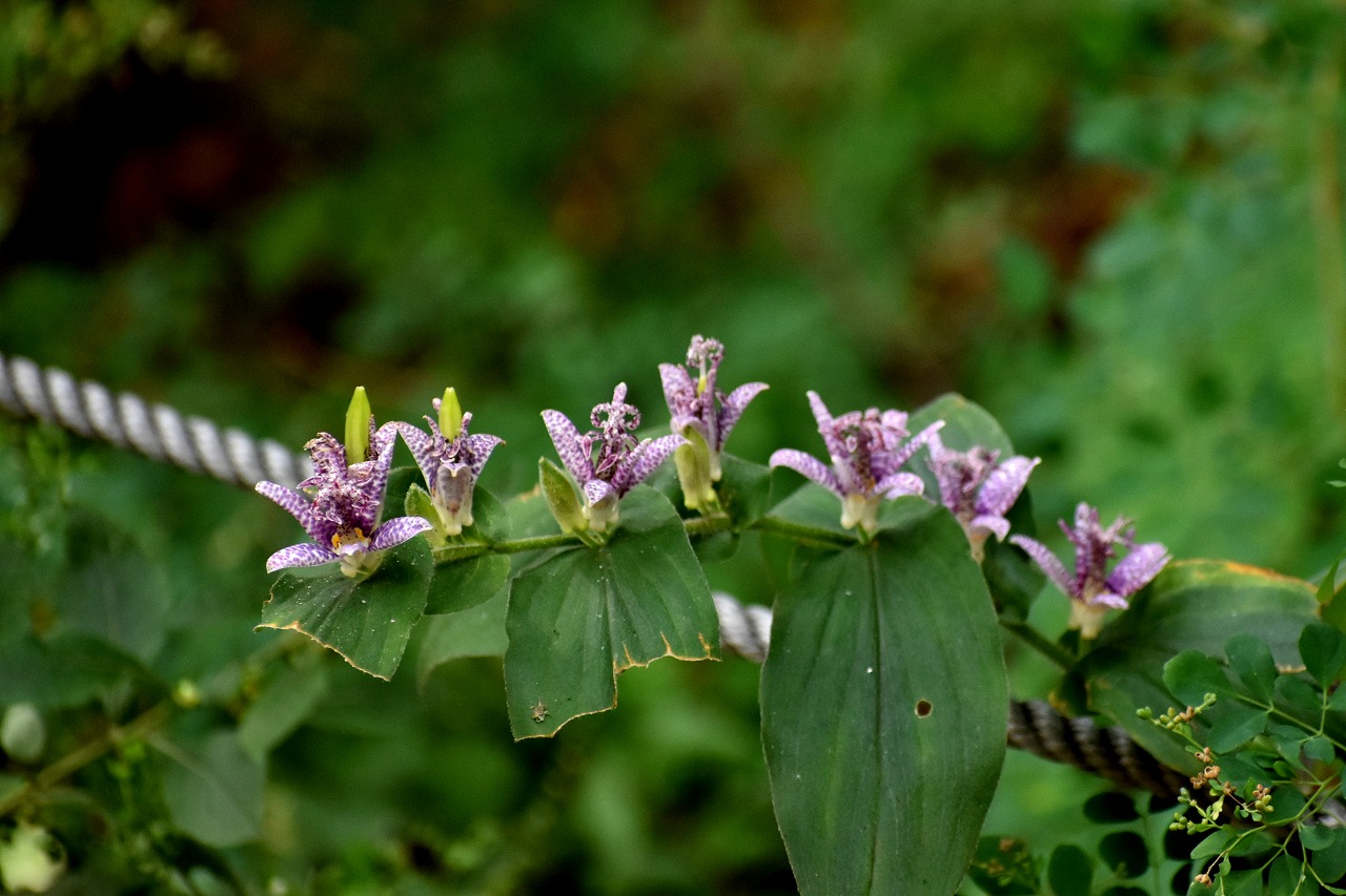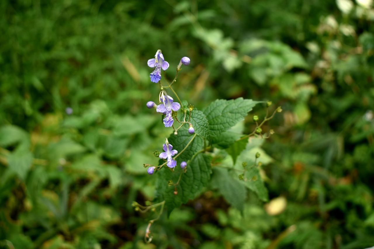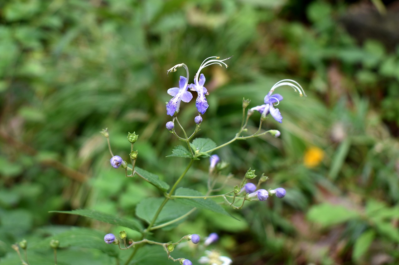 「一言」自然教育園には秋の花が色々と咲き、散策していると楽しめます。イヌショウマの花があちこちで咲いています。 池のまわりにはツリフネソウがたくさん咲いています。ユウガギクやシラヤマギクなどもあちこちに咲いています。 茶ノ木の花やミソソバの花も咲いています。アザミの花もあちこちに咲いており、色々な蝶が飛んできています。