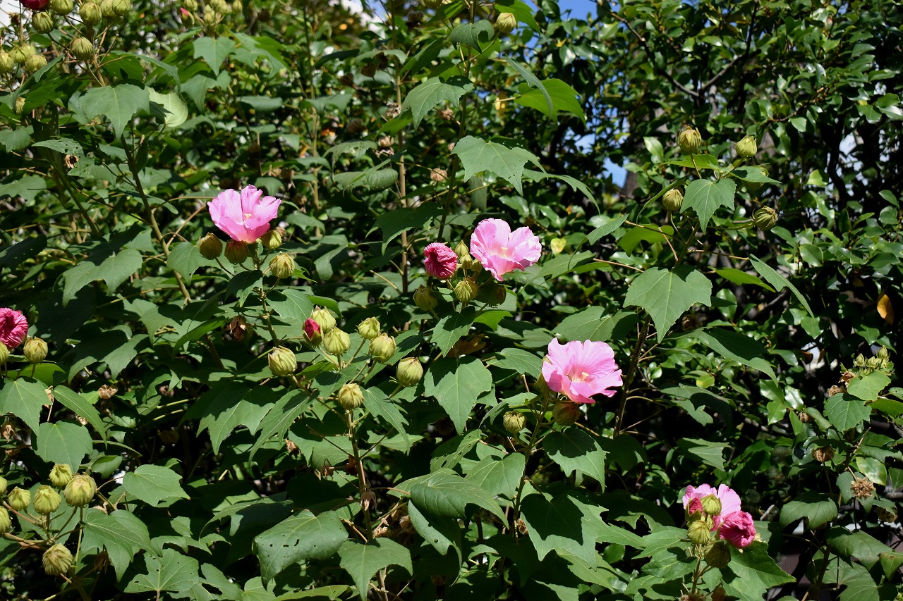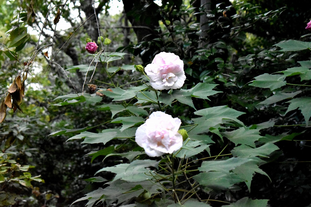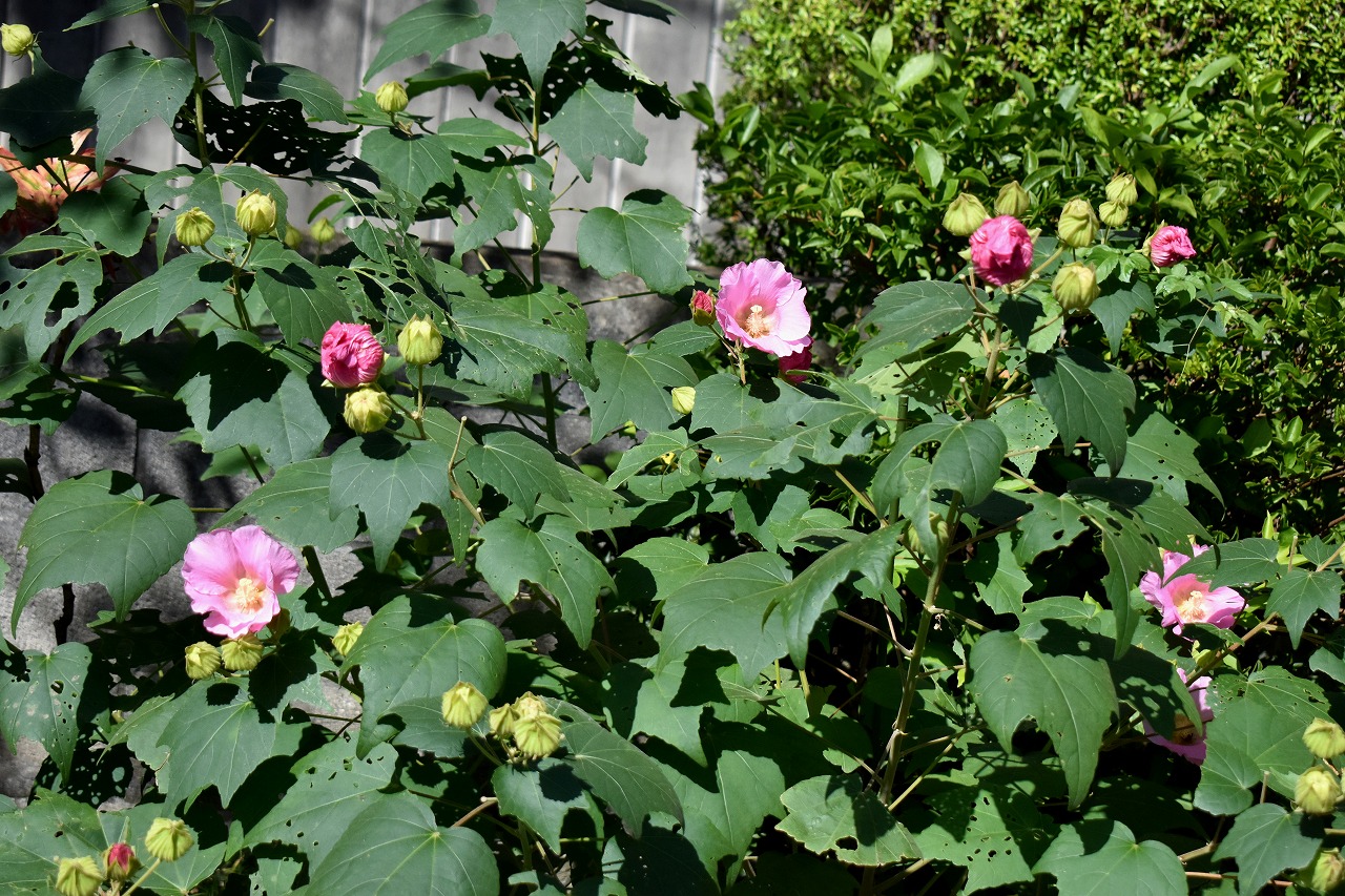 龍源寺や蛇坂、證誠寺には芙蓉の花が咲いています。秀明菊が龍源寺や明王院に咲いています。明王院やキリスト友会などには