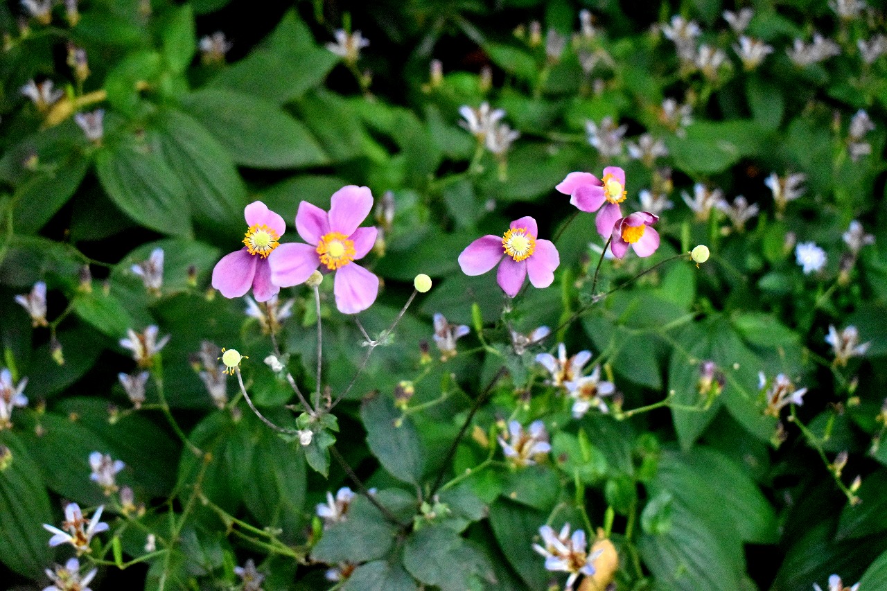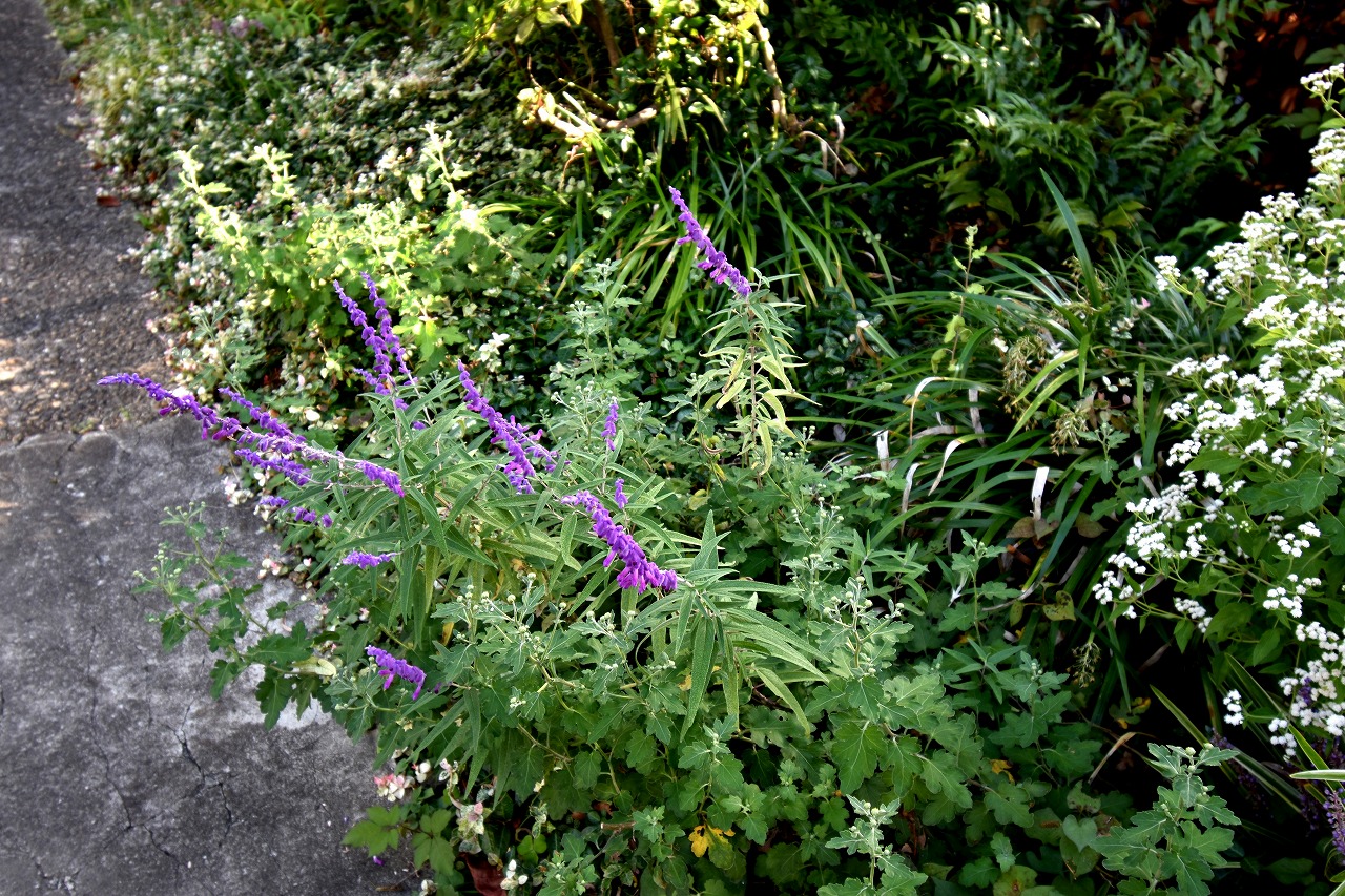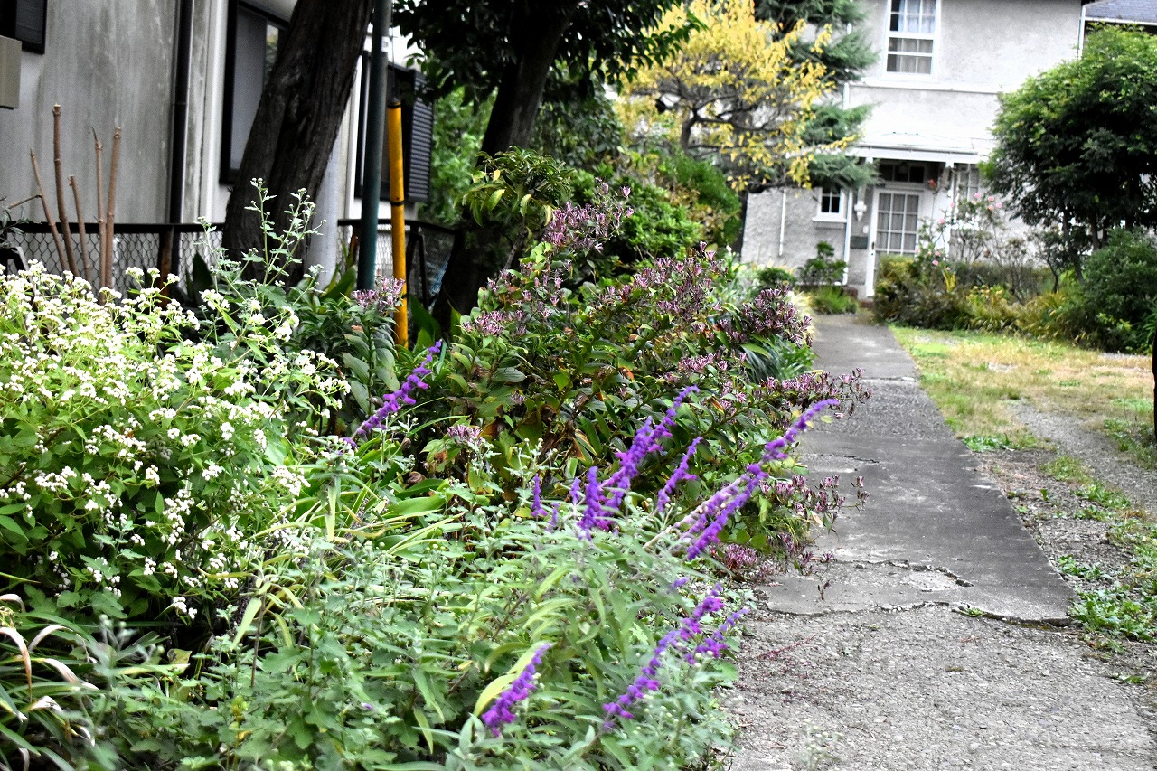友会にはバラの花も咲いていますが、あじさいの白い花が咲いており、驚きました。秋の花があちこちに咲き散策するのが楽しくなります。