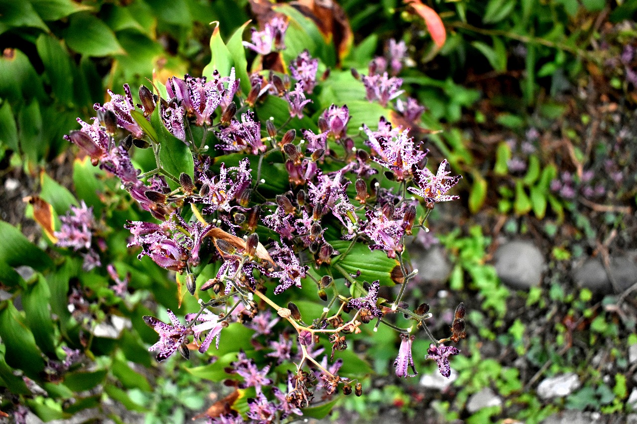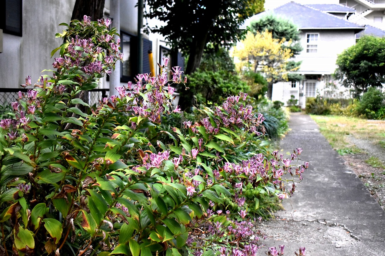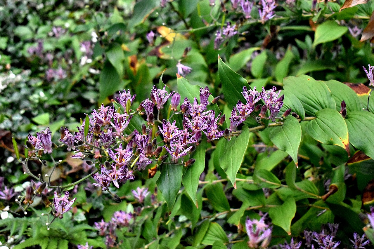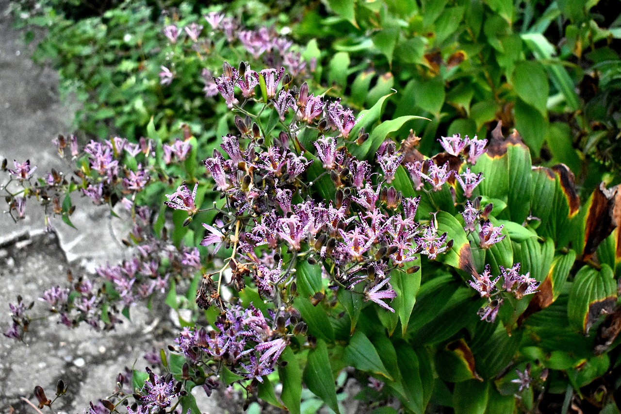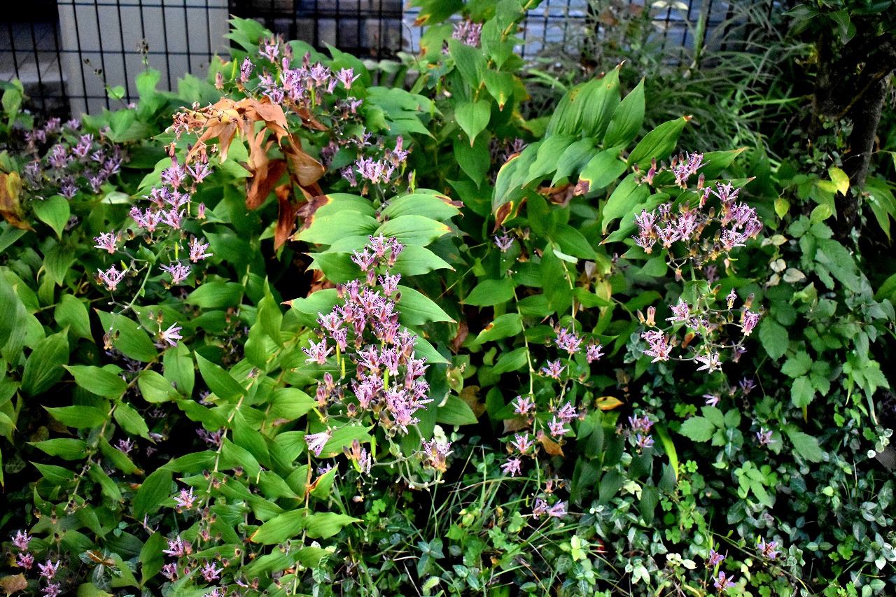 ホトトギスがたくさん咲いています。キリスト友会の庭にはホトトギスの花が非常にたくさんの花が咲いていて迫力があります。キリスト