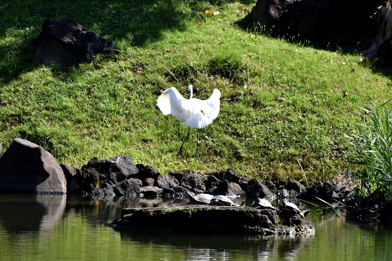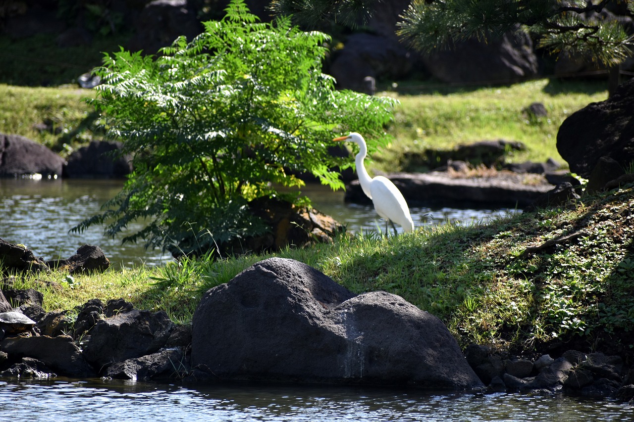 「一言」旧芝離宮恩賜庭園では秀明菊がたくさん咲いていて綺麗です。百日紅がまだ咲いています。写真を撮っていると池にシラサギが いましたので写真を撮りました。時々飛んでいましたので面白い写真が撮れました。プリンス芝公園にはバラの花が咲き出して いますが、まだ花びらが痛んでいる花が多い感じです。公園には秀明菊がまとまったところでたくさん咲いていました。