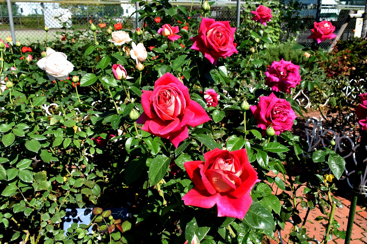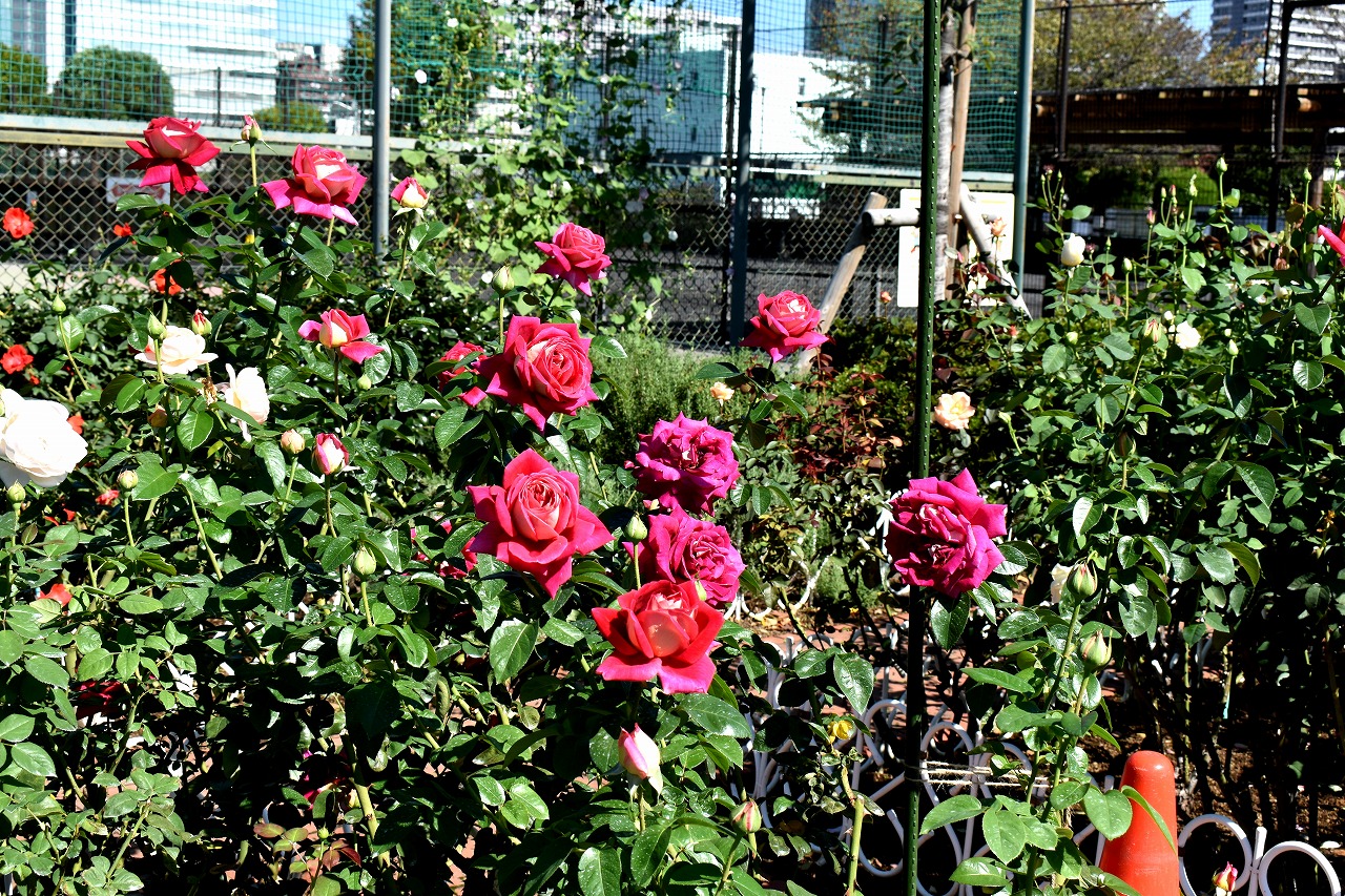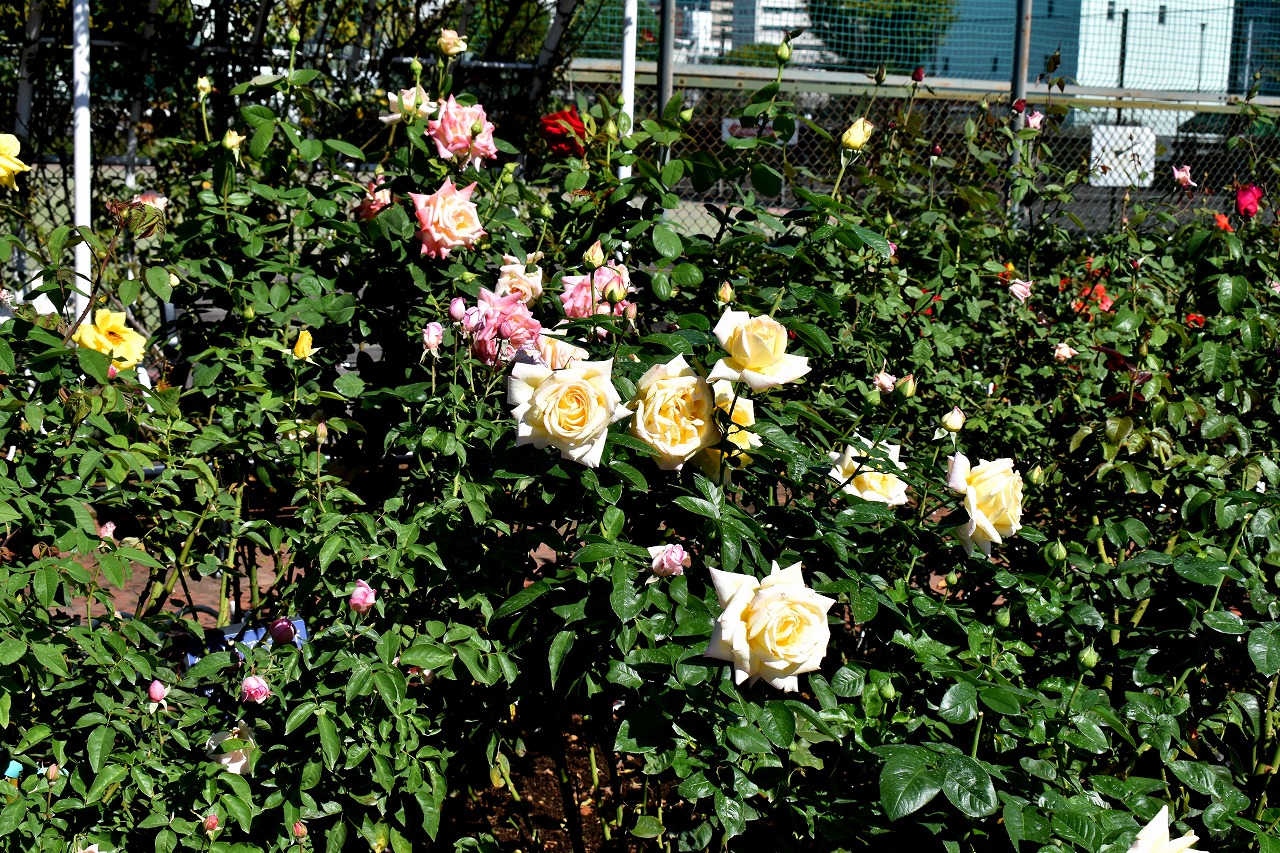 「一言」芝浦中央公園のバラが咲いています。色々な色のバラがたくさん咲いて綺麗です。先日剪定したので花が咲くのは もっと遅いのかと思いましたが既にたくさんの花が咲いていて驚きました。バラの名前が分り難いのでバラの名前 書いた写真が付いた札を出来るだけ写真に撮り、一覧表に付けたので多くなりました。