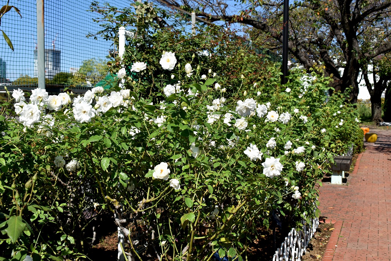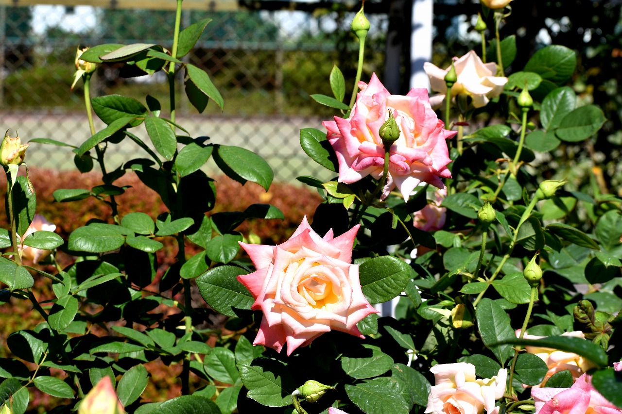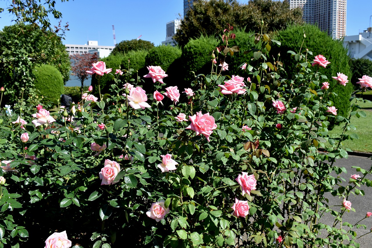 「一言」芝浦中央公園のバラが咲いています。色々な色のバラがたくさん咲いて綺麗です。先日剪定したので花が咲くのは もっと遅いのかと思いましたが既にたくさんの花が咲いていて驚きました。バラの名前が分り難いのでバラの名前 書いた写真が付いた札を出来るだけ写真に撮り、一覧表に付けたので多くなりました。