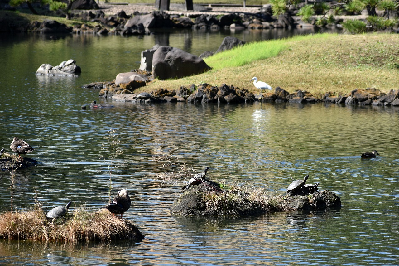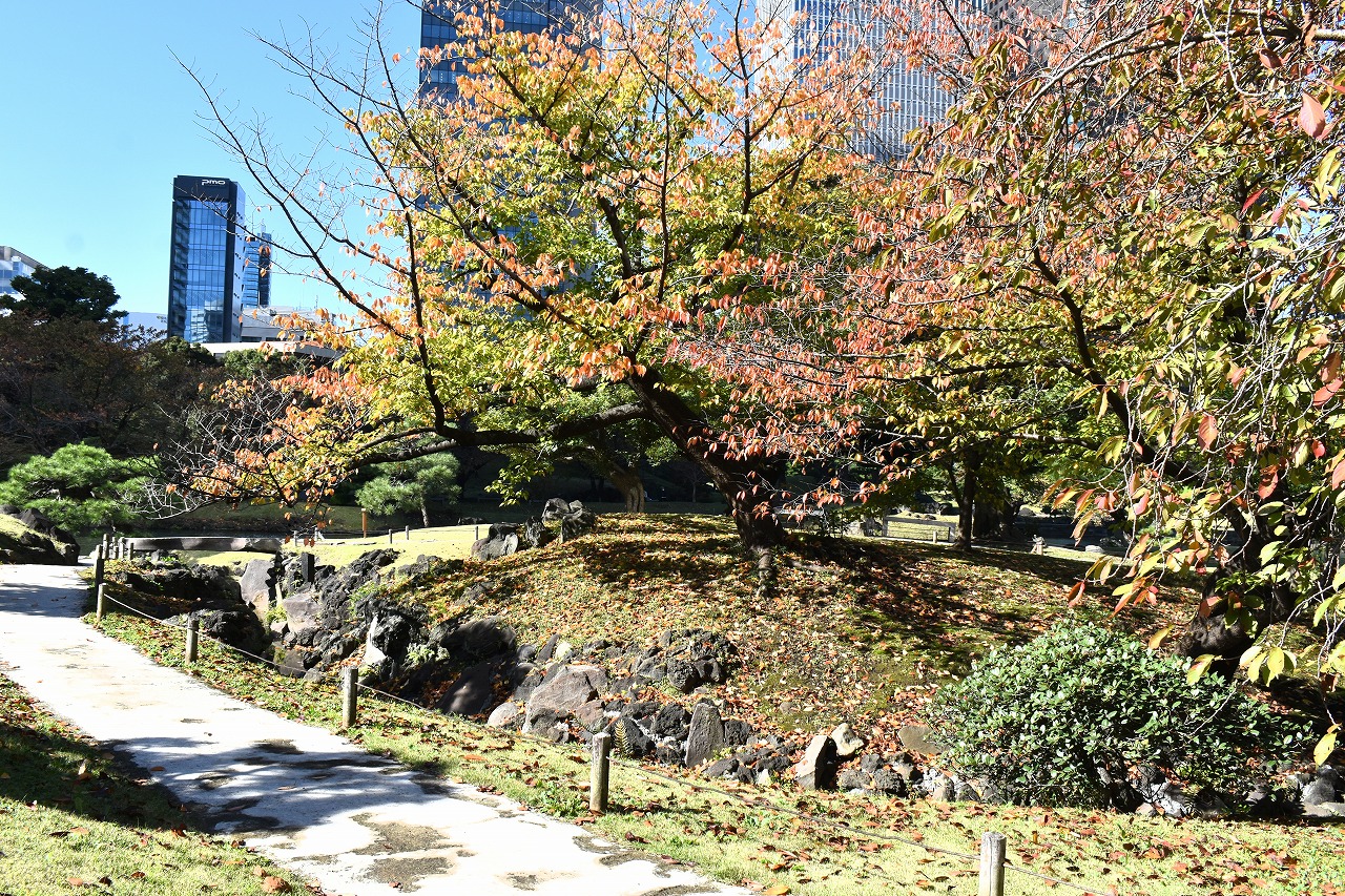 「一言」芝公園の半アミズキが紅葉しています。コスモスがまだ咲いていました。増上寺会館の前のイチョウが黄葉していました。 旧芝離宮には桔梗と秀明菊が少しだけ咲いていました。桜の木の紅葉が進んでいました。十月桜も咲き始めていました。 池には鴨がたくさん飛んできていました。サギと鴨、カメがたくさん集まっていました。