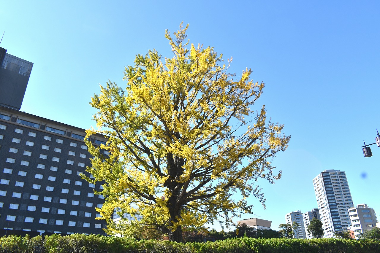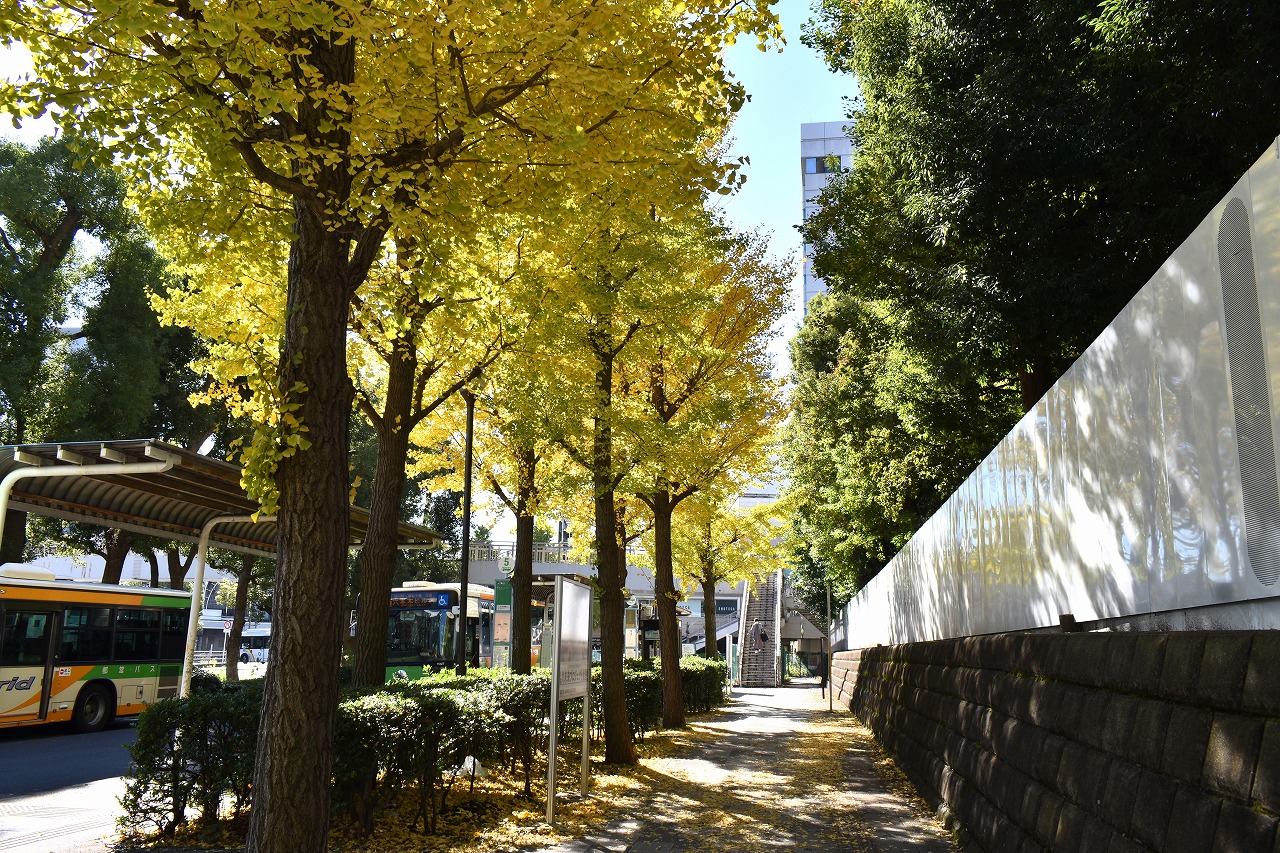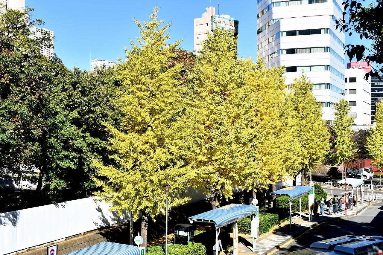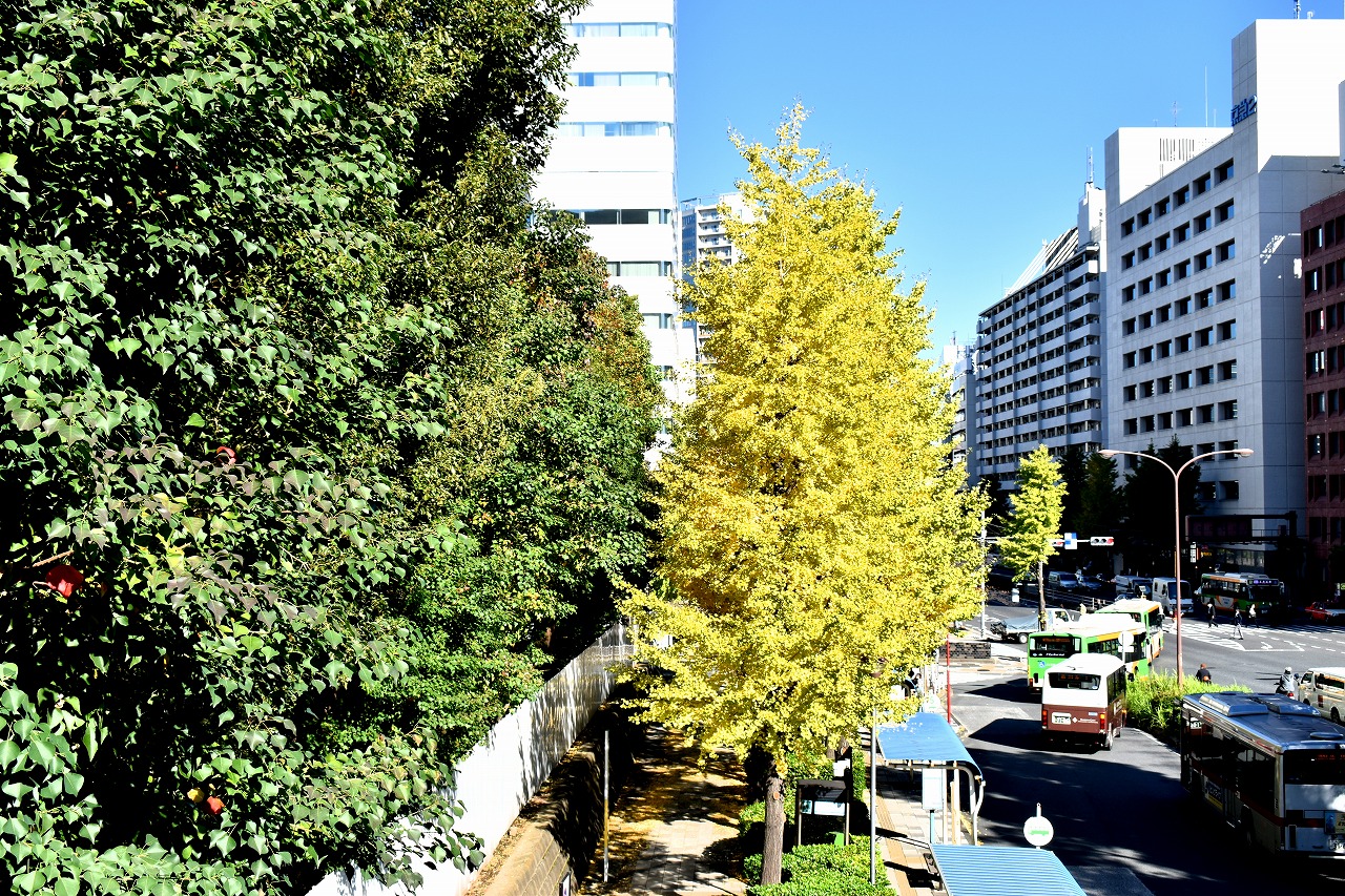 「一言」二本榎通リのハナミズキが紅葉しました。泉岳寺のドウダンツツジが紅葉して綺麗です。 松の下のススキの穂が伸びて風情があります。三田台児童遊園の柿がたくさん実っています。 第一京浜通リのイチョウ並木も黄葉が始まっていました。都バスの品川停留所のイチョウは 黄葉して綺麗です。高輪プリンスホテルの正面の大きなイチョウの木も黄葉しています。
