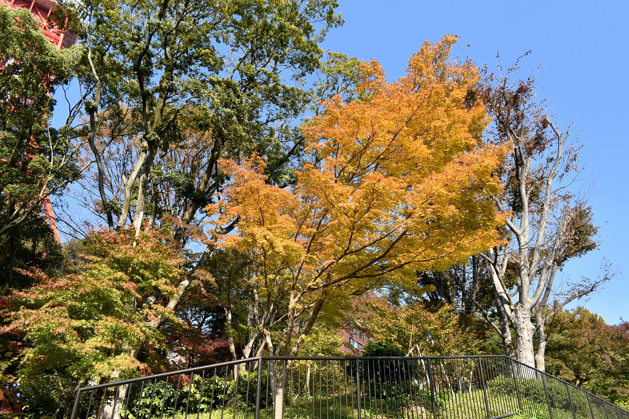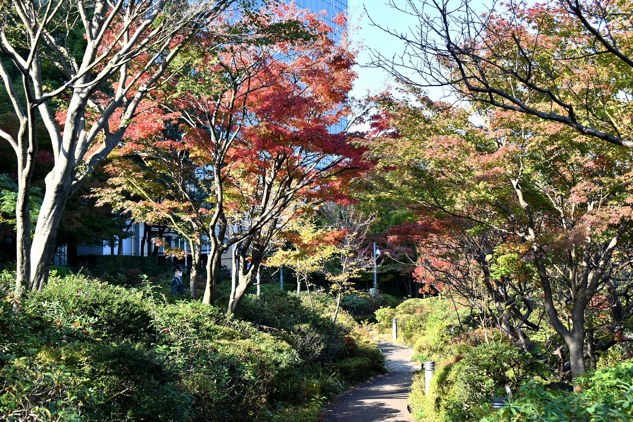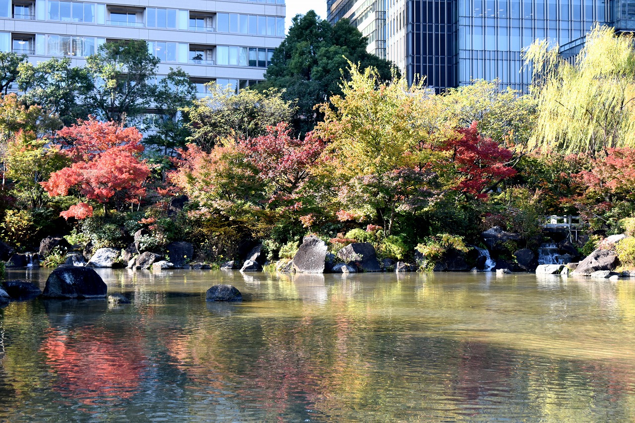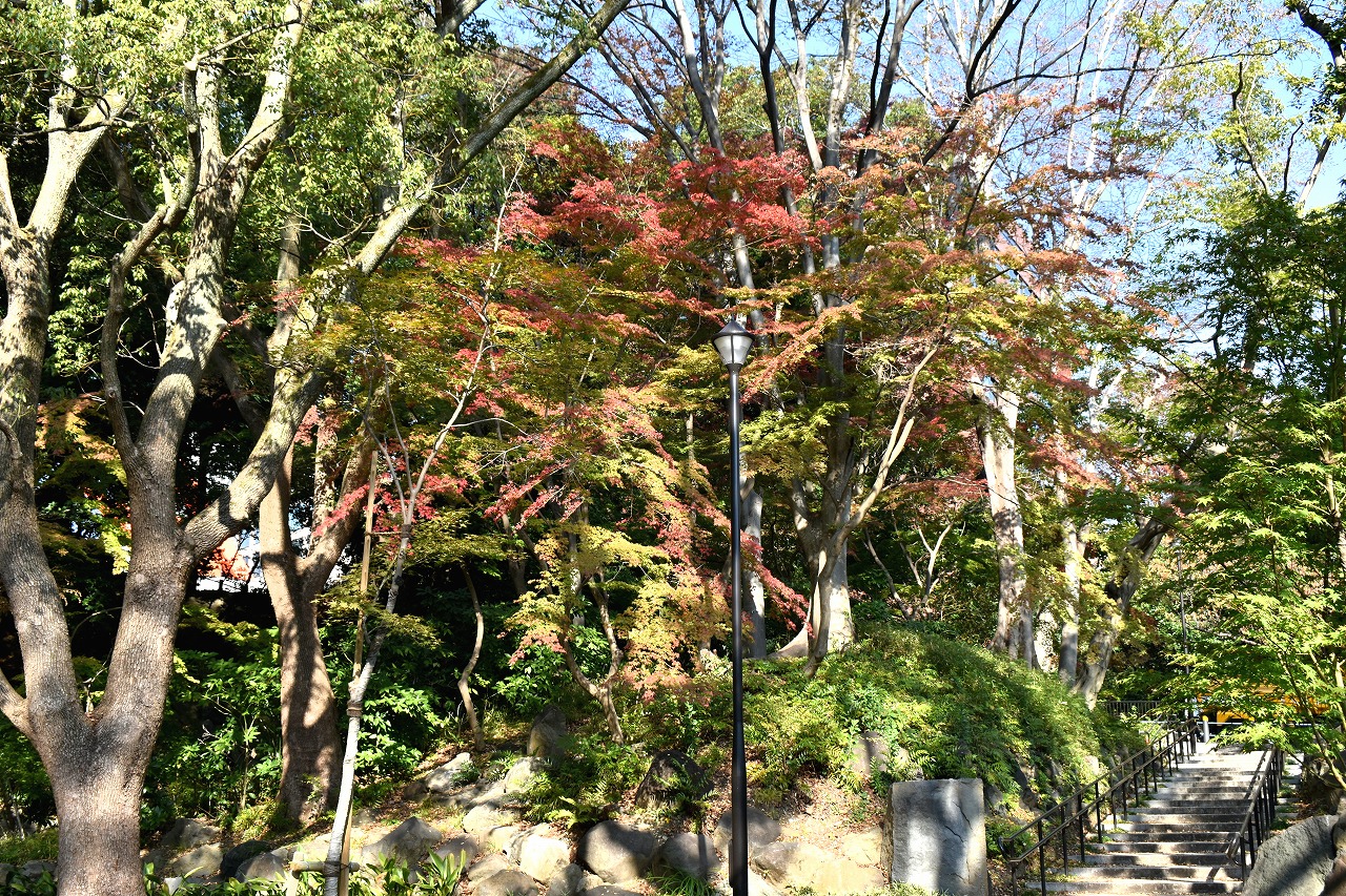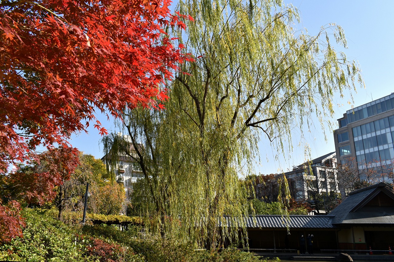 まだ。池の横には葉が青い木のあり、もう少し紅葉が進むと思います。もみじ谷の紅葉は始まった段階です。