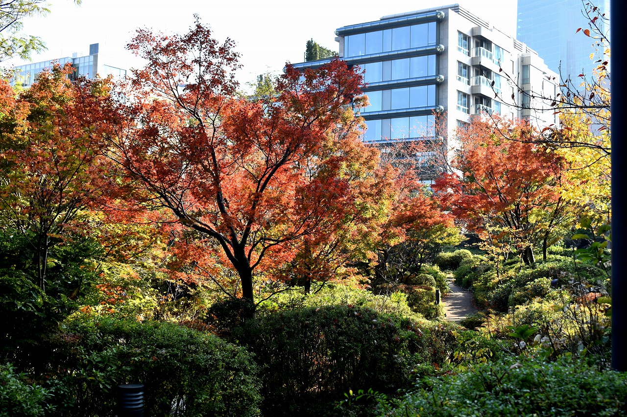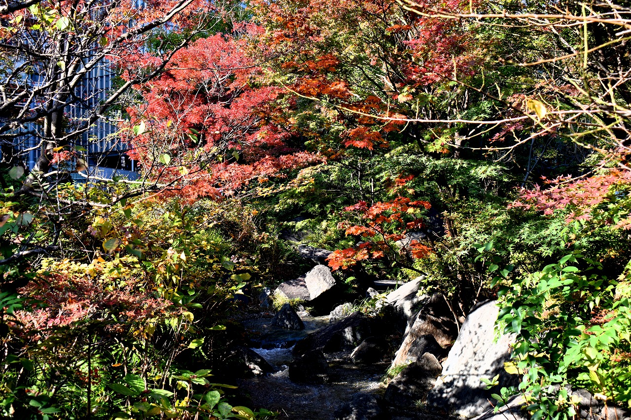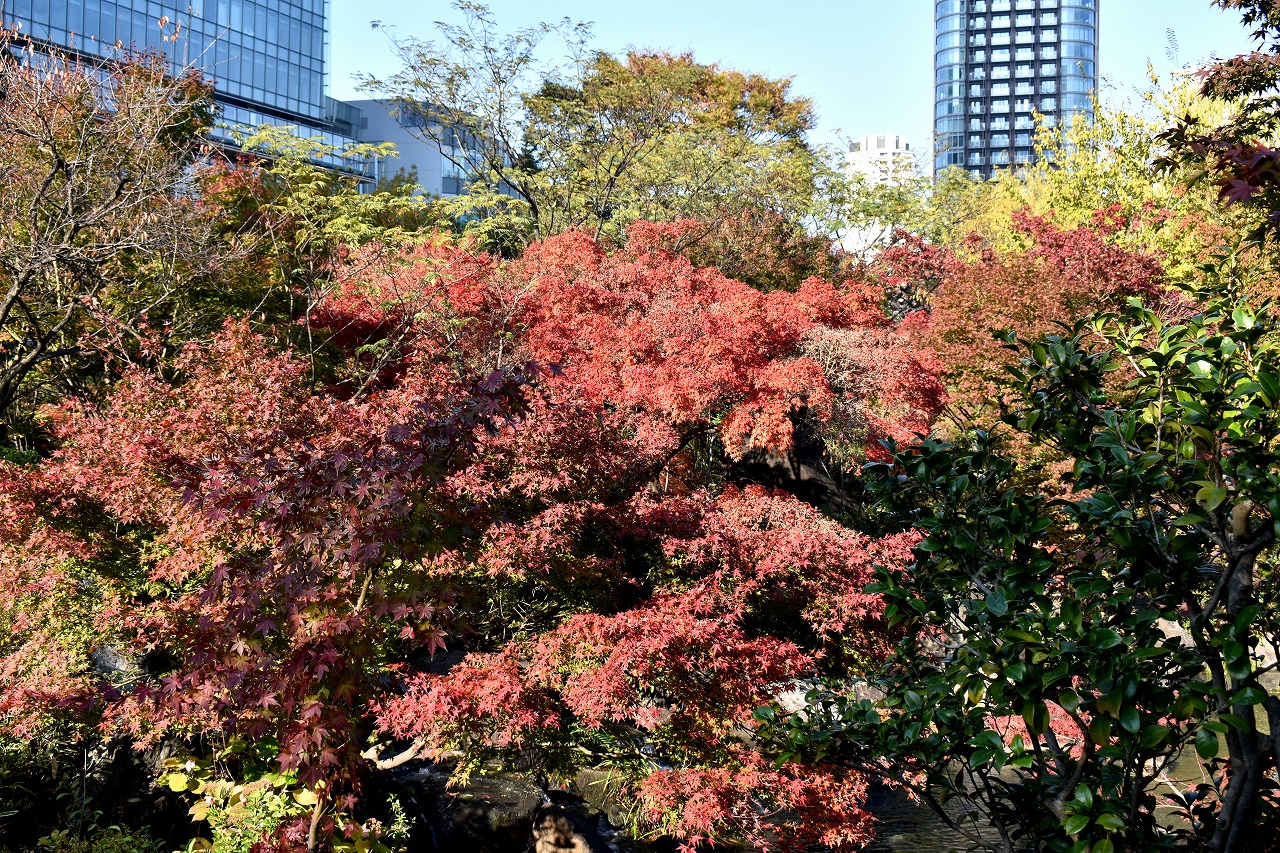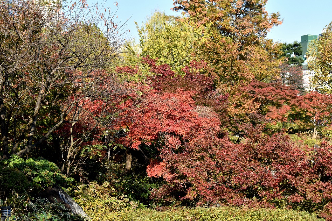 まだ。池の横には葉が青い木のあり、もう少し紅葉が進むと思います。もみじ谷の紅葉は始まった段階です。