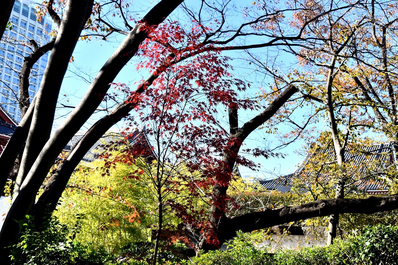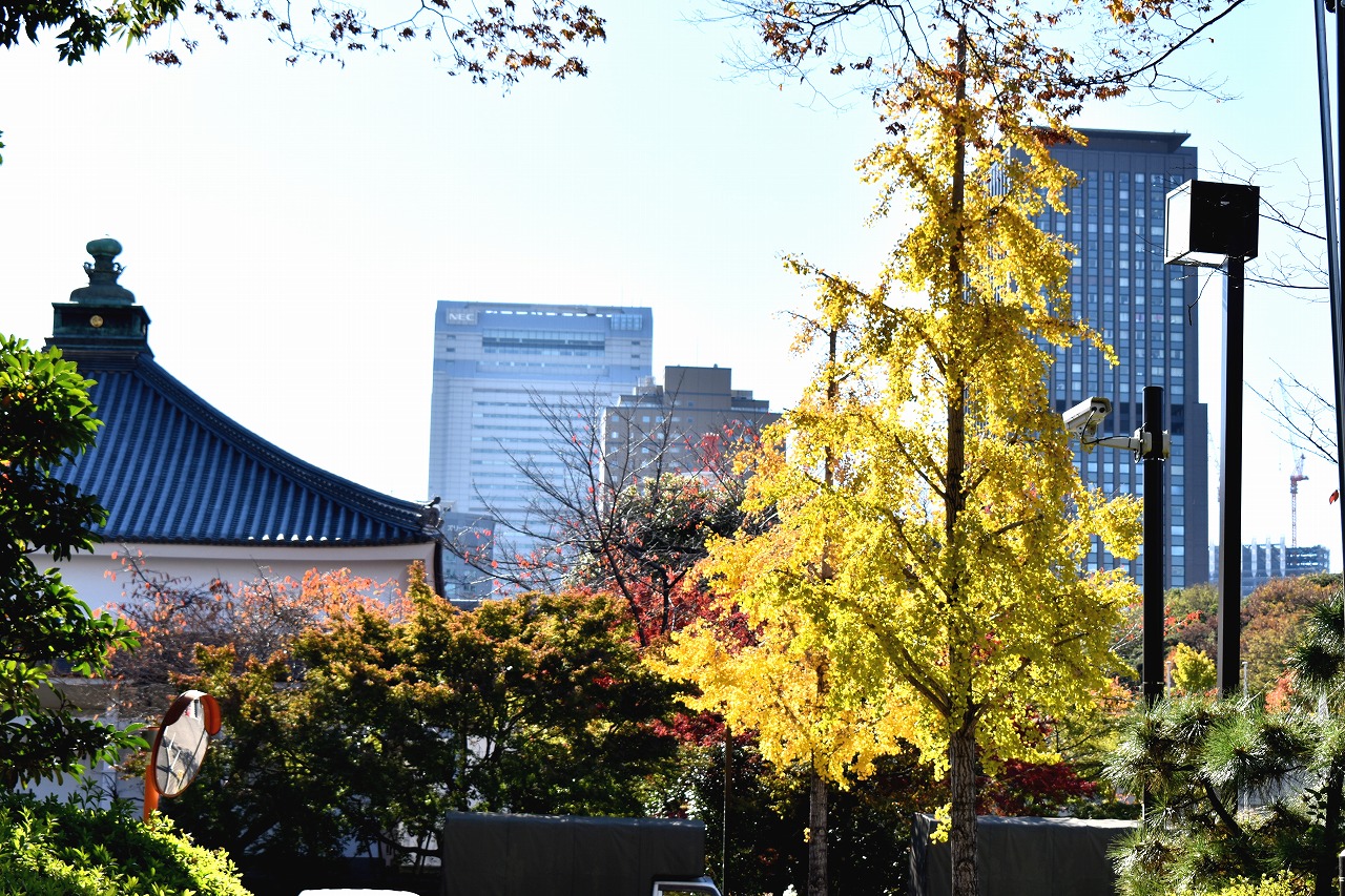 「一言」増上寺の奥の大きなモミジの木が紅葉し始めています。東京プリンスホテルの駐車場にあるイチョウの黄葉も進んでいます。 港区役所の前のハゼも鮮やかな色に紅葉しています。増上寺の境内のイチョウの黄葉やモミジの紅葉も進んでいます。梅園 の十月桜が満開になっています。日比谷通リの木々も色づいて秋らしい感じになっています。